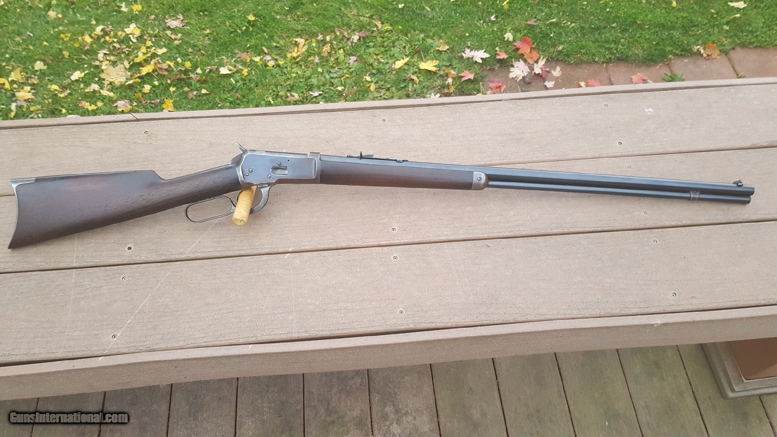 Description: WINCHESTER MODEL 1894 PRE 1898 26 INCH PENCIL BARREL SERIAL NUMBER 46,007 MFG DATE 1896. BUTTON MAGAZINE ALL FACTORY ORIGINAL BLUE AND WOOD FINISH, BARREL BLUE 90% RECEIVER BLUE 80% WOOD HAS JUST A FEW LIGHT HANDLING MARKS. BORE EXCELLENT. 100% ORIGINAL AND UNALTERED. ALSO INCLUDES CODY LETTER. NEED MORE INFORMATION ALWAYS BEST TO CALL OUR OFFICE 716-941-3946 SOLD Antique: Yes |