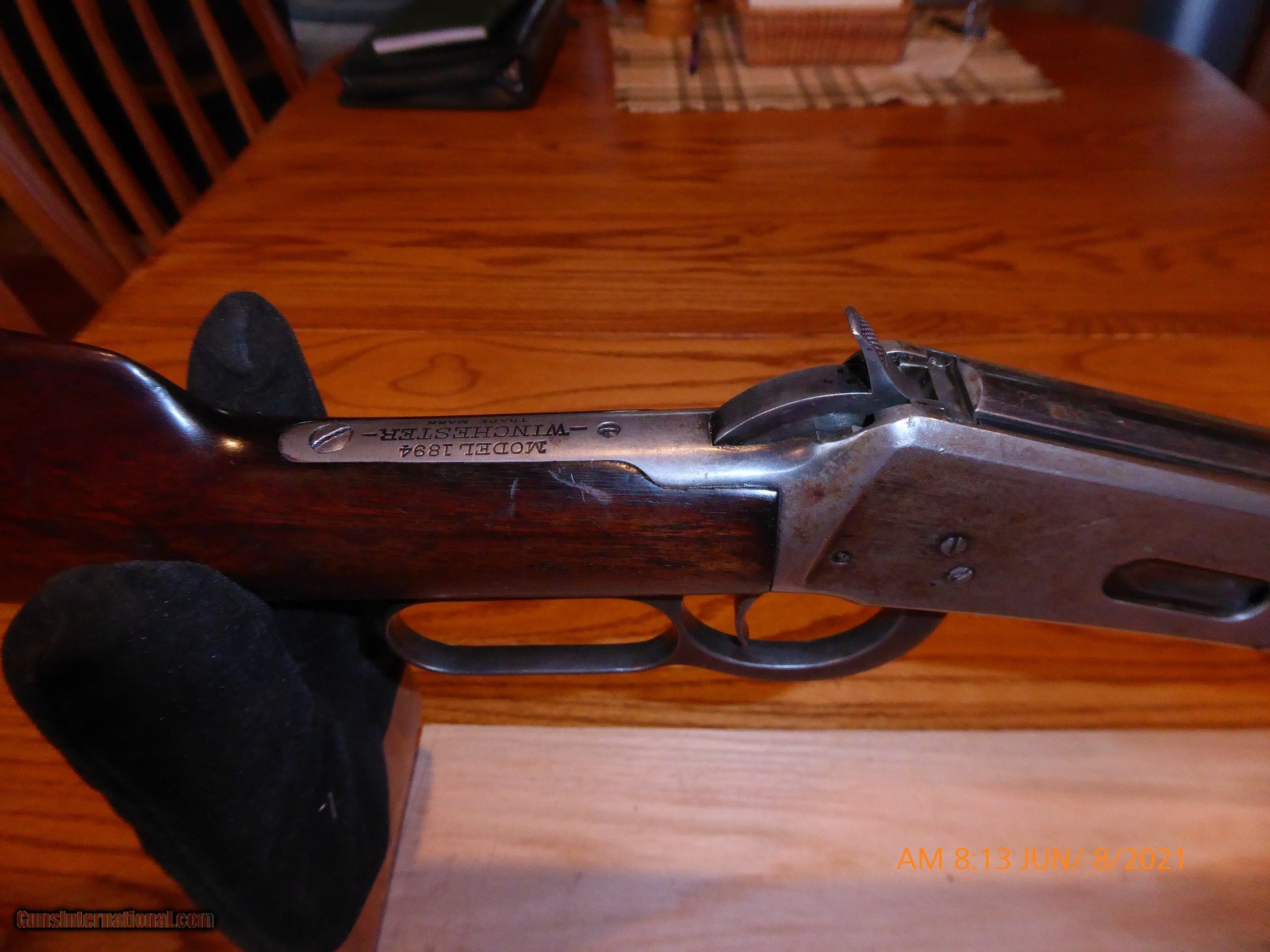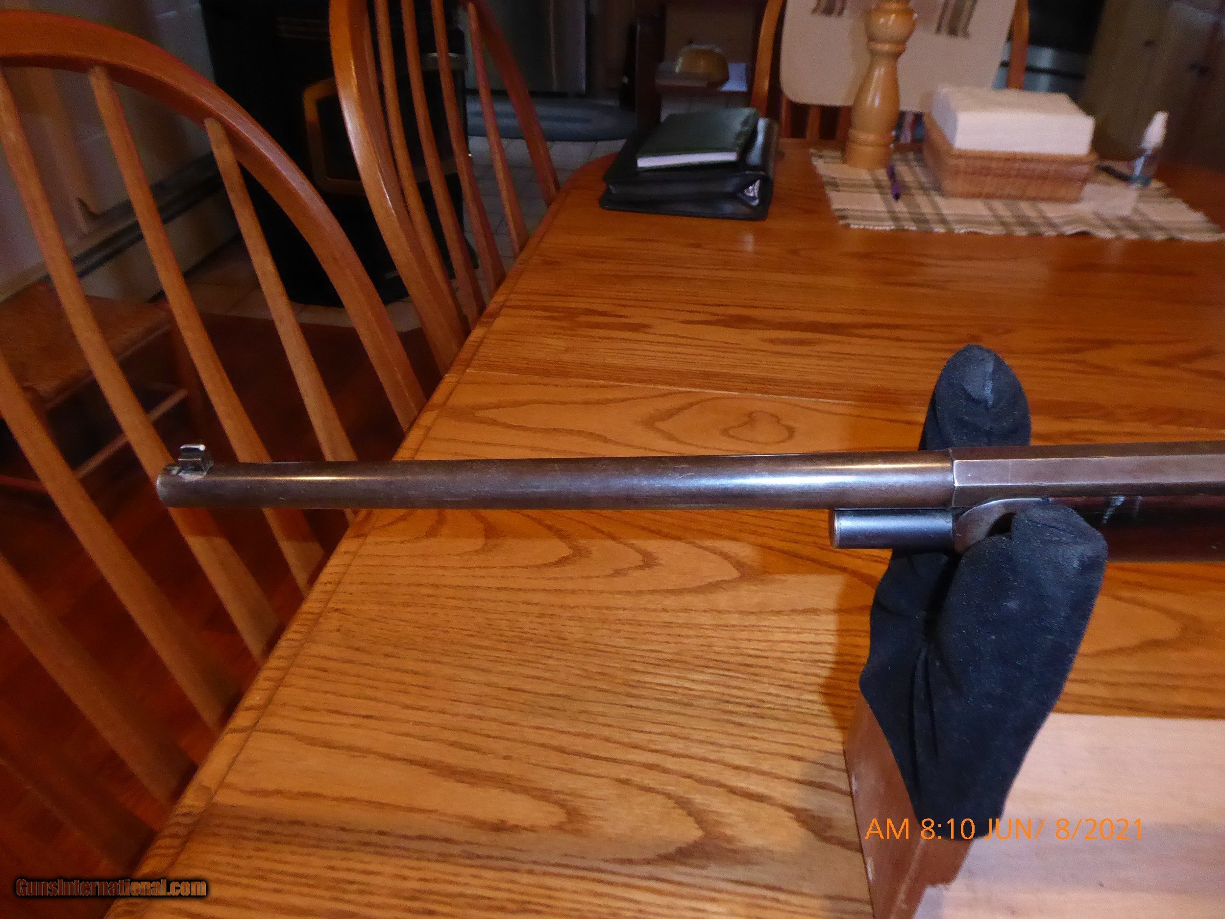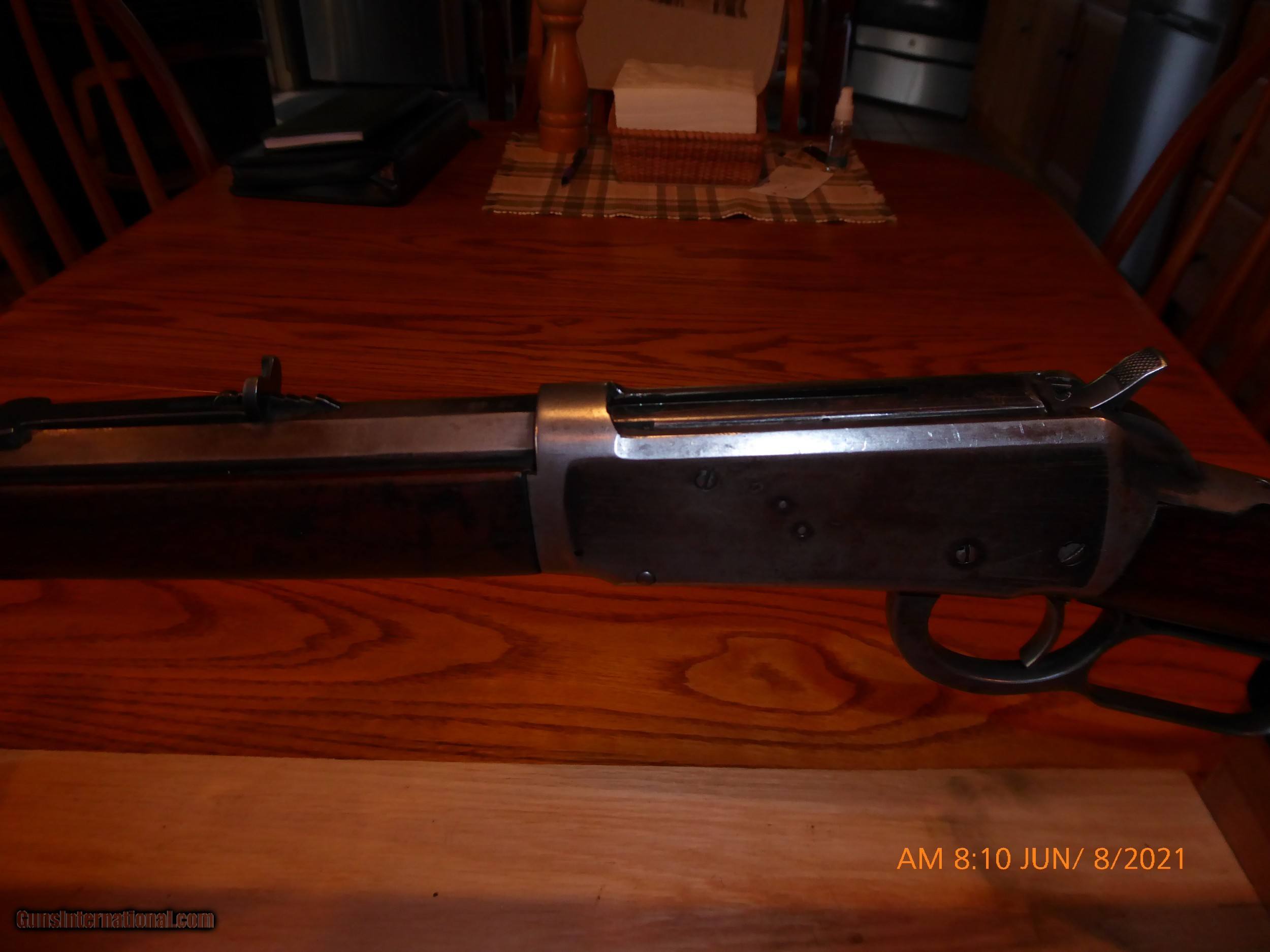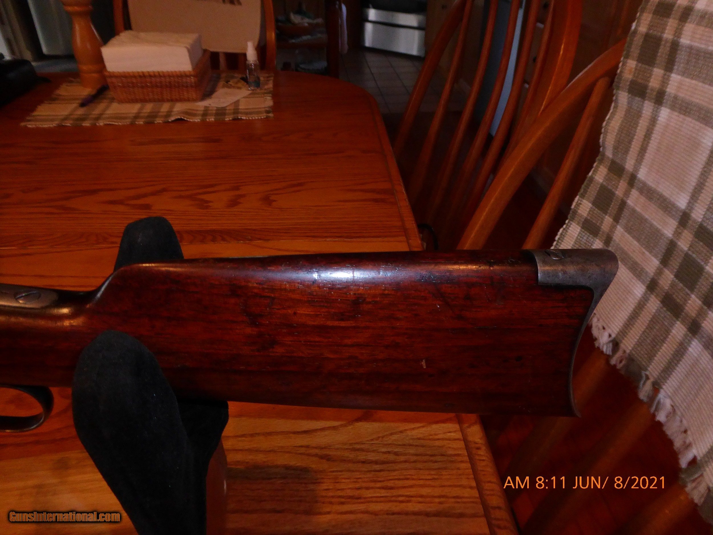 Description: mfg. 1902, barrel is 21.5 length, 1/2 round, 1/2 octagon, with 1/2 magazine, buckhorn rear sight. wood on forearm has shrunk, with about 1/16" movement. SOLD SOLD SOLD Rifle Caliber: .38-55 Winchester Manufacturer: winchester Model: model 1894 Barrel Length: 21.5 Condition: fair Metal Condition: fair Wood Condition: fair Manufacture Date: 1902 |