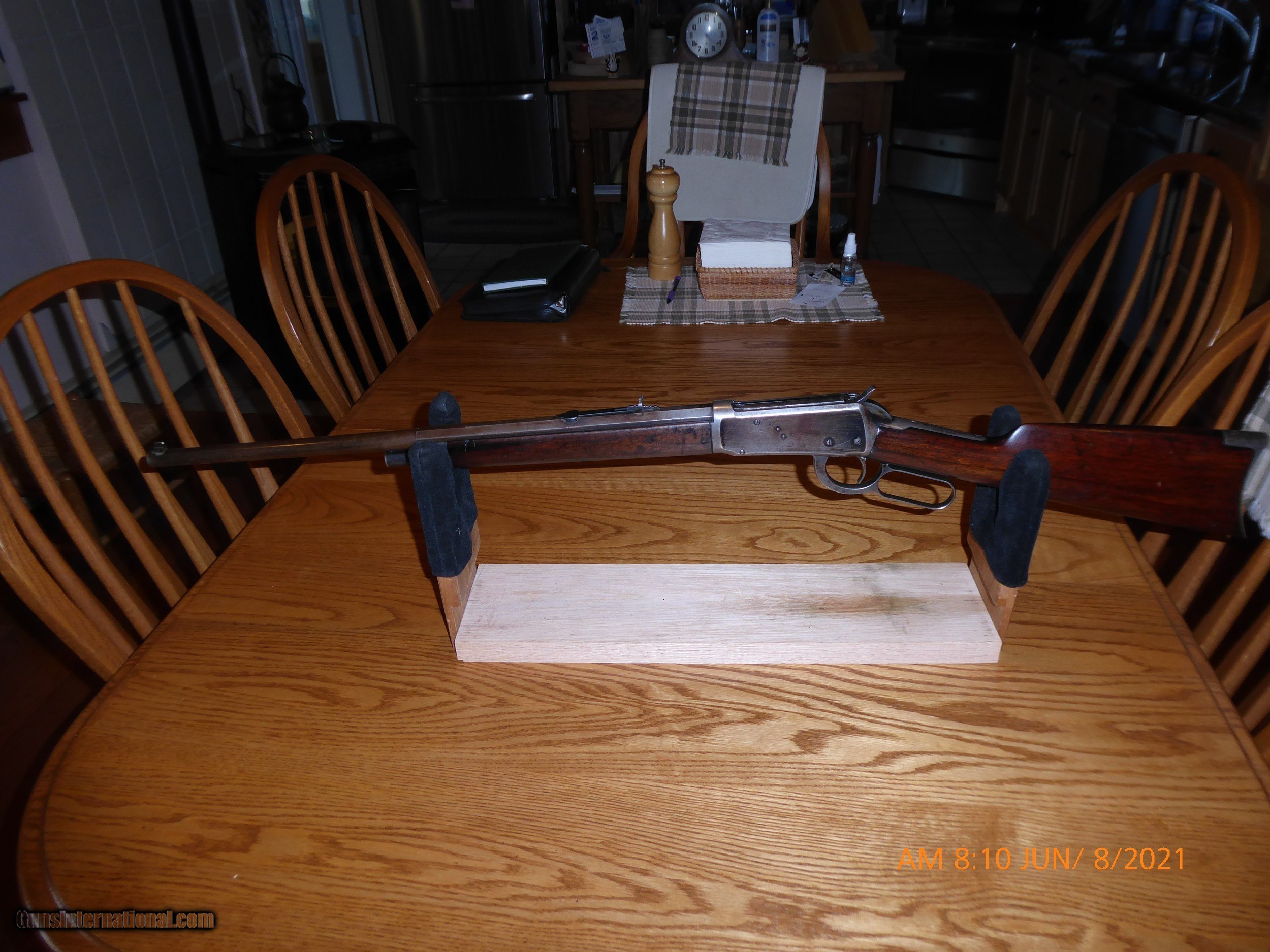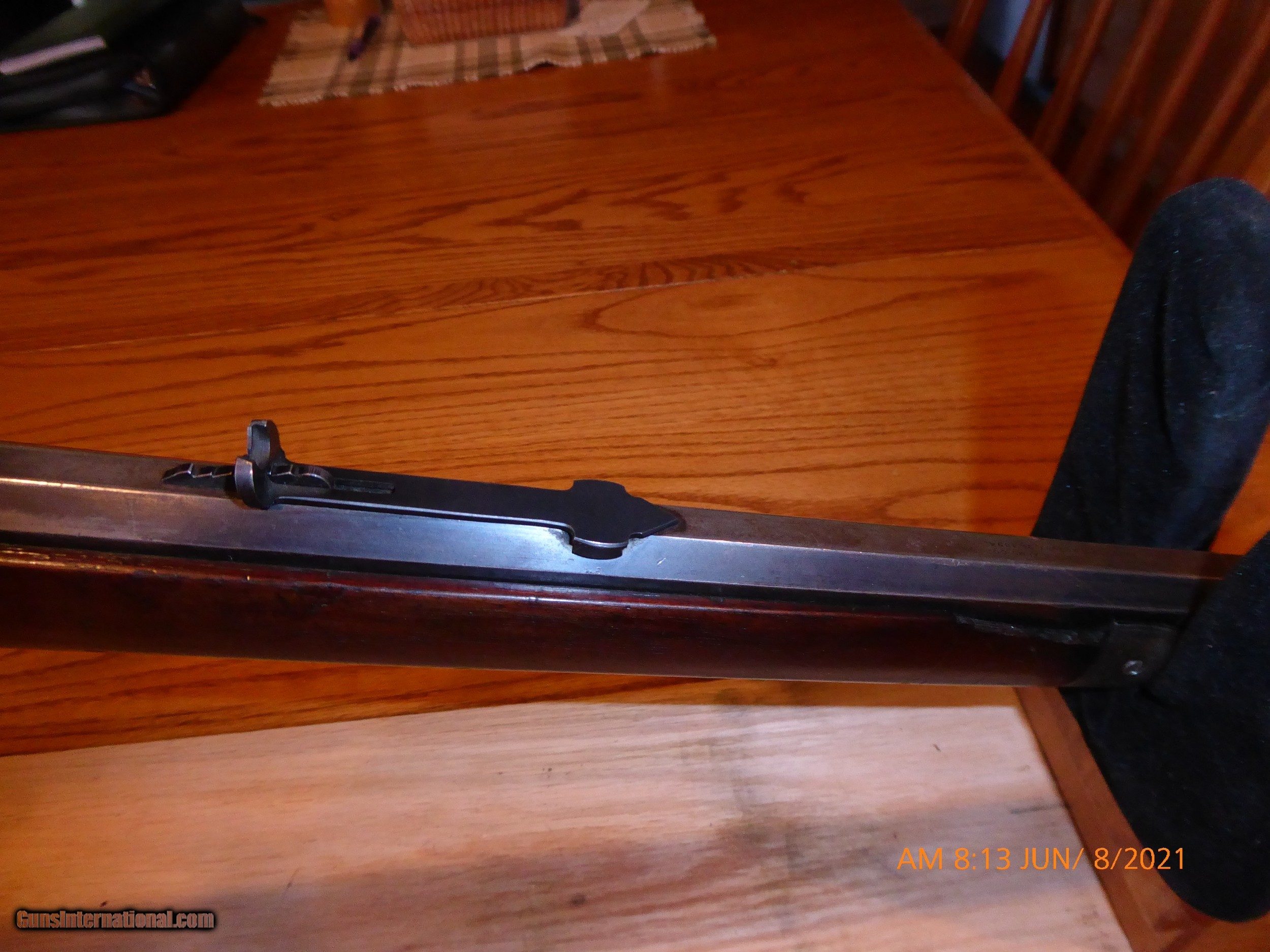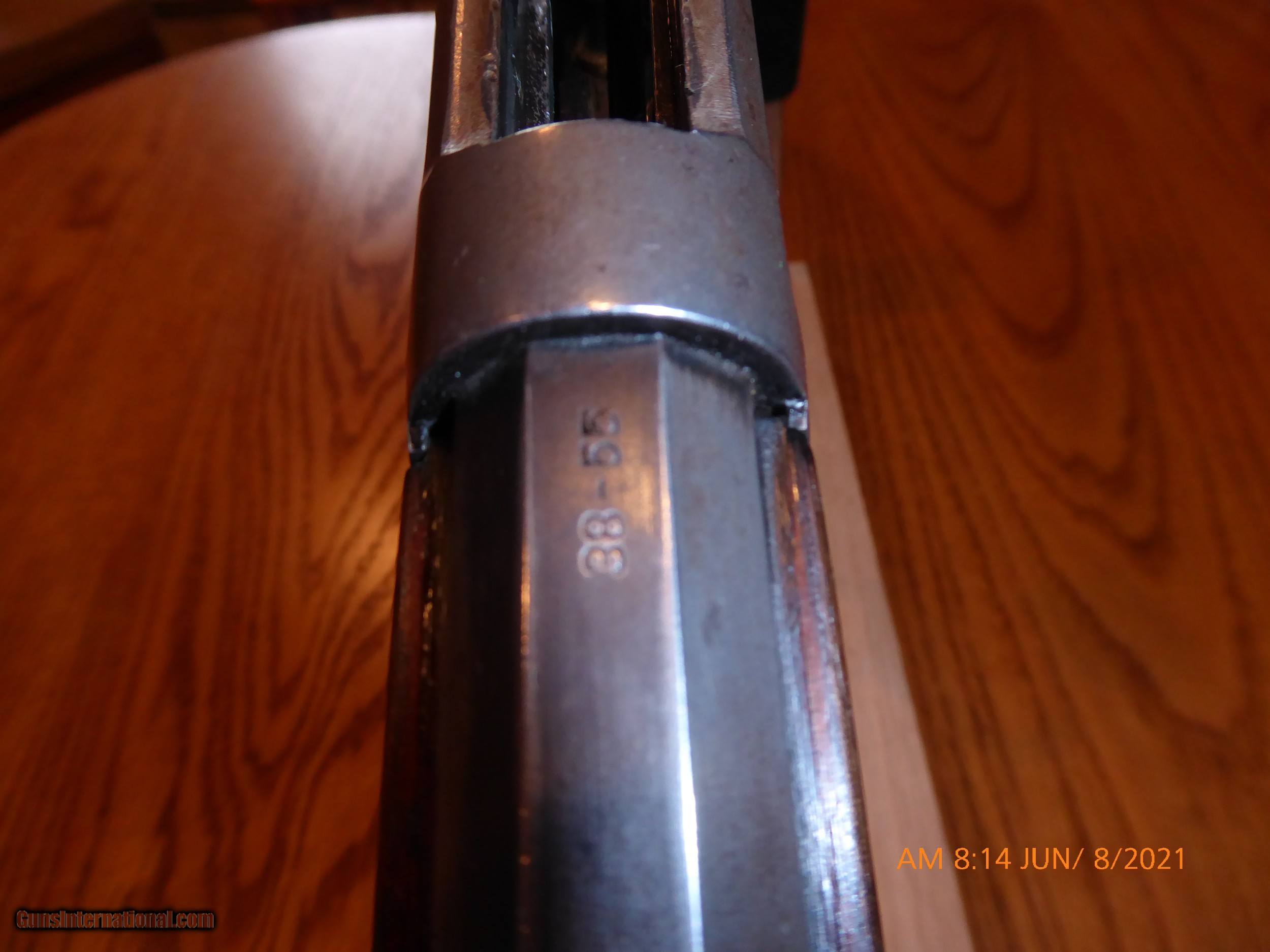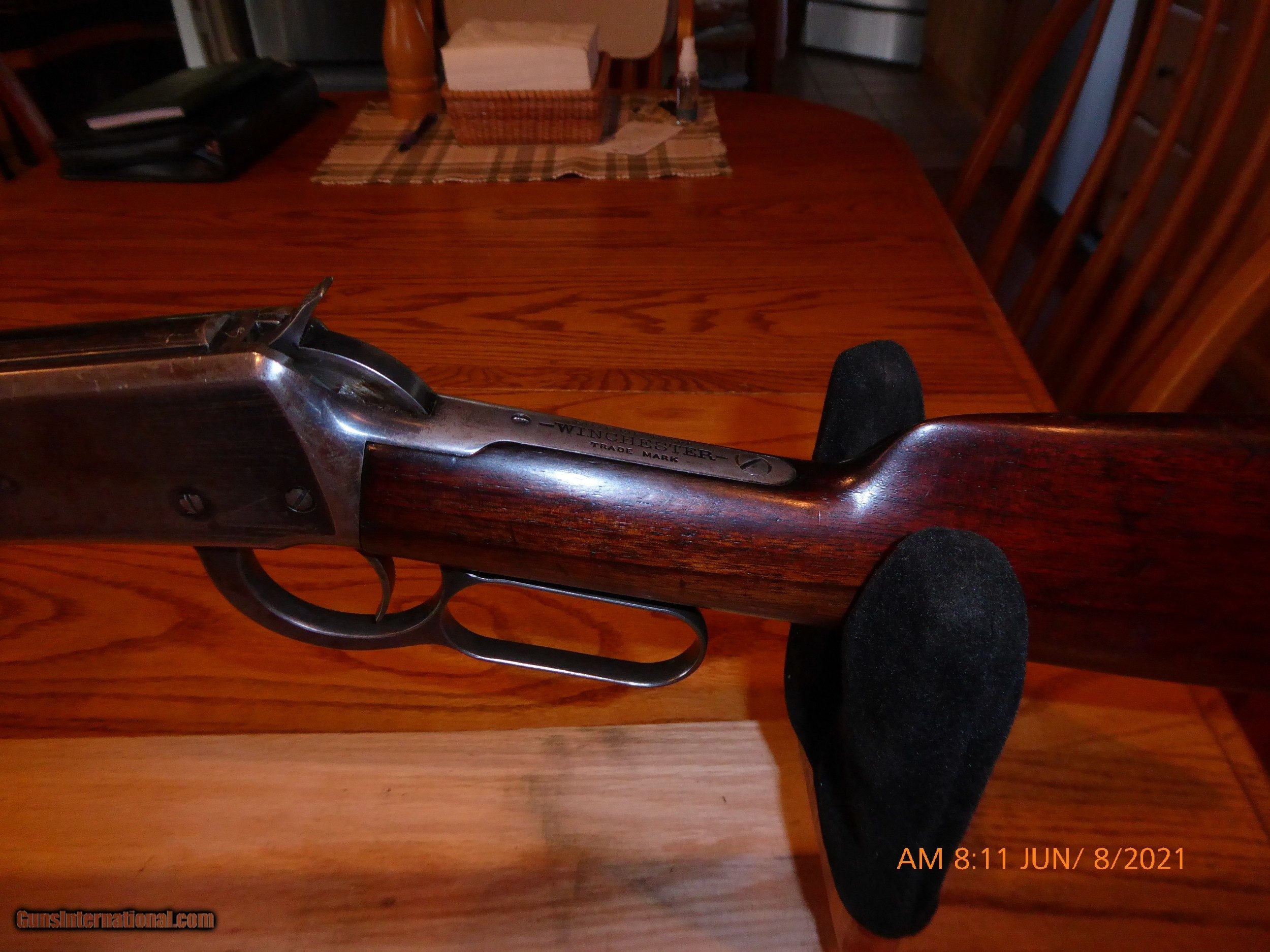 Description: mfg. 1902, barrel is 21.5 length, 1/2 round, 1/2 octagon, with 1/2 magazine, buckhorn rear sight. wood on forearm has shrunk, with about 1/16" movement. SOLD SOLD SOLD Rifle Caliber: .38-55 Winchester Manufacturer: winchester Model: model 1894 Barrel Length: 21.5 Condition: fair Metal Condition: fair Wood Condition: fair Manufacture Date: 1902 |