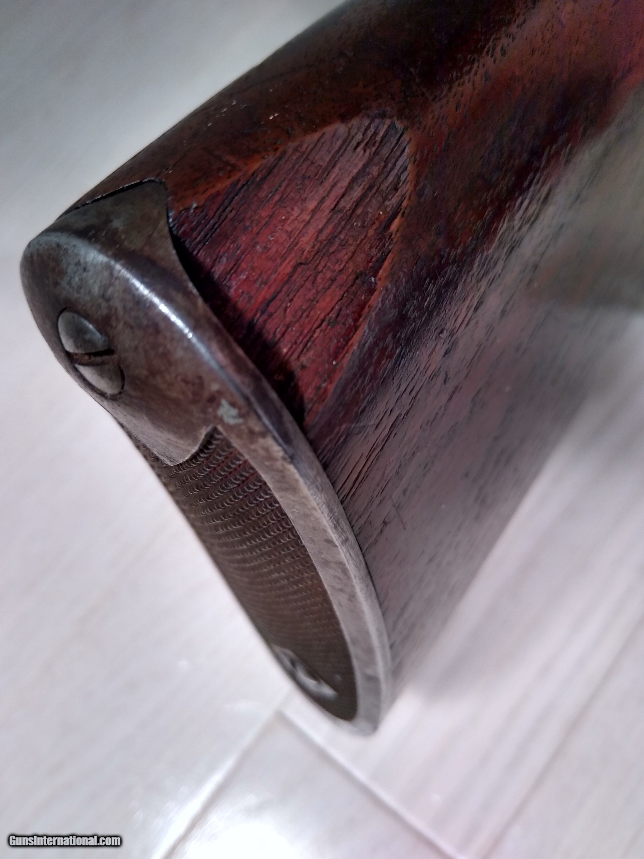 Description: 1903 Winchester Model 1894 lever action rifle, .38-55 Caliber, SN: 276639. Unique octogonal / smooth barrel, See photo #7. Stock has manufacturing defect, see photo #2. Functions smoothly, all original parts / all parts intact. Contact Chris Begley in Ohio (330) 416-1560 / chrisbegley17gmail. SOLD Curio/Relic: Yes Rifle Caliber: .38-55 Winchester Manufacturer: Winchester Model: 1894 Serial Number: 276639 Condition: Very good Metal Condition: Very good Wood Condition: Very good Bore Condition: Very good |