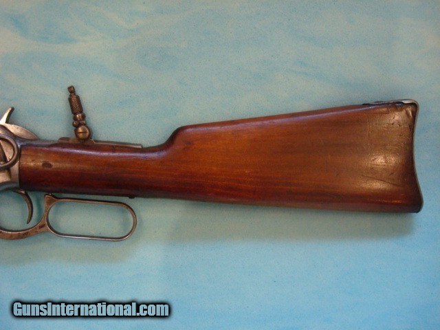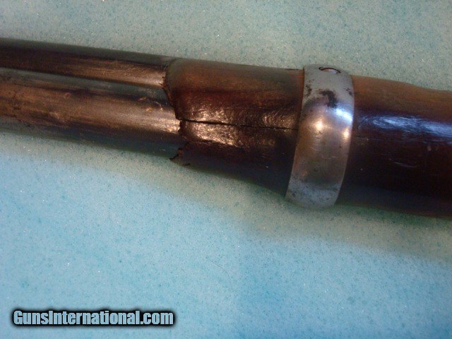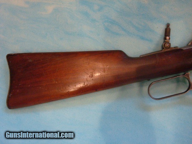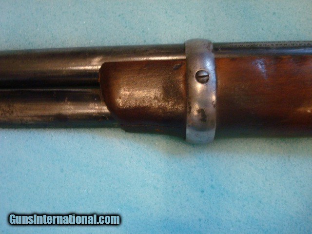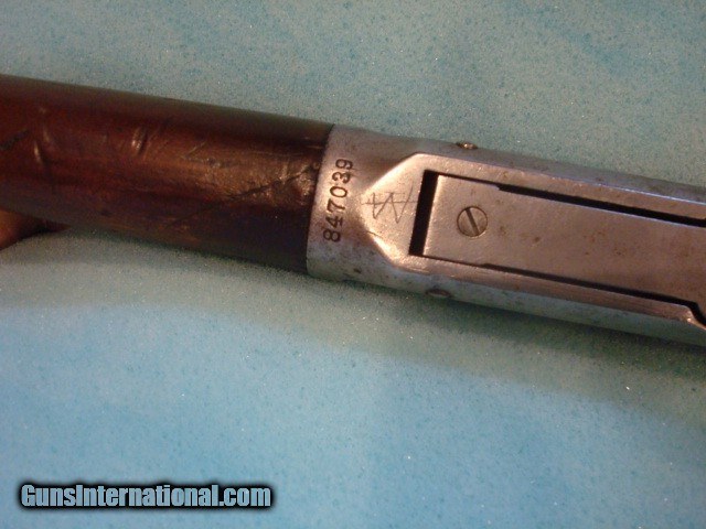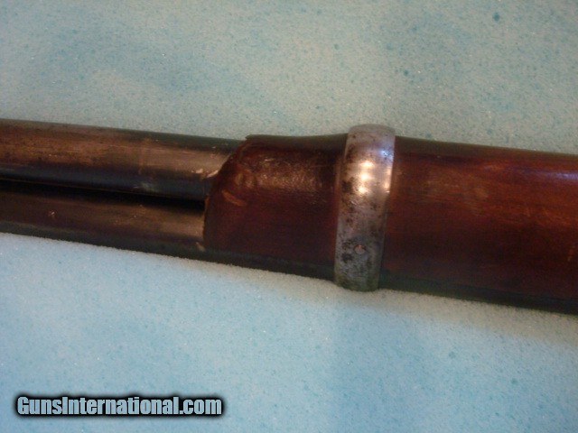 Description: This rifle belonged to a friend. His wife has now asked me to sell it for her. I am not a Winchester guy so you are going to have to use the photos to answer some of your questions. All I know about this Winchester is that it came off of her husbands relatives ranch in the Sierra Nevada foot hills. Here is what I see......The receiver has no blue left at all. The wood is quite good. It appears to have wear to the forearm in front of the barrel band from how it was carried every day horseback or a wagon scabbard. The only crack I see is in that wear spot as shown in the photos. It came to me with five rounds of 25-35 ammo which I loaded up in the tube and shot. The tube has ben dented but It functioned perfectly. The front sight blade looks homemade. The bore is a little dark but show strong rifling. I just ran a oiled parch through it after function and shooting test. There is a brand or initials lightly etched just under the serial number also shown in photos. .It has one of those tang peep sights. The rifle seems amazingly sound to me for such an old gun. The rifle will ship in the lower 48 states for $30.00. SOLD Manufacturer: Winchester Model: 1894 Caliber Info: 25-35 WCF |