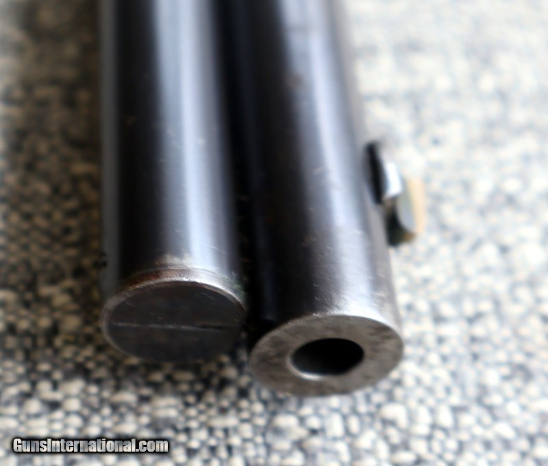 Description: Winchester Model 1894 Lever Action Rifle in 32 WS 26" Round Barrel This is a Winchester 1894 rifle in 32 WS it features a 26" nickel steel round barrel with a full tube magazine. It is equipped with a small German silver blade front sight and Winchester’s 32 Special rear sight. It has standard walnut stocks and a crescent butt plate and fore stock end cap. Condition: The overall condition of this Winchester 1894 rifle is fine. The barrel and magazine retain about 95% original blue, appearing stronger under ambient light, with light muzzle wear, a few spots of light pitting, and very fine freckling scattered through, easily missed except under bright light. The magazine hanger and fore end cap have toned a gray patina with remnants of original blue, the fore end cap showing general oxidation staining. The receiver retains about 75-80% original blue with light high edge wear and fine flaking to brown, the loss greatest towards the front, and the lever and hammer exhibit wonderful vibrant case-hardened colors with light oxidation staining and the loop toning to a gray case-hardened patina. The smooth straight grip walnut stock and fore end are in very fine to near excellent condition as lightly cleaned with an older added oil finish. The stocks show a few light handling marks and remnants of old dings from use. There is a 2 3/4” hairline crack just below the right wood line of the fore end that is minor and easily missed. The stock is a bit shy of the metal in some spots. The crescent steel butt plate shows mellow case color with some light oxidation staining speckled throughout. The two-line barrel address, model marking on the tang, and other factory markings are strong and clear. The screw slots are in good shape with only the tang screw exhibiting the beginnings of slot wear. The rifle is sighted with a small German silver blade front sight and Winchester’s 32 Special rear sight. The bore is bright, about fine plus ranking about 8 on a scale of 1-10. It has strong rifling with some very fine pinprick pitting lightly scattered throughout. This rifle cycles strong and has excellent lock up. This is a really nice 121 year old Winchester 1894 that can easily be put back to work. SN: 277565 Curio & Relic Check out The Gray Fox Shop, LLC Rifle Caliber: .32 Winchester Special Manufacturer: Winchester Model: 1894 Serial Number: 277565 Barrel Length: 26 Bore Info: 32WS Condition: fine Metal Condition: Fine Wood Condition: fine Bore Condition: fine +8 bright Barrel Type: Round Action: lever action Triggers: single Stock: standard walnut Finish: blue Sights: German silver blade front, Winchester’s 32 Special rear Manufacture Date: 1905 Price: $2,520.00 Shipping: $40.00 Contact Seller |
