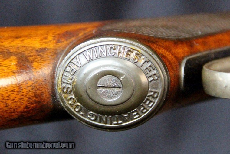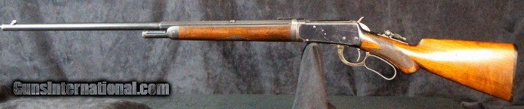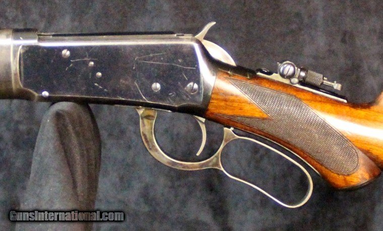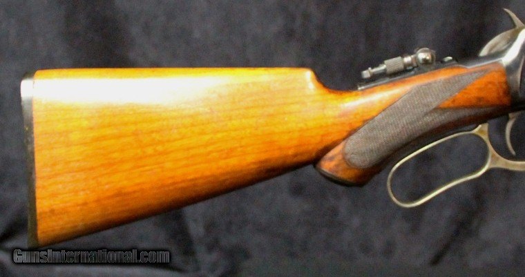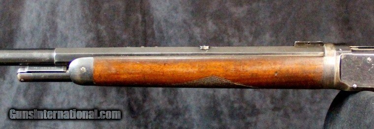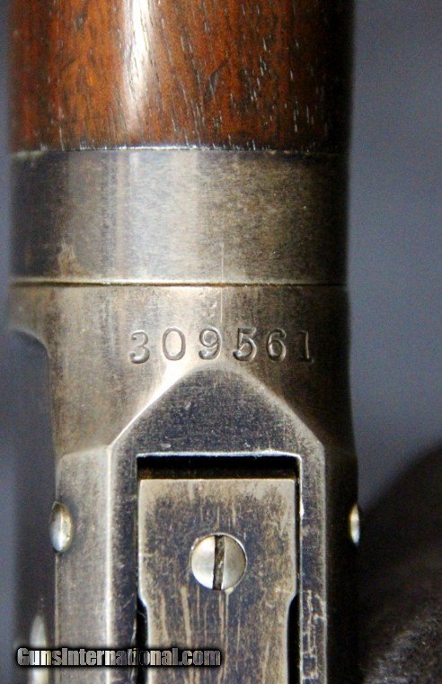 Description: .25-35, #309561, 26 inch part round, part octagon barrel, blue and case color finish, shotgun butt, pistol grip checkered walnut stock, checkered walnut forearm, take down, tang sight, barrel tapped for scope blocks, will letter without blocks,1904. Condition: strong rifling, 95% barrel blue, 90% receiver blue with scratches, 70% case color on lever, excellent wood with use and handling dings, excellent mechanically, excellent marks. SOLD Curio/Relic: Yes |