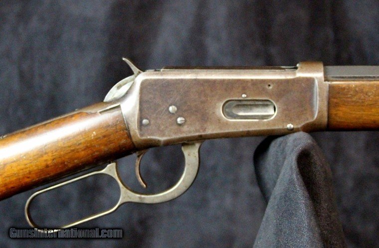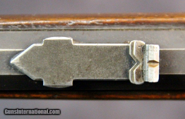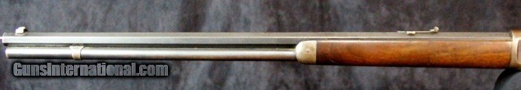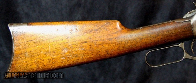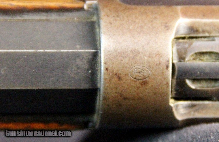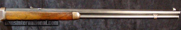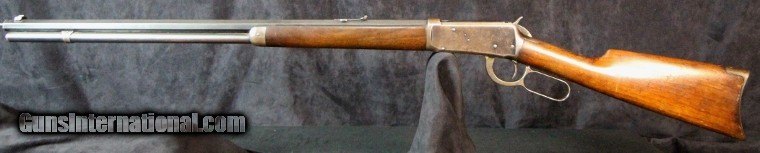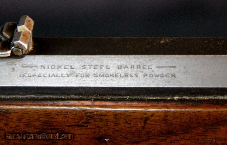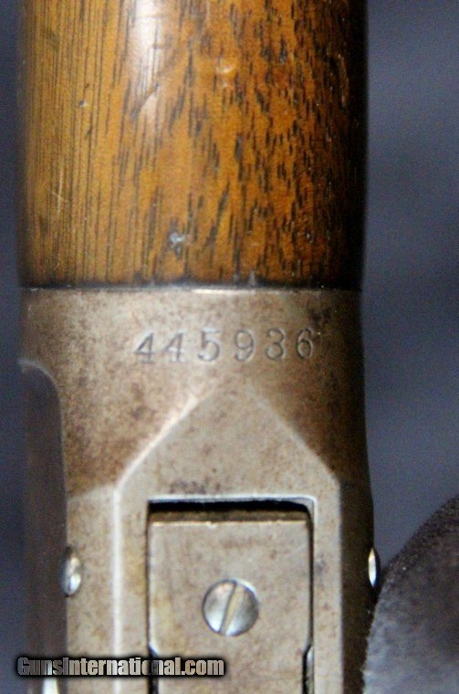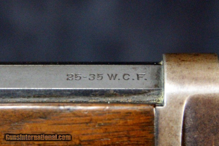 Description: .25-35wcf, #445936, 26 inch octagon barrel, blue and case color finish, walnut stock and fprearm, 3 leaf express sight, 1908. Condition: strong rifling, 90% barrel blue with silver on high edges, 25% receiver blue thinning, case colors turned silver, small chip missing on right side of stock at tang/frame juncture, otherwise just use dings, excellent mechanically, excellent marks. SOLD Curio/Relic: Yes |
