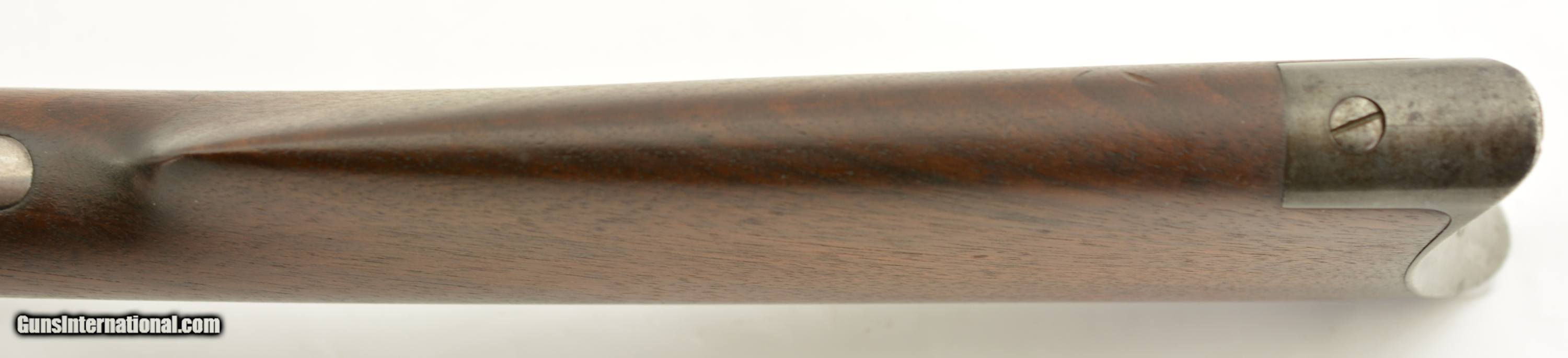 Description: Serial #151431, .32-40, 26" barrel with a good-very good bore that has mild freckling within the grooves. This is an 1899-made rifle that has a button magazine and retains 80-85% of the original blue finish on the barrel. There is some gray fading at the muzzle, as well as some thin freckling along the sides. The frame retains about 30-40% of the original blue finish with the balance worn to bright gray, with minor surface scratches and freckling scattered throughout. Additionally, some traces of original color case-hardening can still be seen on the protected areas of the lever. The walnut forend and buttstock are in very good shape, with some minor handling marks scattered about the fine reapplied oil finish. The action is tight and fully functional. This is a very good-fine example of a special order Model 1894, and is chambered in a very desirable caliber. FFL or C&R SOLD Manufacturer: Winchester Model: 1894 Caliber Info: .32-40 Gauge Info: .32-40 |