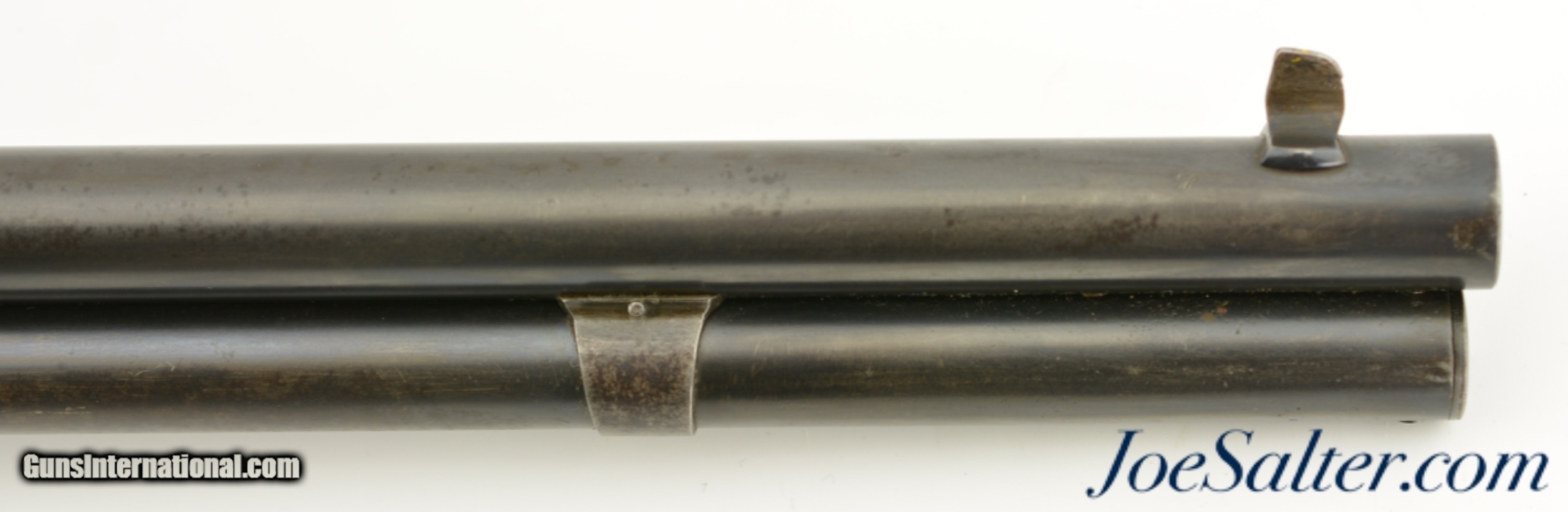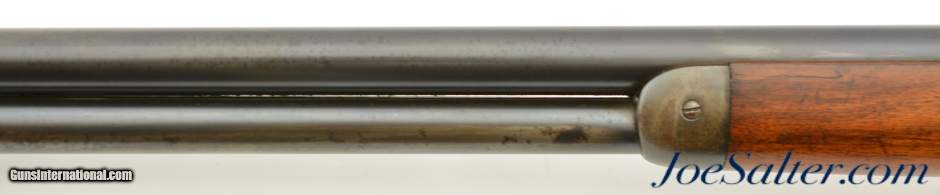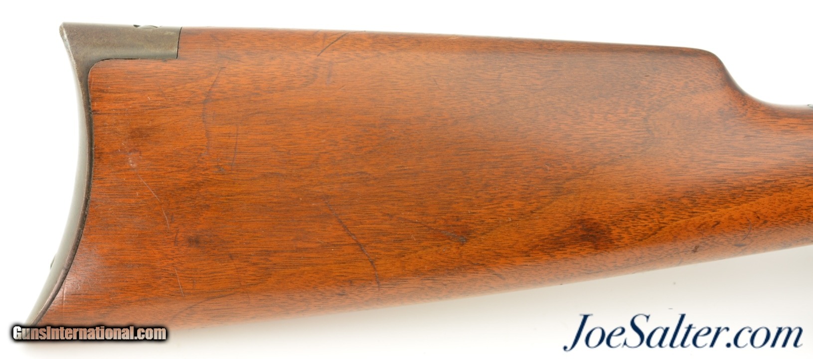 Description: Serial #1044062, .30 WCF (.30-30), 26" barrel with an excellent, bright bore. This is a little used, 1928-made rifle that has 85-90% of the original blue remaining, with silvering at the muzzle and on the projections, as well as some spots of mild surface freckling on the sides of the frame. Some further gray fading can be seen on the sides of the hammer. The walnut forend and buttstock are in very good-fine condition, with some minor handling marks and surface blemishes scattered about a period-added oil finish. The crescent steel buttplate has some original blue remaining, blending with a mellow plum-brown patina on the balance. The rifle has a high sporting bead front sight mated to a Lyman No. 21 aperture sight mounted to the left side of the frame, and a blank installed in the barrel sight dovetail. This is a handsome Model 1894, and is in fine condition overall. FFL or C&R SOLD Curio/Relic: Yes |