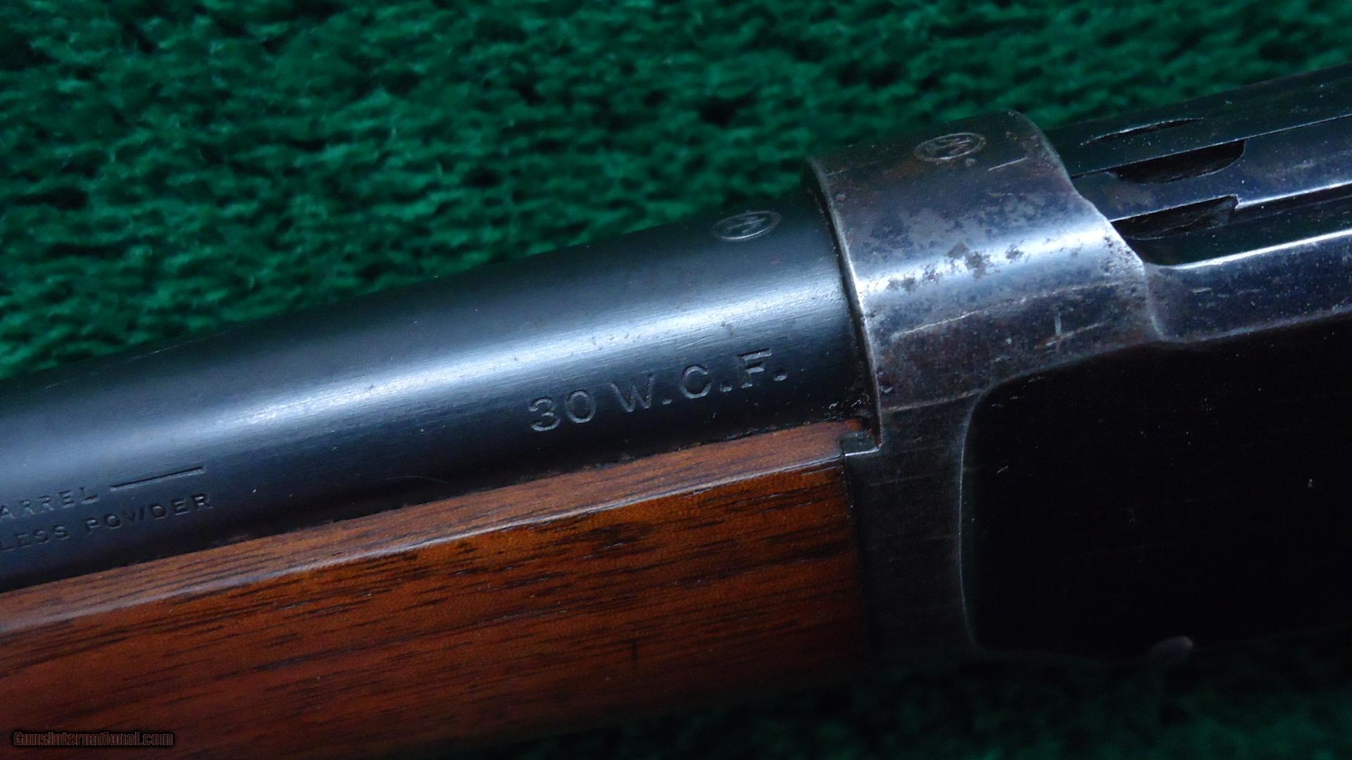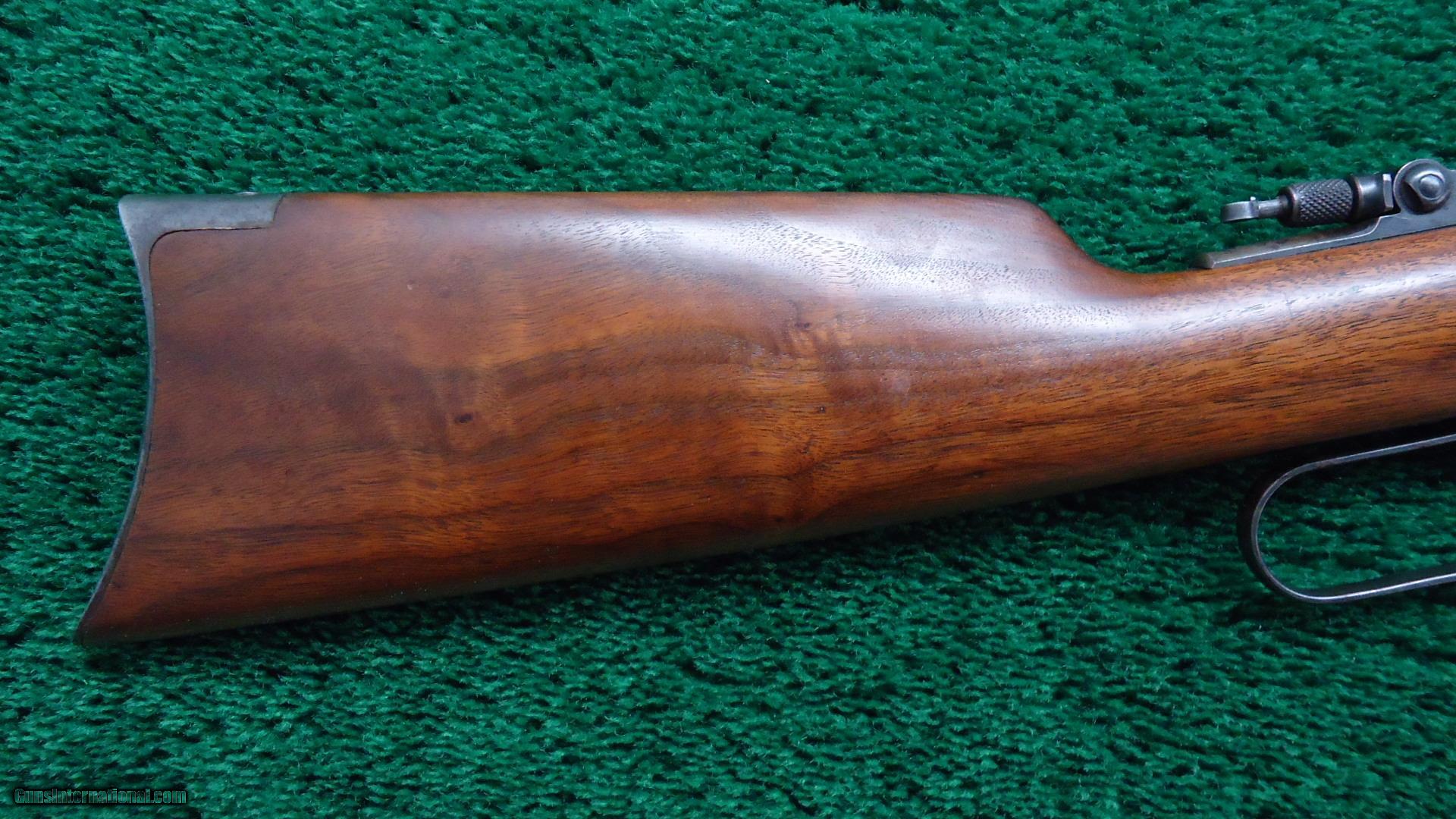 Description: 26 inch round barrel chambered in 30 WCF caliber with full length mag tube and a rifle butt. Barrel and mag have most all original blue remaining. Near excellent bore. Barrel looks as good on the inside as it does on the outside! Receiver also has most all original blue with just a few light scratches and some wear on the high points. Hammer and lever still show some good case color. Original sights include a 3 leaf Winchester Express rear and a Lyman tang sight. Smooth wood is good fitting and still proud to the metal. An ever so light crack on the right side coming off the frame. Hardly noticeable. Forearm shows some nice extra figure to it as well. Very nice looking lever action Winchester. Leroy Merz Antique Firearms specializes in antique and vintage Winchesters and other fine American firearms. Since 1965 Mr. Merz has taken part in the world of firearms and has been a contributor to many well known reference books. Just recently we mailed the 127th edition of our privately-published catalog. We have hundreds of additional guns in every price range at our home online. Search for Merz Antiques in google. SOLD Curio/Relic: Yes |