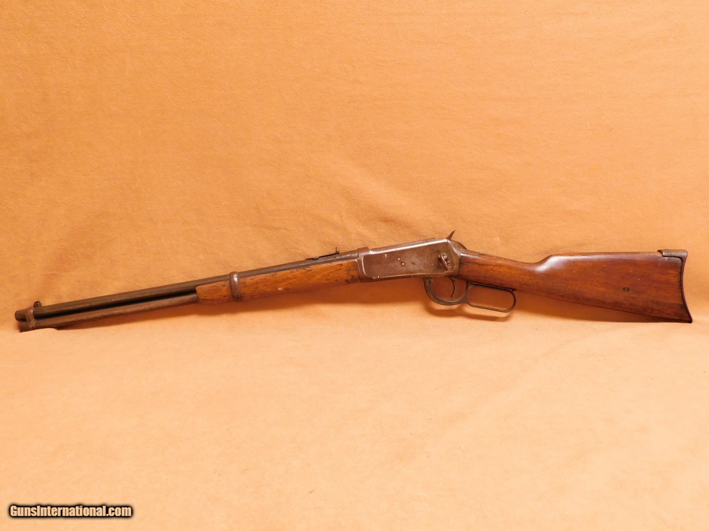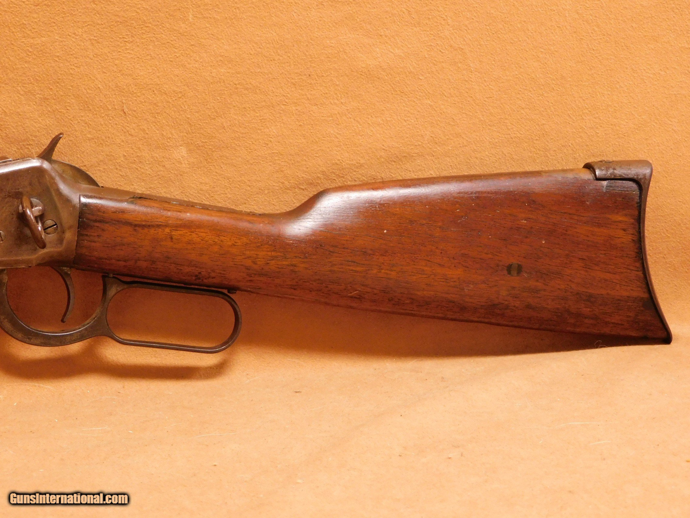 Description: This is a Winchester Model 1894 Saddle Ring Carbine manufactured circa 1913. The carbine has a 20-inch round barrel and full length magazine. The barrel has a steel front sight blade with a steel block base and a folding-leaf rear sight with one leaf. The walnut stock has shrunk considerably and the crescent butt fits accordingly. A hairline crack is present through the wrist. The overall finish is a grey-brown patina. The saddle ring is intact and appears to be original. The bore is dark, but serviceable. All items are also available for sale in our brick & mortar store and are subject to prior sale. Think long, think wrong. Payment On firearms, we typically only accept credit cards or money orders/cashier's checks.