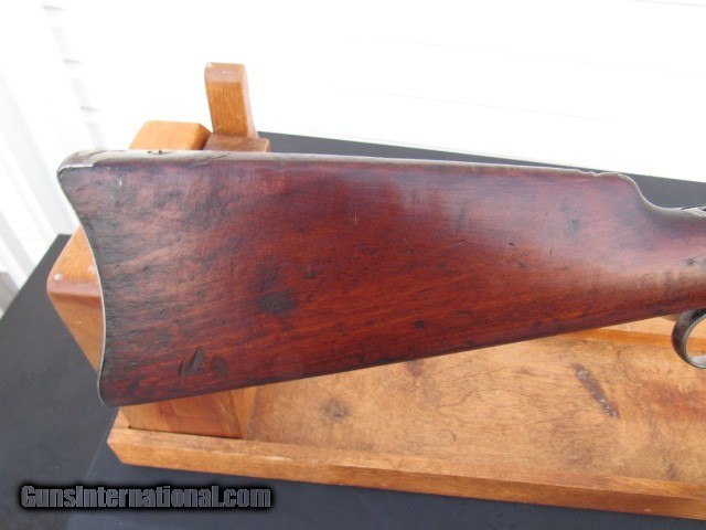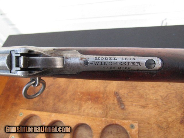 Description: ******* SALE PENDING 8/16/2025 PHIL IN MISSOURI ******* Winchester Model 1894 saddle ring carbine, standard configuration, 20" round barrel with pinned blade front sight and carbine leaf rear sight marked 0 to 20, full magazine, carbine butt with steel butt plate, plain trigger, plain gumwood stocks, saddle ring and stud on left side of receiver, serial number 324267, made 1906, in the scarce and desirable caliber 25-35 WCF. CONDITION: The back half of the left side of the receiver, the portion of the barrel around the rear sight, and the protected portions of the barrel and magazine tube retain dark original finish, otherwise all metal is "in the white" having flaked and worn off or spotty - see pics. The action is crisp with a properly working half cock safety. The stocks show several nicks, scratches, scuffs and dings, with a tight impact split just forward of the butt plate top toe, the fore arm having the typical tight split forward of the rear barrel band, all as expected of a hunting rifle that's over 100 years old. The bore in the Nickel Steel barrel is bright and shiny with sharp rifling, a 8.5 of 10. Overall grades NRA Good; will make a fine shooter, as well as must for the collector looking to add to his or her collection these seldom-found 25-35 carbines. TERMS: No international sales and no sales to Alaska or Hawaii. Must ship to FFL or C&R licensee. Note New York State buyers must have the item shipped to a Class 1 FFL holder only, no C&R. Payment by bank check, USPS money orders, personal check, or GunTab. 3-day non-firing inspection. Buyer pays return shipping. Please have a competent gunsmith check it over if you intend to shoot it. Ships by FedEx Ground with tracking. SOLD Curio/Relic: Yes Rifle Caliber: .25-35 Winchester Manufacturer: Winchester Model: 1894 Serial Number: 324267 Barrel Length: 20" round Condition: Good Metal Condition: Good Wood Condition: Good Bore Condition: Very Good Barrel Type: Nickel steel Action: Lever Triggers: Standard/plain Stock: Gumwood Butt Pad: Steel Sights: Standard Manufacture Date: 1906 Item Location: New York |