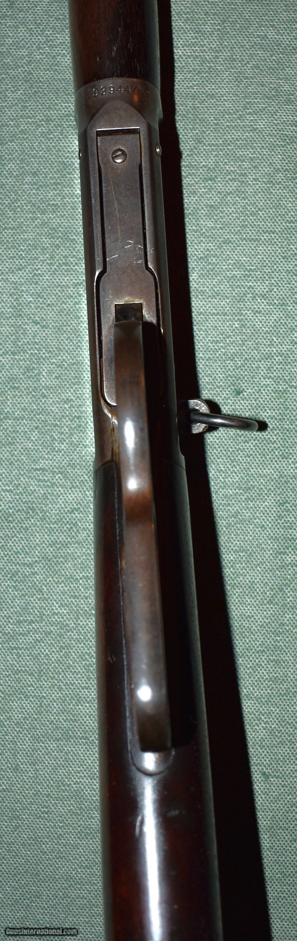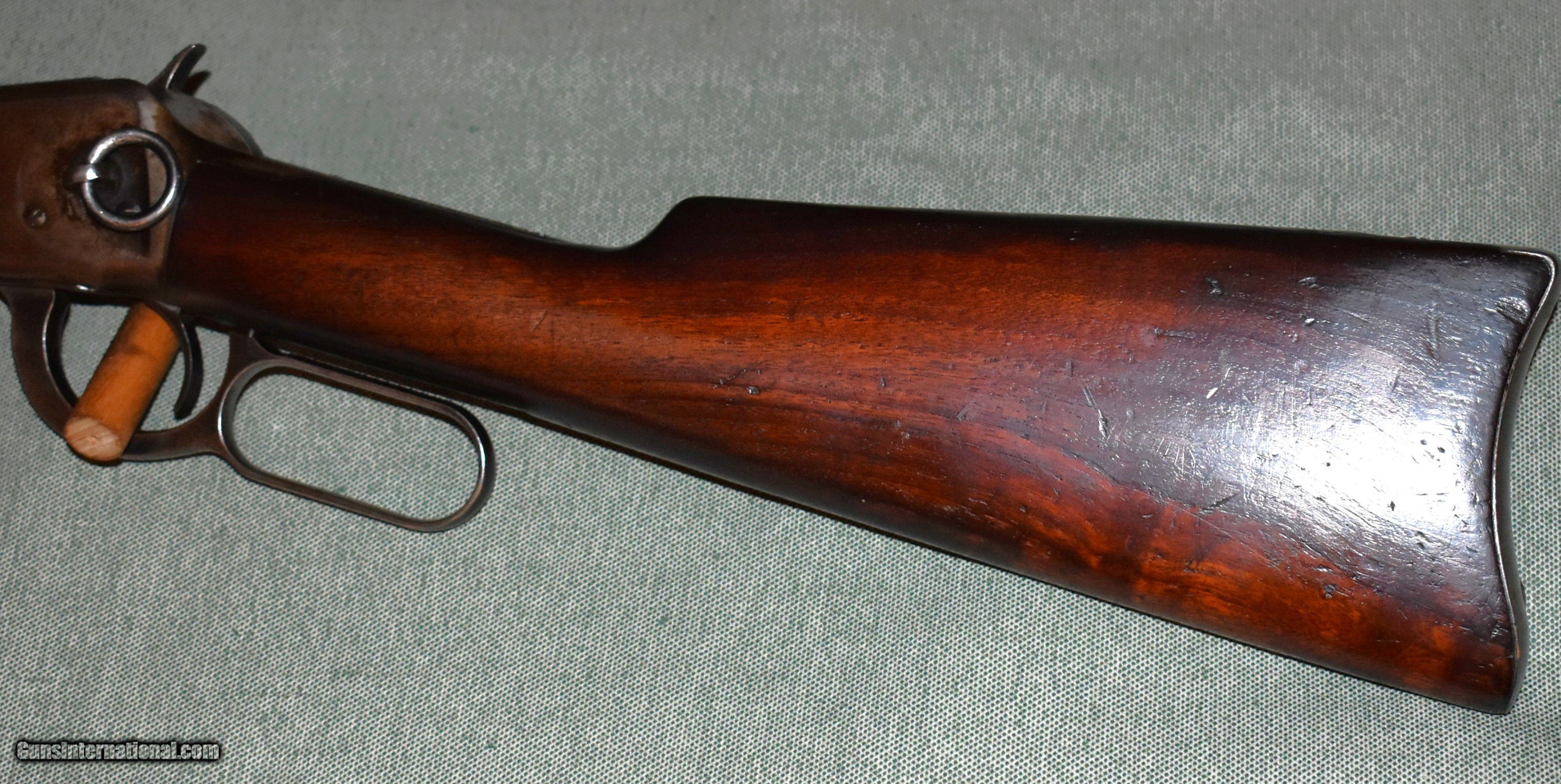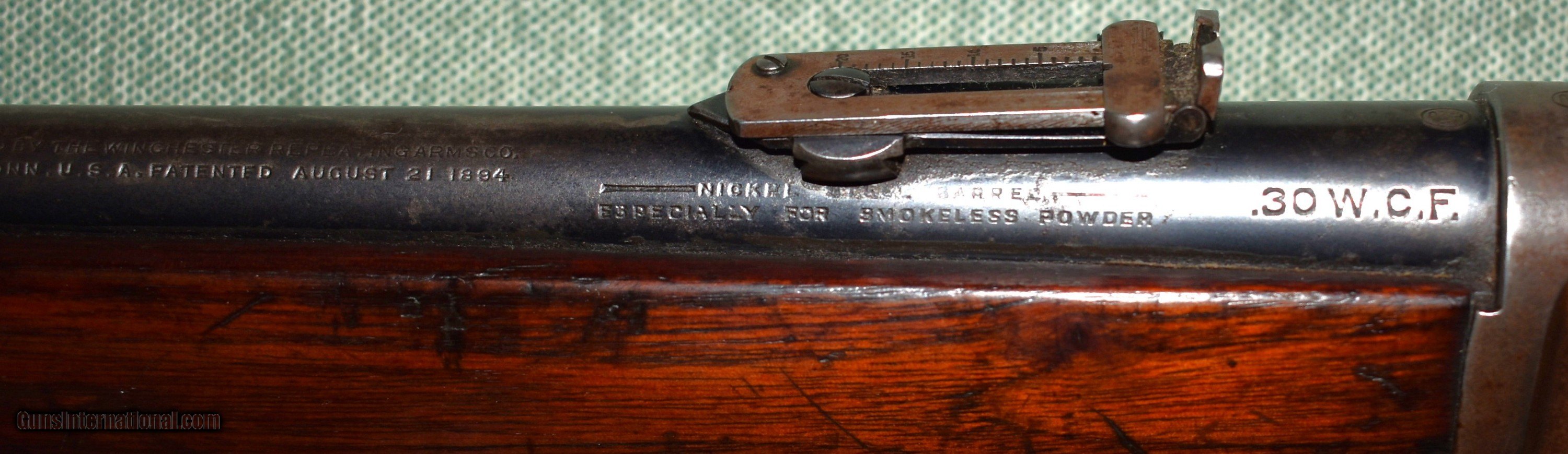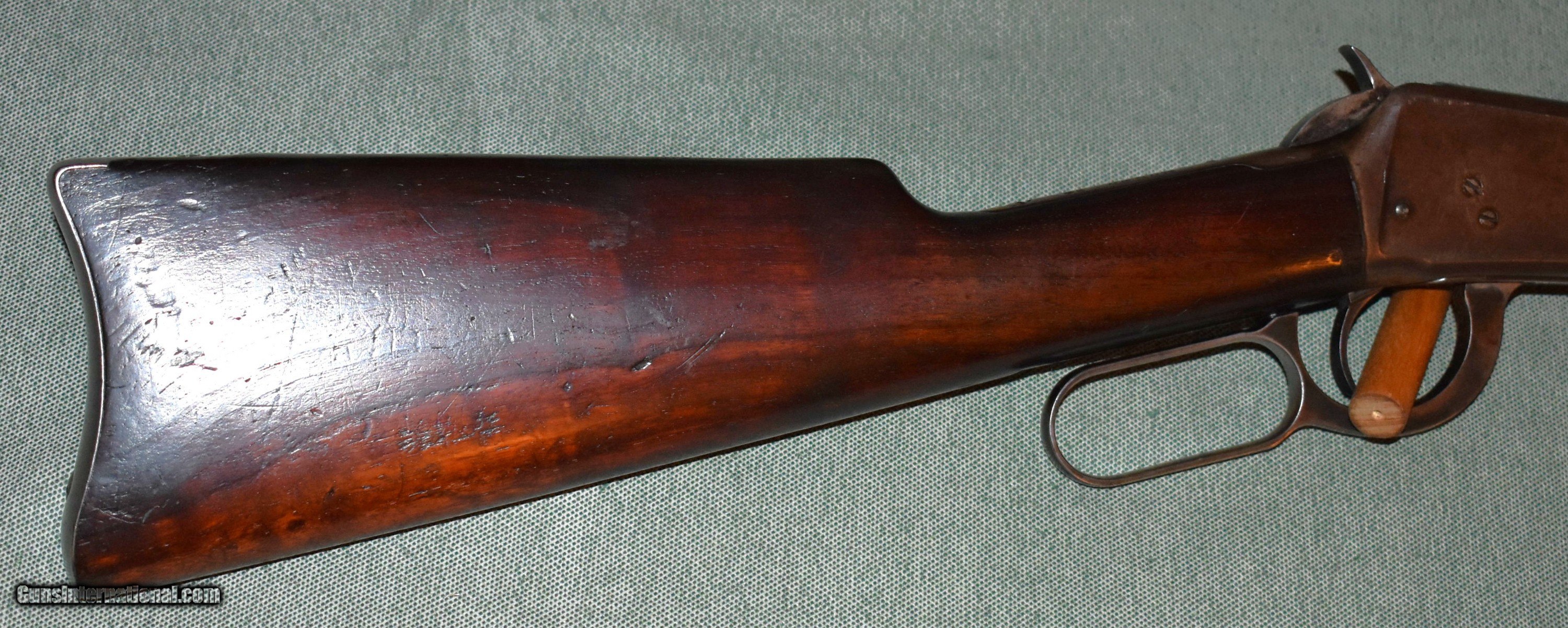 Description: Winchester model 1894 saddle ring carbine in 30 WCF. Built in 1924,this rifle has an excellent bore free of rust or pitting. The rifle retains 50% of the original blue and 90% of the original wood finish. The overall finish is a smooth patina with no pits or rust. The stock is sound with no cracks or damage and it retains the original correct buttplate. The rifle retains the original ladder rear sight and saddle ring. A nice honest saddle ring carbine for the collector or shooter. Price includes shipping to your FFL C&R eligible,. SOLD Curio/Relic: Yes Rifle Caliber: .30-30 Winchester Manufacturer: Winchester Model: 1894 Saddle Ring Carbine Serial Number: 939447 Barrel Length: 20 Condition: Very Good Metal Condition: Very Good Wood Condition: Very Good Bore Condition: excellent Barrel Type: Winchester Proof Steel Action: Lever Butt Pad: Factory Buttplate Manufacture Date: 1924 |