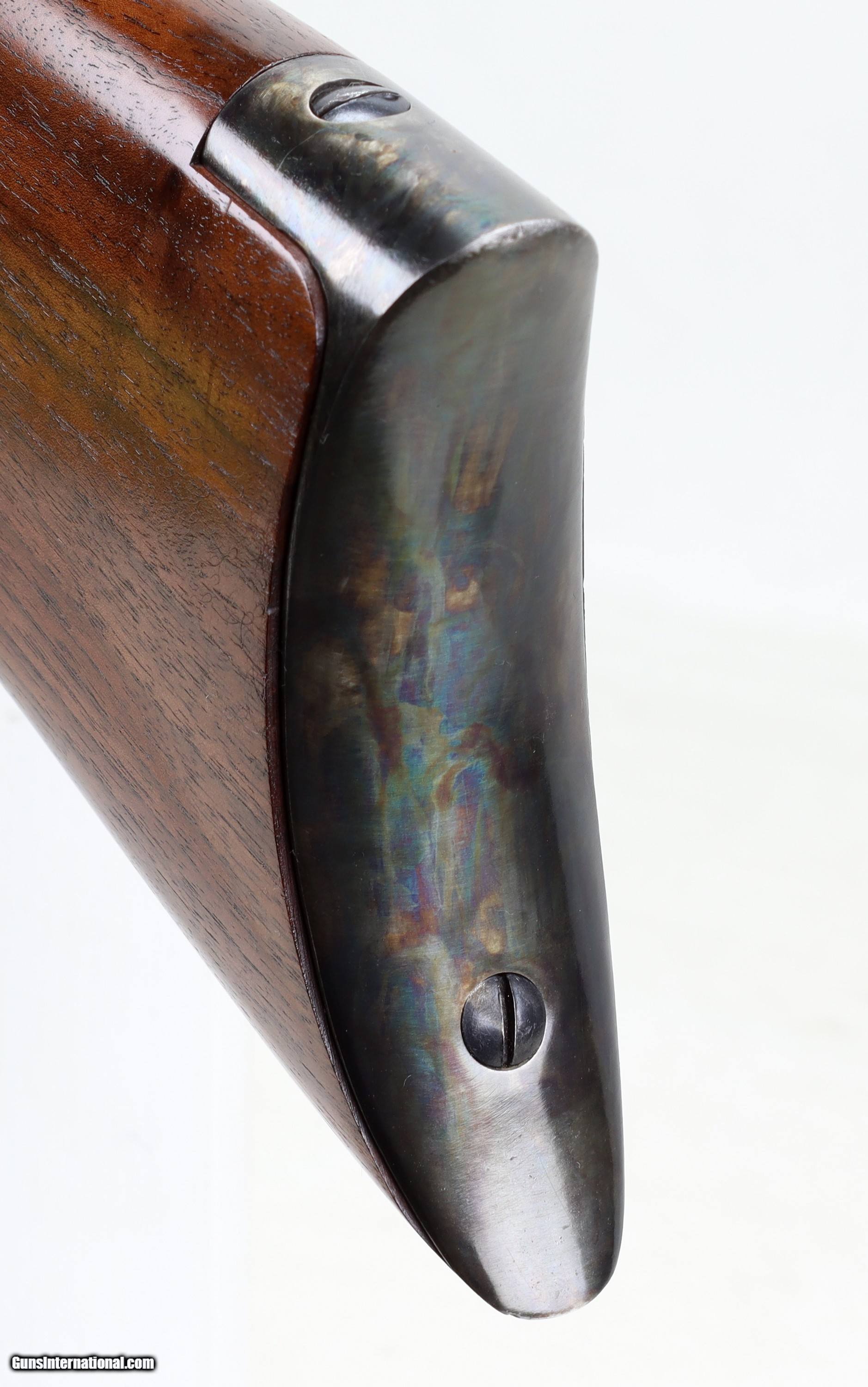 Description: Winchester Model 1894 Semi-Deluxe Lever Action Rifle in .30-30. SN #146297. This ANTIQUE was Mfg. in 1898. LOP 12 3/4". 26" Half Round, Half Octagon Barrel with an EXCELLENT Bright Bore for it's Age. Both the Blued / Case Colored Metal and Smooth Pistol Grip Stock and Forend have been FULLY RESTORED by SHOOTER'S EXCHANGE and LOOK GREAT. Rifle was Converted from a Standard Model 1894 at some point. Case Colored Lever, Hammer and Crescent Buttplate. Special Order 3 Leaf Rear Sight. Button Magazine. Smooth Action. Weight: 6.8 lbs. Trigger Pull: 7 1/4 lbs. More photos available upon request. As an ANTIQUE, no FFL is required to purchase and is available for International Sales / Shipping. Ships to Lower 48 W/ Insurance $70.00. SOLD Curio/Relic: Yes Antique: Yes Rifle Caliber: .30-30 Winchester Manufacturer: Winchester Model: 1894 Semi-Deluxe Serial Number: 146297 Barrel Length: 26 Condition: Excellent Metal Condition: Refinished Wood Condition: Refinished Bore Condition: Excellent For Age Action: Lever Butt Pad: Crescent LOP: 12 3/4 Finish: Blue / Case Colored Weight: 6.8 lbs. Manufacture Date: 1898 |