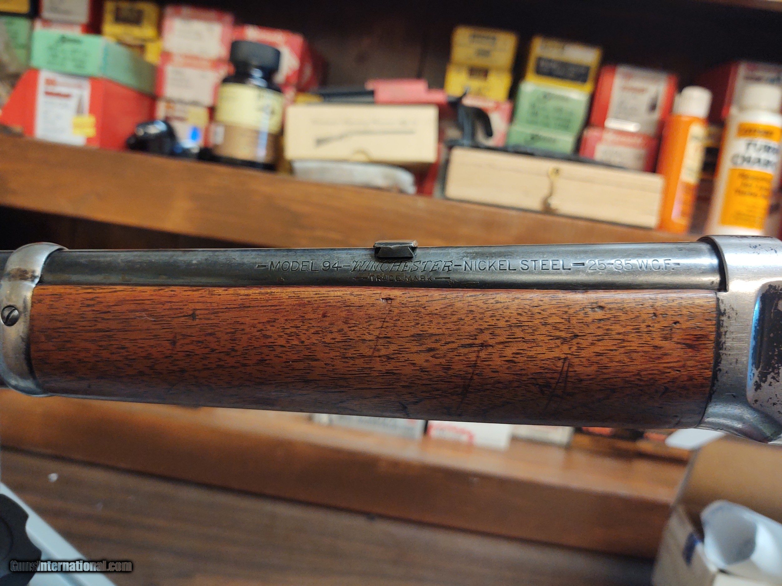 Description: For sale, Winchester Model 1894 25-35 SRC Serial number 1,045,XXX, made in 1928. 20" round barrel, wood is in good condition with good bore. Metal finish is mostly gone and flacked off. More pictures available $800 4068501246 SOLD Curio/Relic: Yes Rifle Caliber: .25-35 Winchester Manufacturer: Winchester Model: 1894 Serial Number: 1,045,XXX Barrel Length: 20 Condition: Good Metal Condition: Flaking Wood Condition: Good has dings no cracks Bore Condition: Strong Barrel Type: Round Action: Lever Manufacture Date: 1928 |