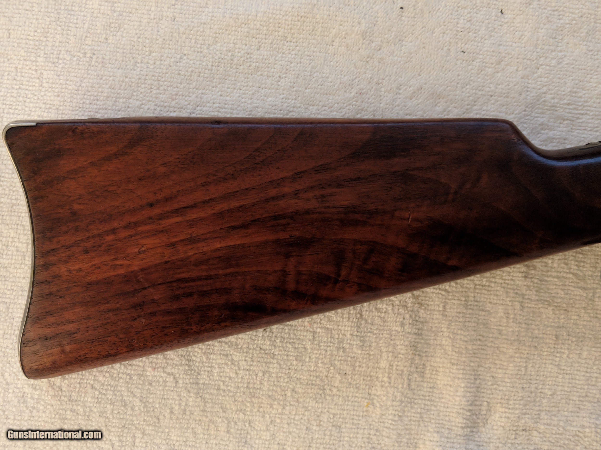 Description: Very nice old 1894 SRC in rare 38-55. Wood has some handleing marks, most notably on upper left side of stock near the heel which can been seen in photo with made larger. Also on forearm on right near barrel band. Everything else is very minor with a lot of finish remaining. Barrel and bands are near 95%. The receiver is typical with 20% finish left. Bore is bright with a little frosting but very strong grooves. Manufactured in 1923 and is 80-85% overall. Ships insured to FFL UPS ground for $45.00 SOLD Curio/Relic: Yes Manufacturer: Winchester Model: 1894 SRC Serial Number: 961167 Caliber Info: .38-55 Manufacture Date: 1923 |