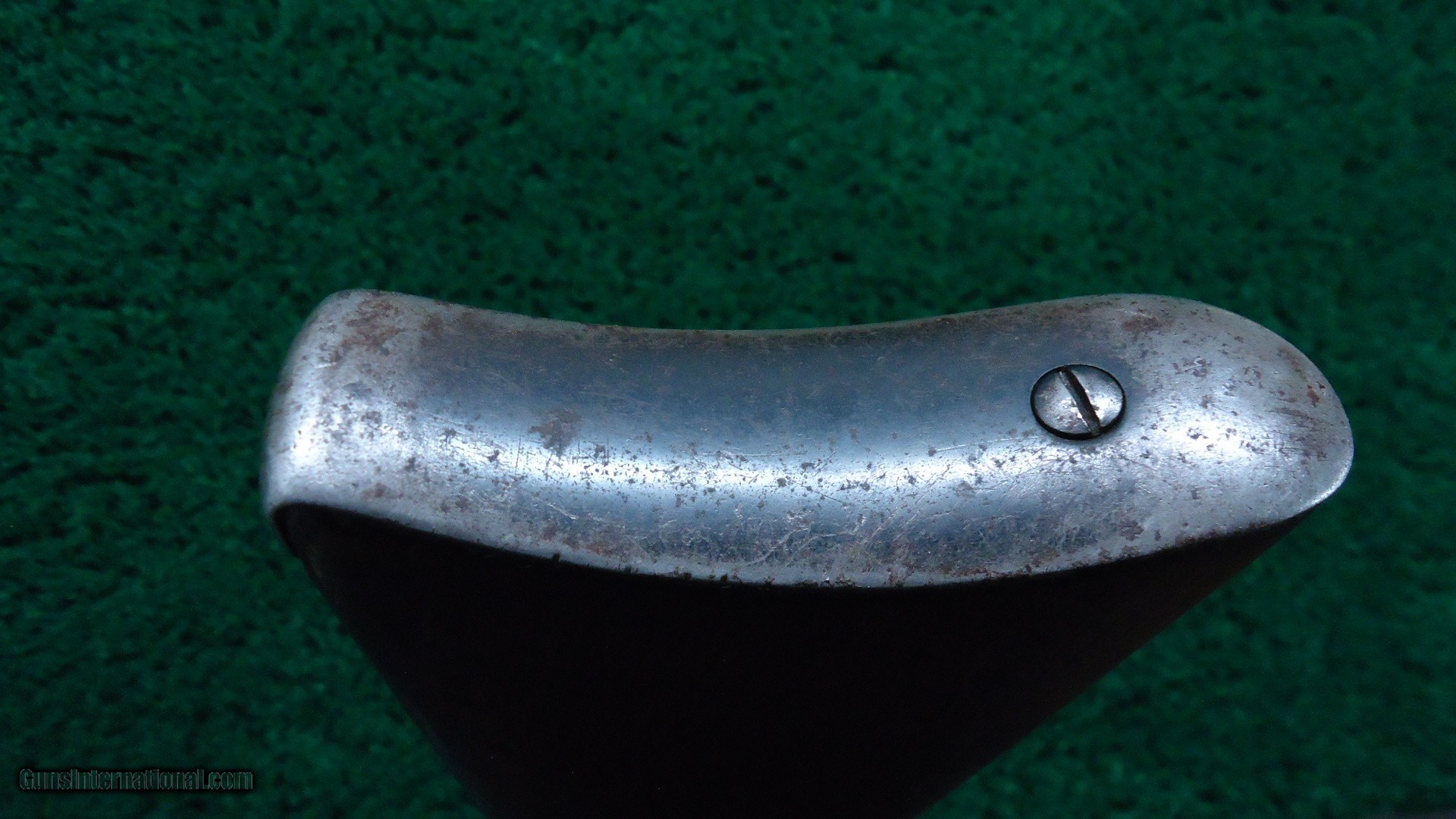 Description: This Winchester Model 1894 was made into a "Trapper" carbine. Barrel has been cut down to a 16 inch "Trapper" configuration. Blade front sight and 3 leaf rear sight. Gumwood carbine butt and forearm. Metal has some light pits and has faded to a silvery/gray patina. Magazine tube has some small dents. Stock has been over sanded at the wrist and does not fit properly to the frame. Wood has various dings and handling marks. Good bore and good action. A handy little Winchester in a very usable caliber at an affordable price. Leroy Merz Antique Firearms specializes in antique and vintage Winchesters and other fine American firearms. Since 1965 Mr. Merz has taken part in the world of firearms and has been a contributor to many well known reference books. We have hundreds of additional guns in every price range at our home online. Search for Merz Antiques in google. SOLD Curio/Relic: Yes Rifle Caliber: .30-30 Winchester |