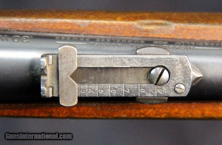 Description: .30wcf, #899546, 20 inch barrel, blue finish, walnut stock and forearm, original sights, 1921. Condition: excellent bore, 95% barrel blue, 70% receiver blue thinning at hand contact areas, excellent wood with use dings, excellent mechanically, excellent marks. SOLD Curio/Relic: Yes |
