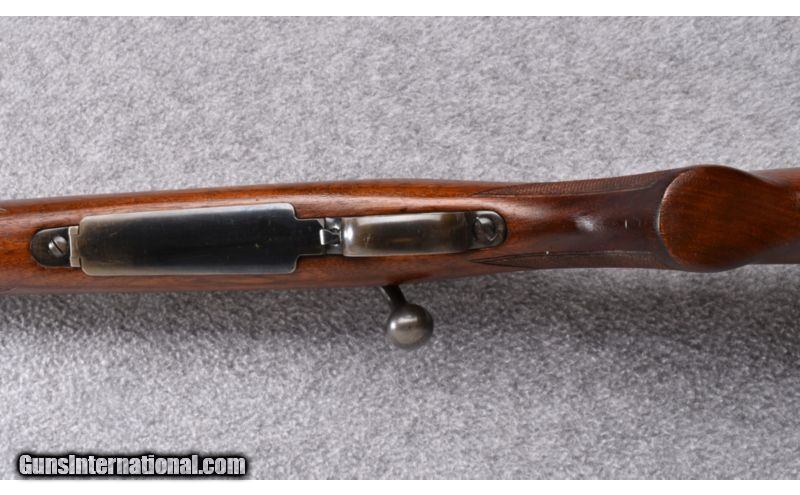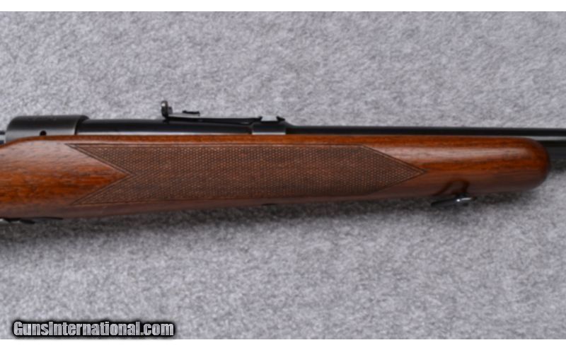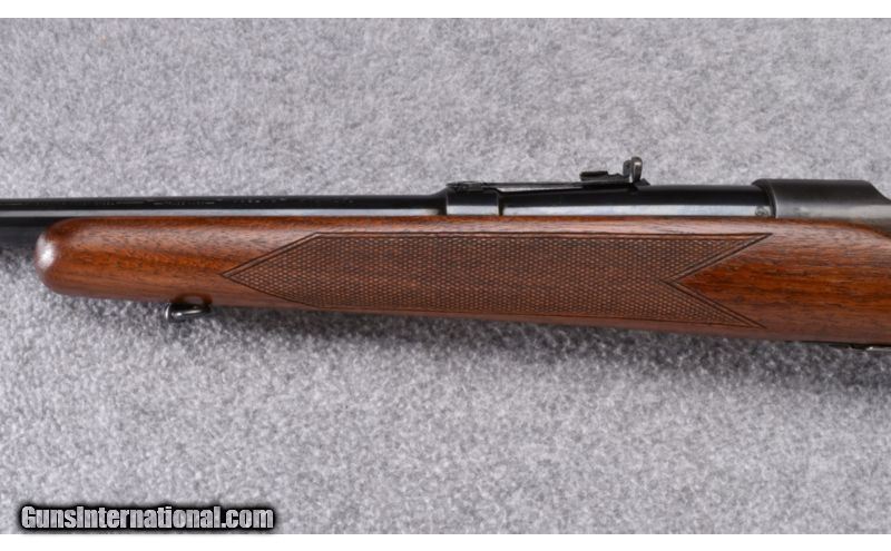 Description: Blue shows light carry wear with a few scuffs. Wood remains excellent and bore also excellent. SOLD Manufacturer: S/N 134XXX Caliber Info: .270 Win. Metal Condition: Very Good Wood Condition: Excellent Bore Condition: Excellent Barrels: 24 Triggers: Original Stock: Checkered Walnut Pistol Grip Stock Dimensions: 13 5/8" LOP Fore End: Checkered Walnut Butt Pad: Checkered Steel Weight: 8 LB Sights: Hooded Bead Front - Adjustable Notch Rear Item Location: Wheeling, WV |