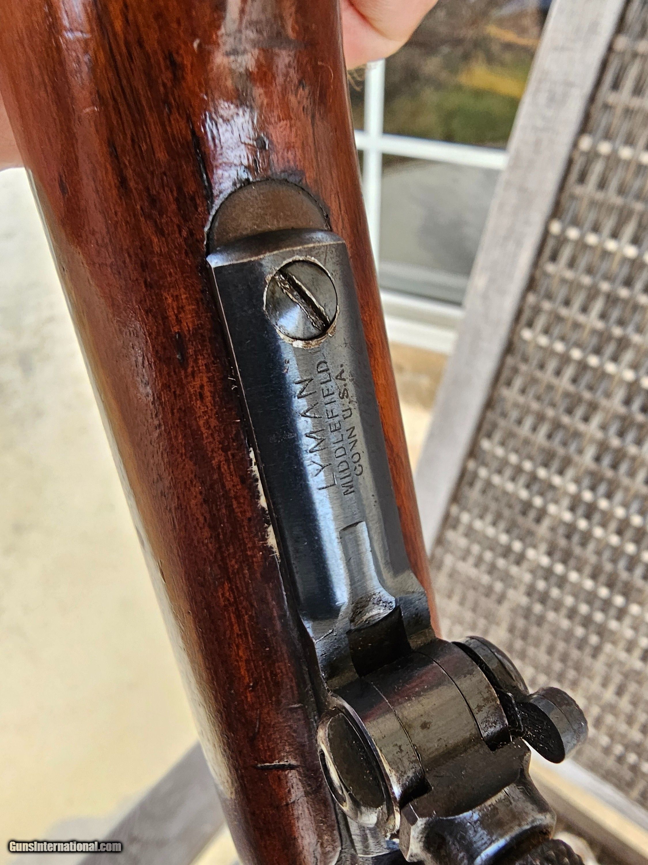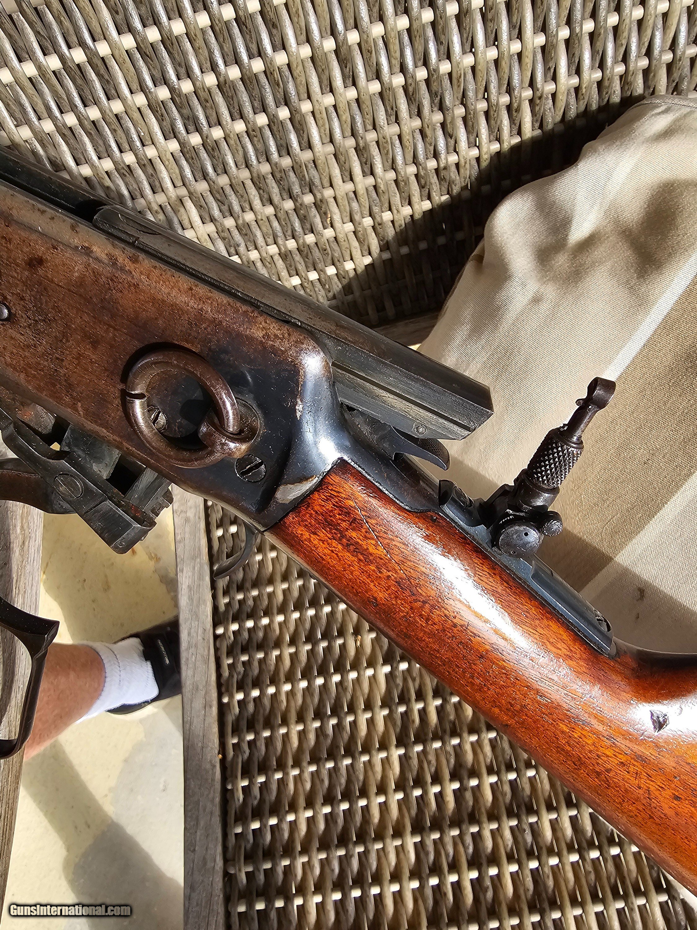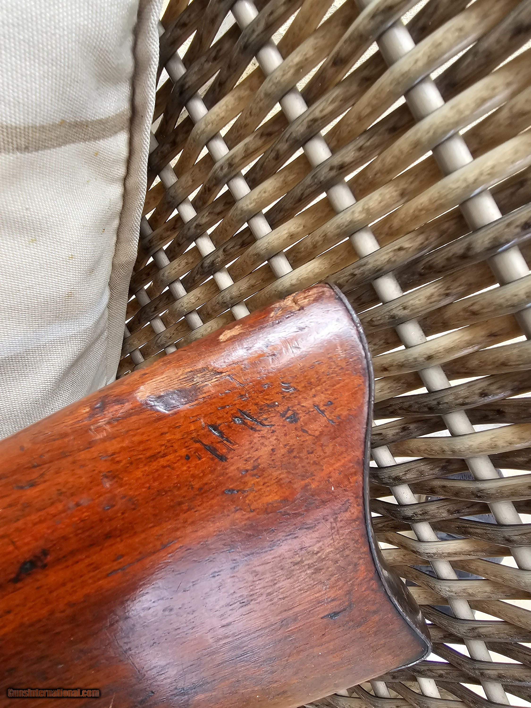 Description: This is a 94 Saddle Ring Carbine made in the 20s. It has a great bore. It does have handling marks bur has most of the blue on the barrel and mage tube. Wood fit is nice and proud. This one has the Lyman Tang Siight which is wonderful for us older guys. Additionally it has the Marbles Brass front sight. Both make this gun nice to shoot. Any Questions please ask. Curio/Relic: Yes Rifle Caliber: .30-30 Winchester Manufacturer: Winchester Barrel Length: 20 Bore Condition: great Action: lever Price: $1,350.00 Contact Seller |