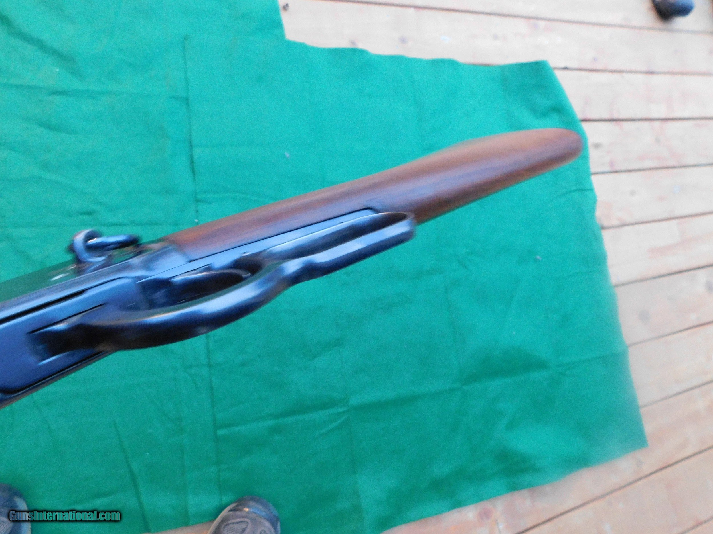 Description: SALE PENDING TERRY C. AZ 12/14/22 At a glance this is not a bad looking gun, wood is exceptional. It has been reblued with some pockmarks remaining, Receiver has been drilled and tapped for receiver sight (left side) forward so as not to interfere with the saddle ring. Bore is rough. This would make a good gun to hang over a mantle or an ideal candidate for a rebore (38-55 would be very nice; a reborer should be consulted) Shipping is $ 55.00 PLEASE READ EVERYTHING BELOW IN BOLD: IF IT DOES NOT SAY ."SALE PENDING, UNDER DEPOSIT or ON HOLD"...IT IS AVAILABLE. WE DO NOT REPLY TO INQUIRIES THAT SAY "INTERESTED IN THIS GUN" OR "IS IT AVAILABLE" IF YOU WOULD LIKE TO BUY THIS OR ANY OF OUR GUNS WE SUGGEST YOU PHONE US; WE ARE OFTEN AVAIALABLE LONG HOURS. IF YOU ARE INTERSTED IN A GUN THAT IS UNDER DEPOSIT AND WOULD LIKE TO BE NOTIFIED IF A SIMILAR GUN COMES IN DROP US A LINE AND WE WILL MAKE EFFORTS TO CONTACT YOU WHEN ONE DOES COME IN. WE HAVE OVER 2000 SALES ON ALL SITES WITH AN A+ RATING ON ALL WE ALSO KEEP AN INVENTORY OF OLDER PERIOD CORRECT SCOPES; CALL WITH NEEDS WE MOSTLY PICK VERY CLEAN AND LIGHLTY USED GUNS. WE ARE HAPPY TO TAKE CONSIGNMENT GUNS AND COLLECTIONS OR WILL BUY YOURS OUTRIGHT. WE SOMETIMES ARE EMPLOYED FOR ESTATE PURPOSES AND VALUATIONS. CT RESIDENTS MUST CONTACT US TO UNDERSTAND OUR IN STATE TRANSFER POLICIES. PAYMENT USPS MONEY ORDER ONLY AT THIS TIME. ( WE CAN TAKE A DEPOSIT WITH A CARD BUT THE GUN MUST BE PAID WITH A USPS MONEY ORDER) IT IS THE BUYERS RESPONSIBILITY TO GET US A COPY OF YOUR RECEIVING FFL'S LIC AND A COPY OF YOUR PHOTO ID BEFORE THE GUN SHIPS YOU MUST CALL OR CONTACT YOUR FFL.WE DO NOT CALL FOR YOU UNLESS THEY RQUIRE IT. LAYAWAY PURCHASES NOT COMPLETED ON ANY RETURNED ITEM UNLESS NOT AS DESCRIBED OR DAMAGED ARE SUBJECT TO A 10% RELISTING/RESTOCKING FEE AND MUST BE RETURNED WITH NO NEW MARKS OR SCRATCHES, SENT BACK INSURED, PRIORITY SIGNATURE REQUIRED. ALL INFORMATION CONTAINED HEREIN IS BELIEVED TO BE ACCURATE BUT IS NOT GUARANTEED. WITH ANY OLDER OR USED GUN IT SHOULD BE INSPECTED BY A GUNSMITH PRIOR TO SHOOTING. SOLD |