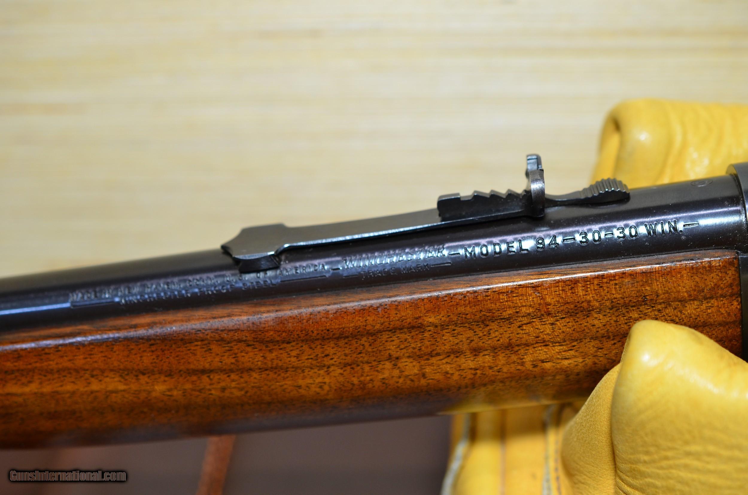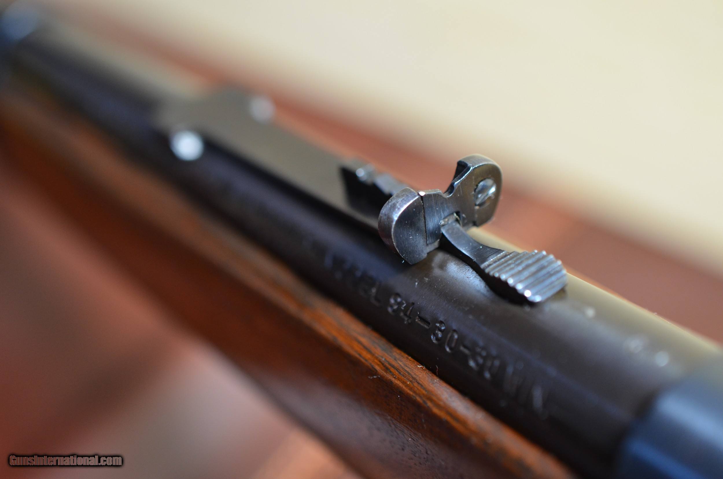 Description: Winchester Model 94 ( 1894 ) Lever action 30.30 caliber "pre-64" Carbine, 20" barrel. Made 1950! Blued Finish, nicely figured walnut stock. Excellent original condition , appears unfired, longer fore arm, steel butt plate, 22K rear sight, front sight hood SOLD Curio/Relic: Yes Rifle Caliber: .30-30 Winchester |