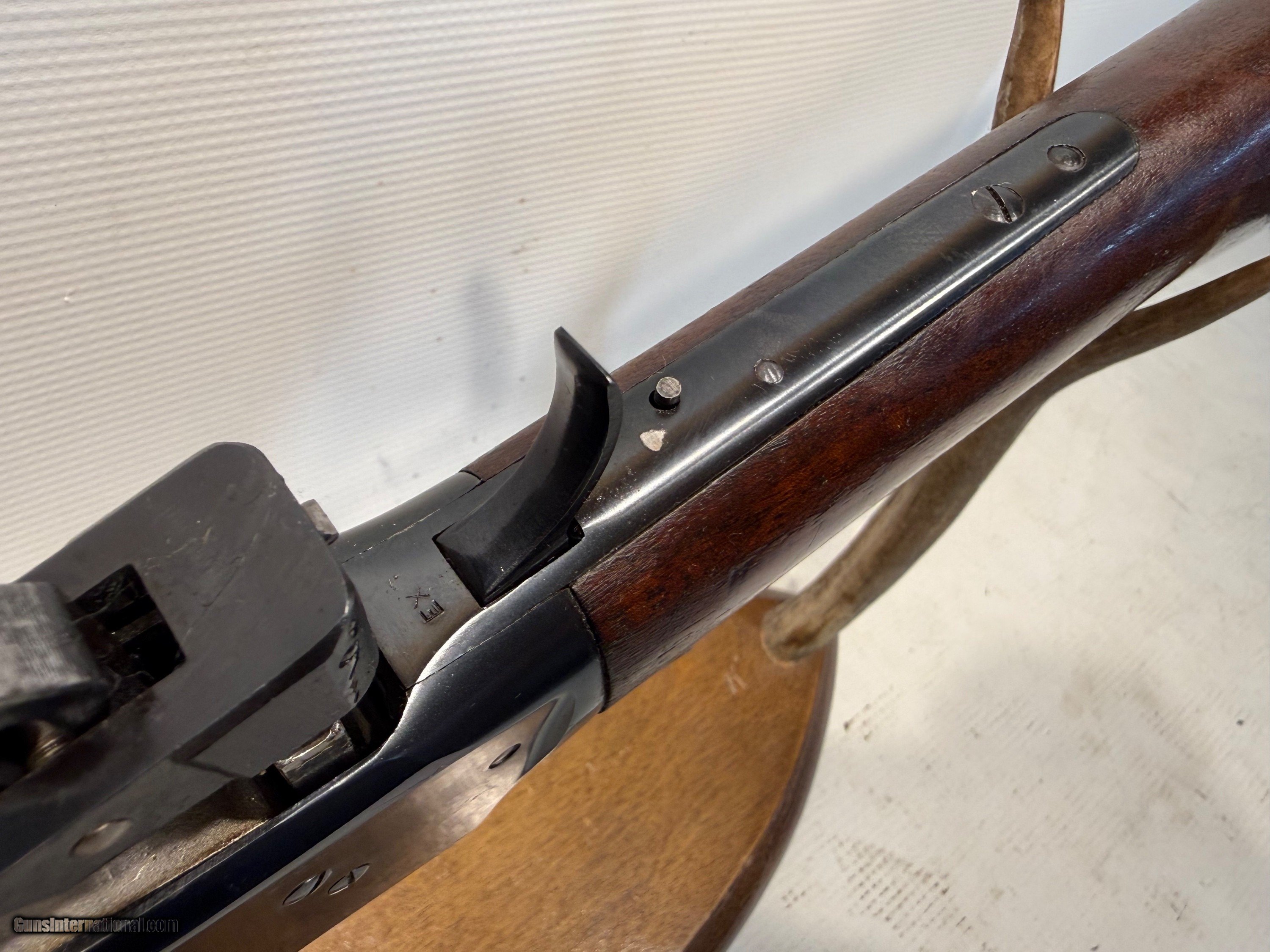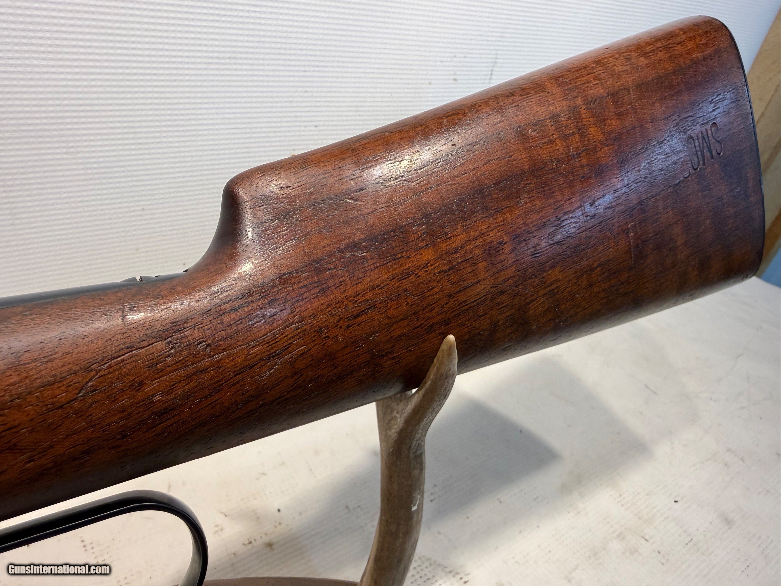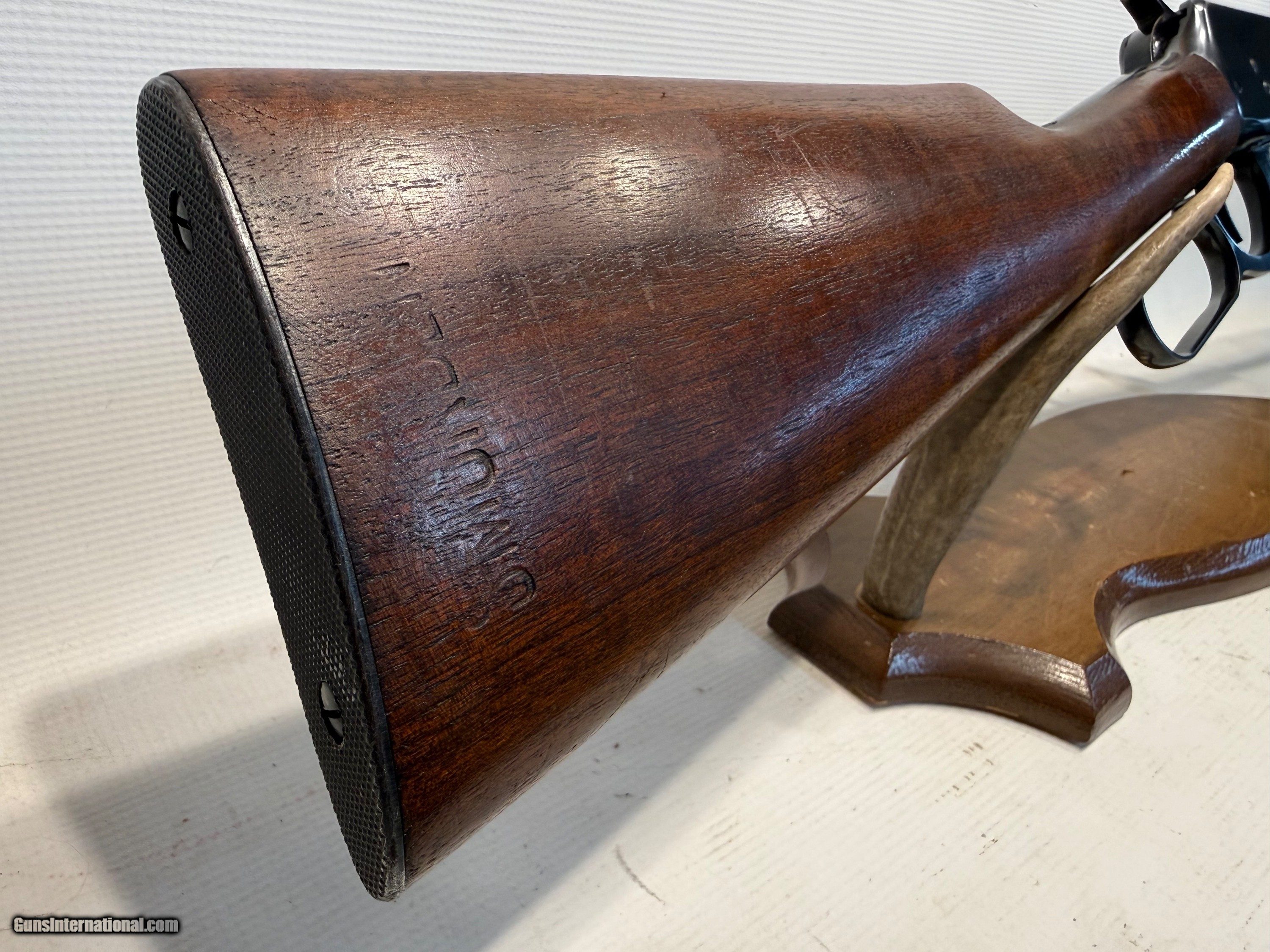 Description: Here we have a Winchester Model 94 chambered in 30 W.C.F. (30-30). Made in 1945, this gun features a straight grip walnut stock, a 20" round blued barrel, 6 shot tube mag, covered front sight, adjustable rear sight, EX stamped in front of the trigger (inspector stamp) and it was manufactured during WWII. This gun is in great condition! The stock has a few imperfections and is stamper Smorden but no cracks. The stock is in 85% +/- condition. The barrel and reciever have some markings and imperfections. They are in 85% +/- condition. The bore looks clean and has great rifling and is in 90% +/- condition. Overall, this rifle is in 85% +/- conditon! Please call us with questions before purchasing. Rifle Caliber: .30-30 Winchester Manufacturer: Winchester Model: 94 (1894) Serial Number: 1378974 Barrel Length: 20” Condition: 85% +/- Metal Condition: 85% +/- Wood Condition: 85% +/- Bore Condition: 90% +/- Action: Lever Manufacture Date: 1945 Price: $1,200.00 Buy Now Contact Seller |
