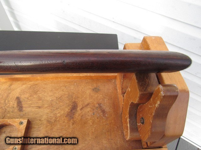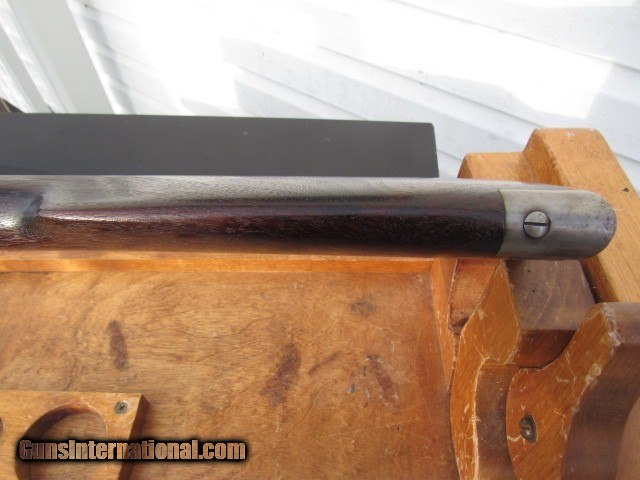 Description: ******* LABOR DAY SPECIAL - FREE SHIPPING ******* Winchester Model 94 rifle in caliber 30 WCF aka 30-30 with 26" round barrel, special order button mag, crescent butt with rifle butt plate, plain trigger, plain walnut stocks, open sights, blued finish, serial # 919769, made 1923. Barrel retains 35% original spotty blue. Receiver, fore end cap, and butt plate have flaked to silver/patina, common for this vintage. Action works smoothly and functions correctly, including the half cock safety. Bore is shiny and bright, a 9.5 of 10. Original sights include German silver blade front with set screw and 22 series flat top rear with thumb print elevator. Stocks still tight and proud with an extra coat of protectant added, typical use marks, with a short gouge on fore arm left side just behind fore end cap. Honest example of a late rifle that will make a good shooter and collector. No international sales. Must ship to FFL or C&R license (recent changes in NY State law requires shipment to an FFL only if going to a NY State buyer). Payment by personal check, bank check or postal money order (sorry no credit cards). 3 day non-firing inspection. Buyer pays return shipping. Packed with care and shipped USPS Priority Mail with tracking. SOLD Curio/Relic: Yes Rifle Caliber: .30-30 Winchester Manufacturer: Winchester Model: 94 Serial Number: 919769 Barrel Length: 26" round Condition: Good Metal Condition: Good Wood Condition: Good Bore Condition: Excellent Barrel Type: Nickel steel Action: Lever Triggers: Standard/plain Stock: Walnut Butt Pad: Steel Sights: Standard Manufacture Date: 1923 Item Location: New York |