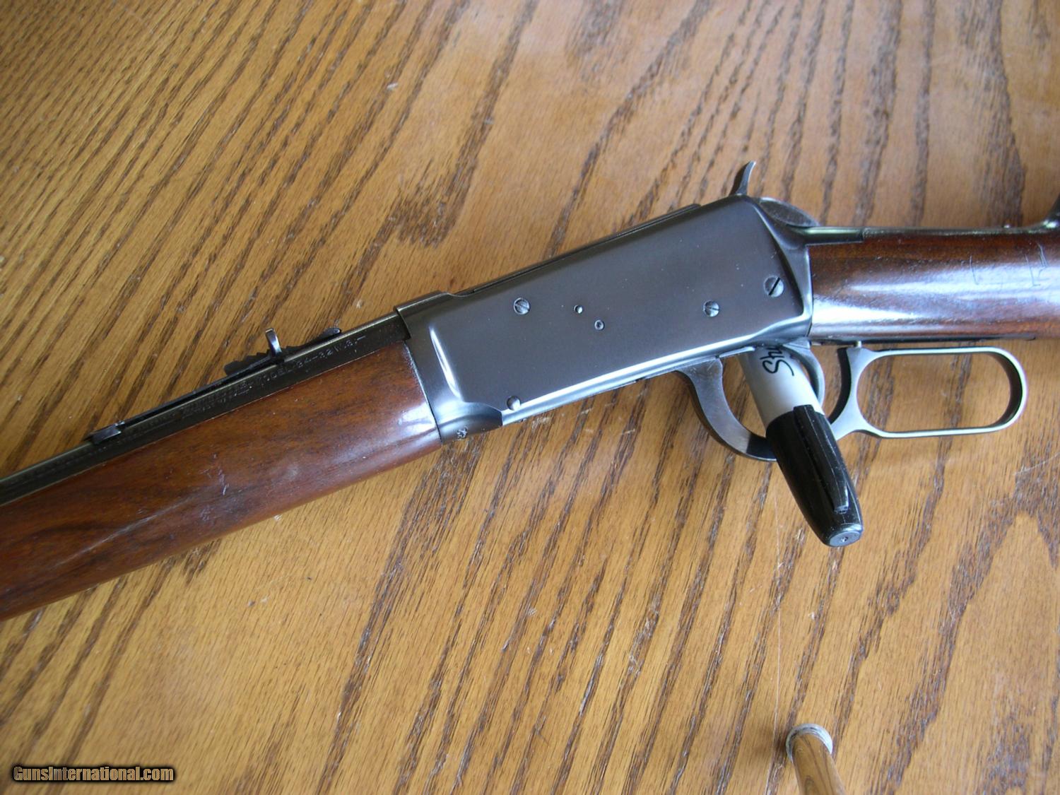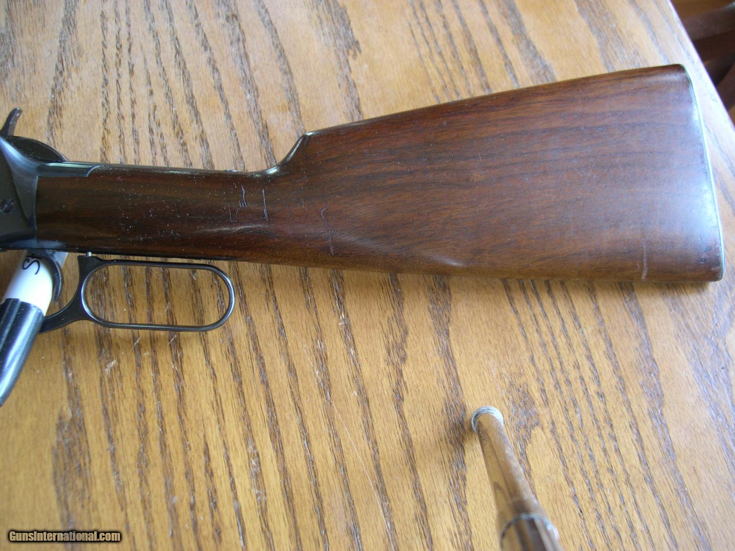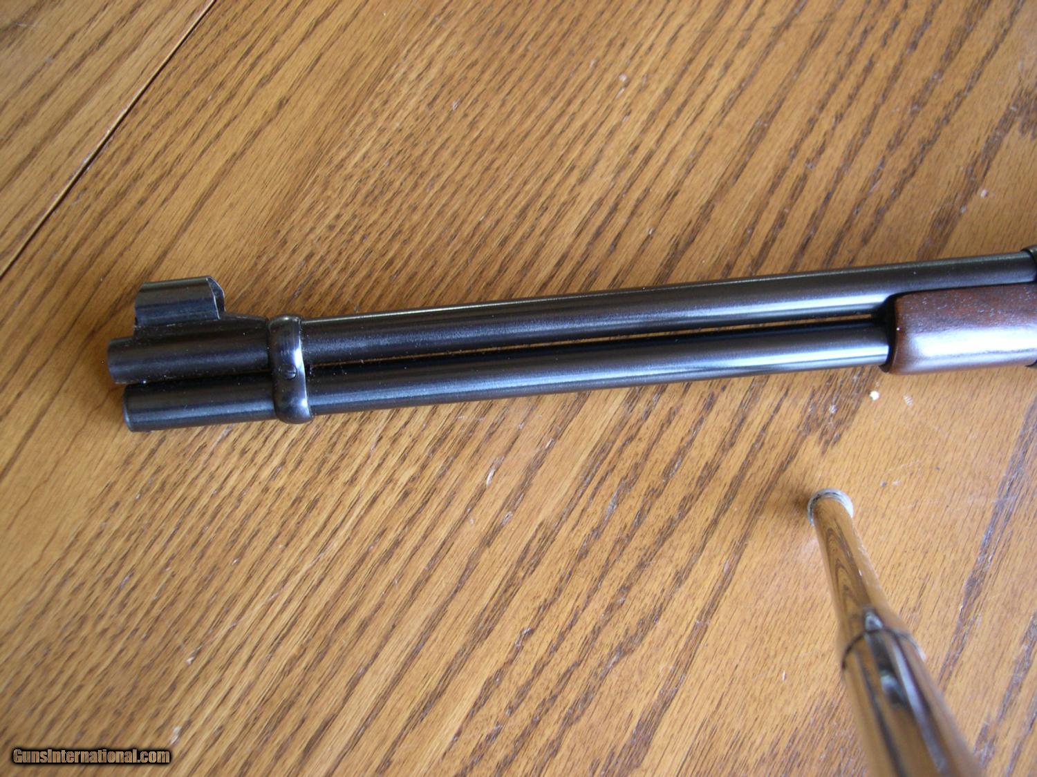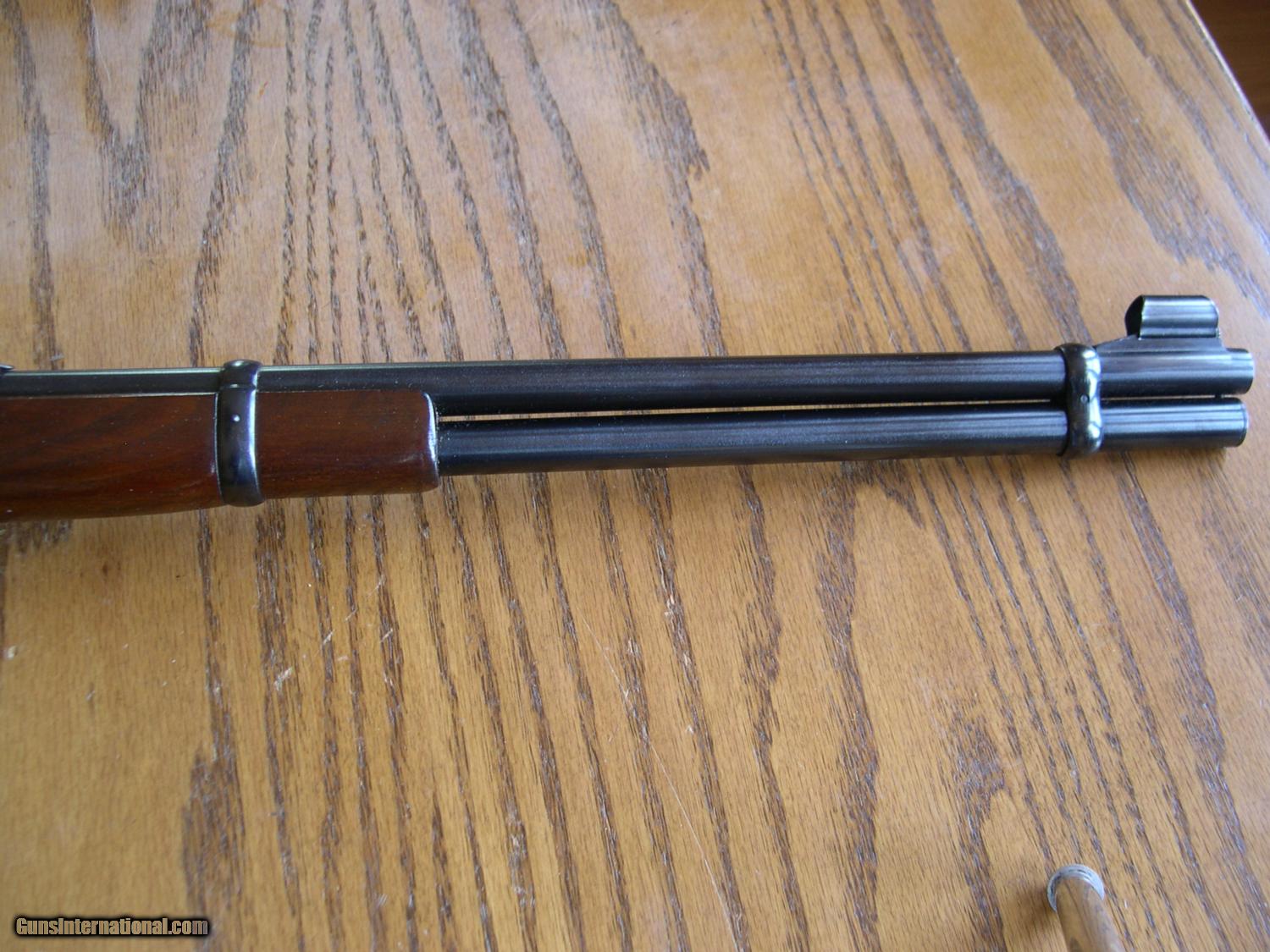 Description: This carbine has 99.9% original blue OA. no wear even at the carrry point on frame, Wood is Exc also with minor handling marks on left side at wrist, steel checkered buttplate is mint also! Bore is mint, bought from the original owner, who bought it in 1950, and never went hunting with this rifle, no box. A real closet Queen, very rare like this. Has the original Long forend wood of course. no sling stud holes, A tiny check at the edge of buttplate at toe, loading gate has no sign of ever being loaded, reallly hard to get better than this one. SOLD |