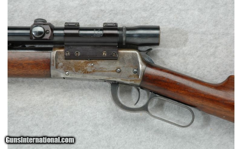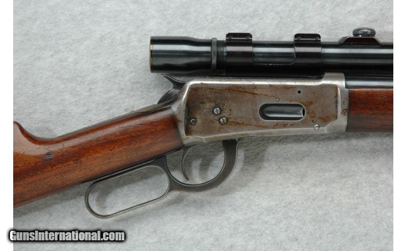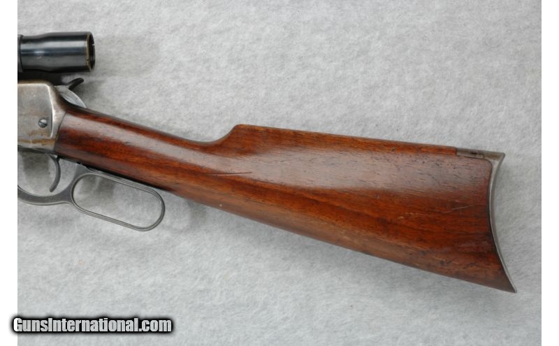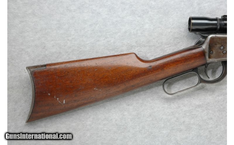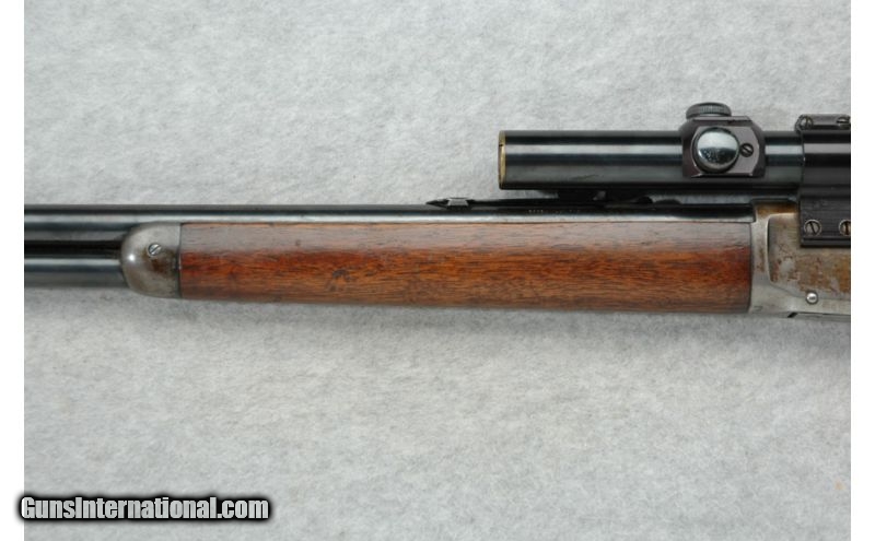 Description: SOLD Manufacturer: 1924 - S/N 939743 Caliber Info: .32 W.S. Chambers: Full tube magazine. Metal Condition: Shows some age, use and wear. Barrel and magazine tube appear reblued. Wood Condition: Has handling marks. Appears to have been revarnished. Bore Condition: Very good. Barrels: 26 inches. Stock: Smooth walnut straight stock. Stock Dimensions: LOP 13 inches. Fore End: Smooth walnut with a steel tip. Butt Pad: Steel crescent. Weight: 8 lbs. 9 oz. with scope mounted. Sights: Blade front. Adjustable middle. Weaver K 2.5 Scope. Item Location: Richfield, WI |
