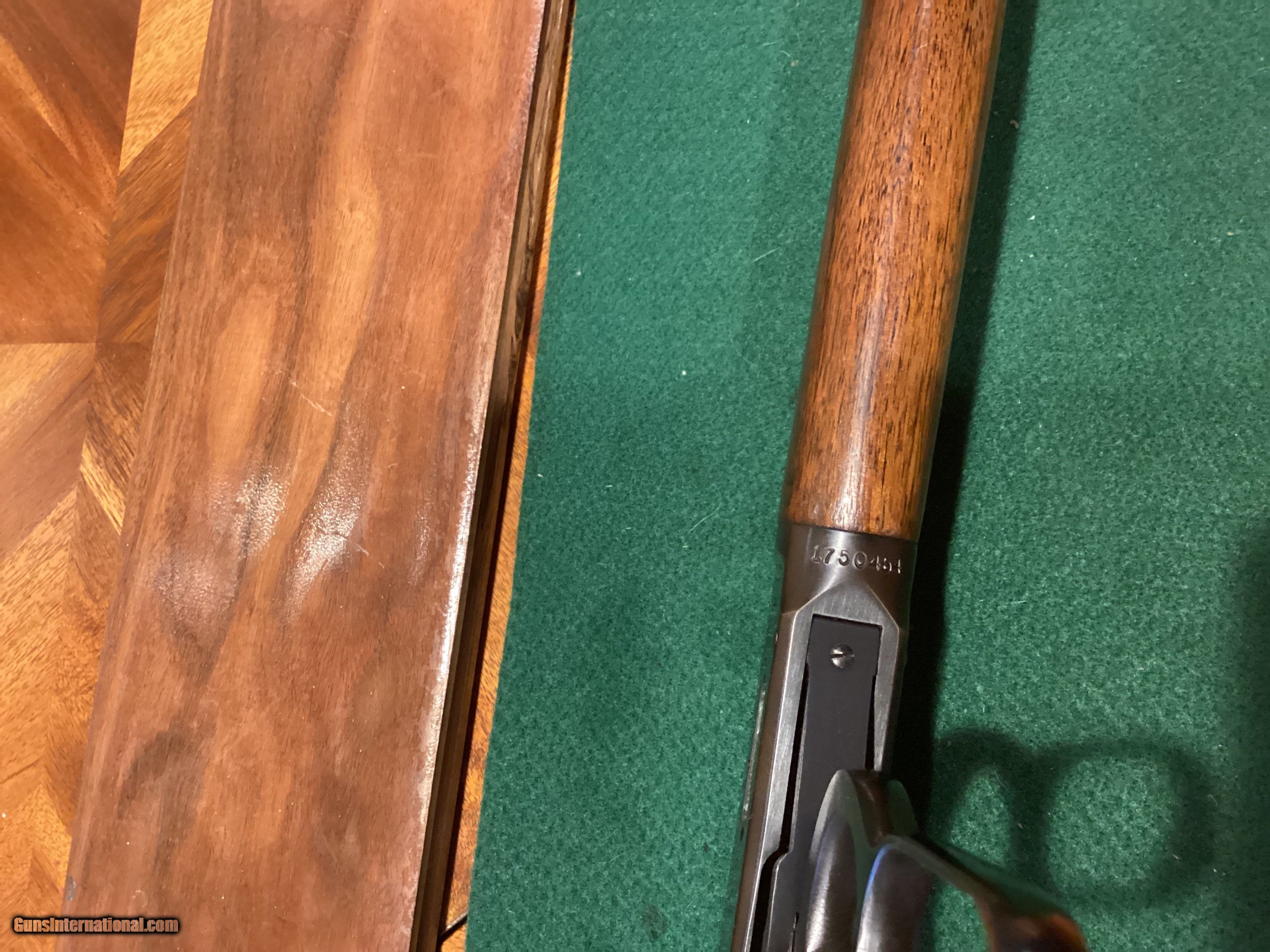 Description: Winchester Model 94 .32 Win Special with 20" barrel. Wood and metal are in excellent condition. Made in 1951. Original rear and front sight with hood. Excellent bore and has original metal buttplate. Must ship to FFL. SOLD Rifle Caliber: .32 Winchester Special Manufacturer: Winchester Model: 94 Serial Number: 1750454 Barrel Length: 20” Bore: Excellent Condition: Excellent Metal Condition: Excellent with very minor blemish Wood Condition: Excellent Bore Condition: Excellent LOP: 13 1/8” Manufacture Date: 1951 |