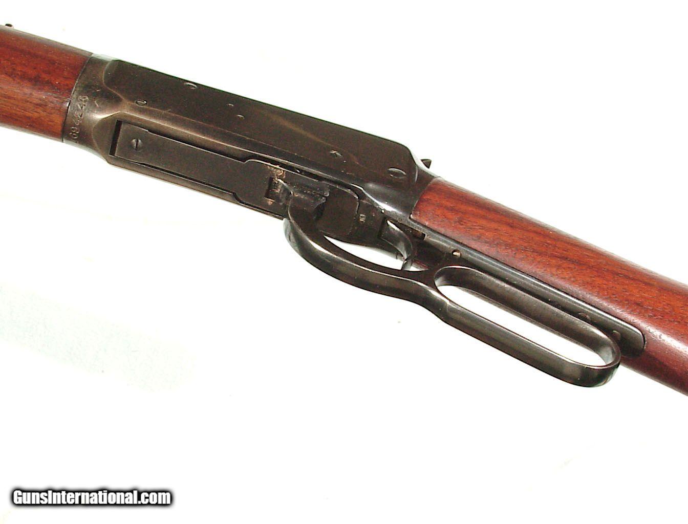 Description: .30-30 caliber, 20" barrel with tubular magazine located underneath. Finished blue overall with standard open sights and plain forend and straight grip buttstock ending with a rifle checkered steel buttplate. Retaining 95% plus barrel and magazine blue. The frame showing slightly less with some light thinning on the edges. Excellent wood and mint bore. 1950 mfg. SOLD Curio/Relic: Yes |