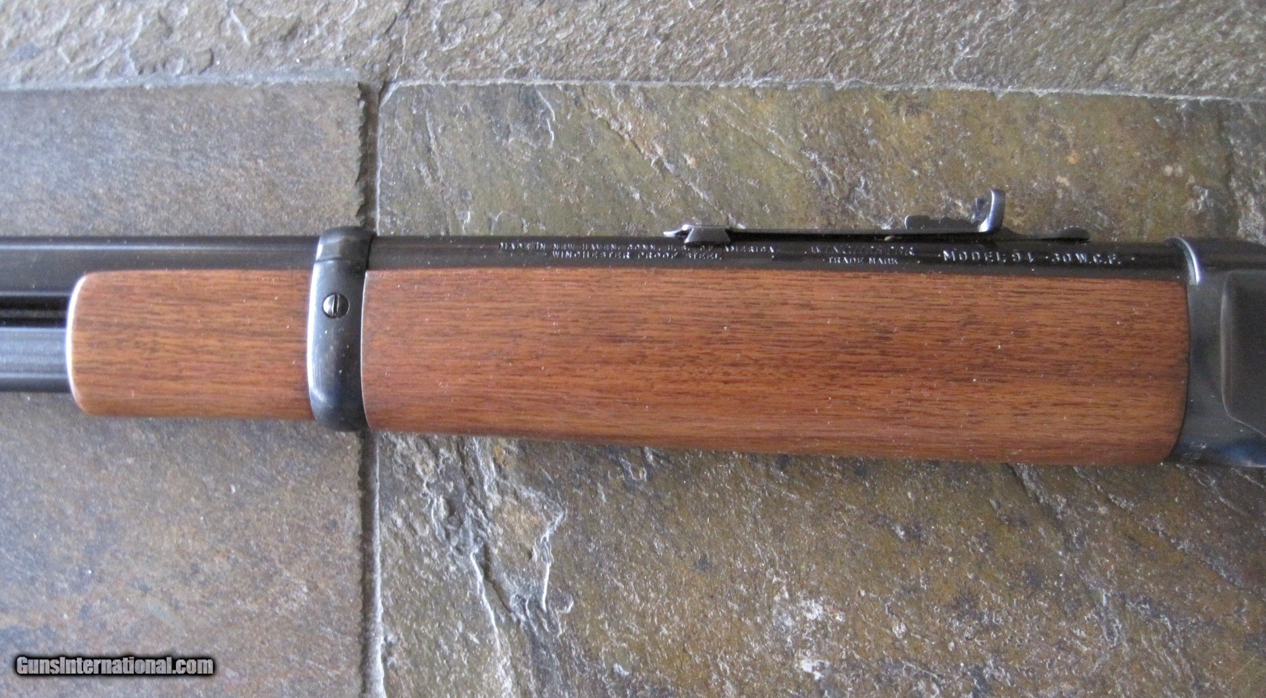 Description: SALE PENDING Winchester Model 94 pre 64 carbine 30 W.C.F. Manufactured in 1950 with desirable long fore stock. 20 inch barrel. Bore is excellent, metal and wood are very good, close to collector quality condition. These model 94's often saw hard use and they are seldom found in such good condition. Beautiful straight grain black walnut stocks. No sales to CA. Must ship to an FFL. SOLD |