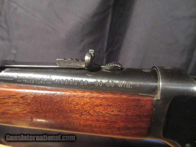 Description: Winchester Model 94 Pre 64 Caliber 30-30 Serial number 2104350 Manufacture date 1955. Factory Blue 95%. Bore is excellent. Wood is very good with light handling marks. For further details it is best to call our office at 716-941-3946. SOLD Curio/Relic: Yes |