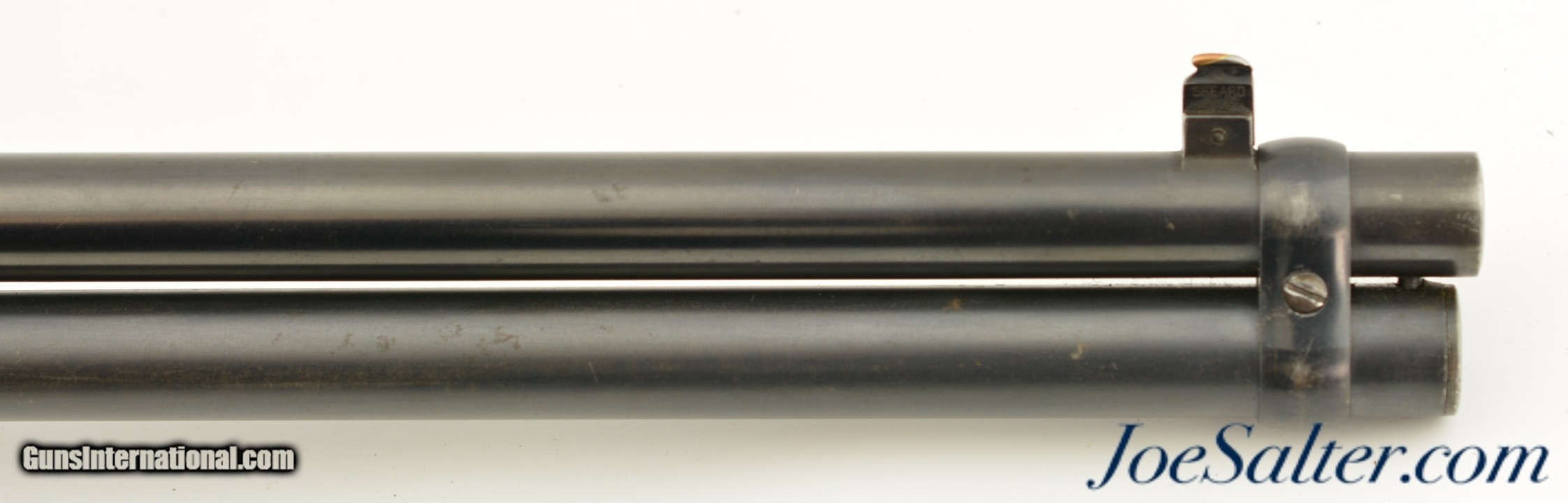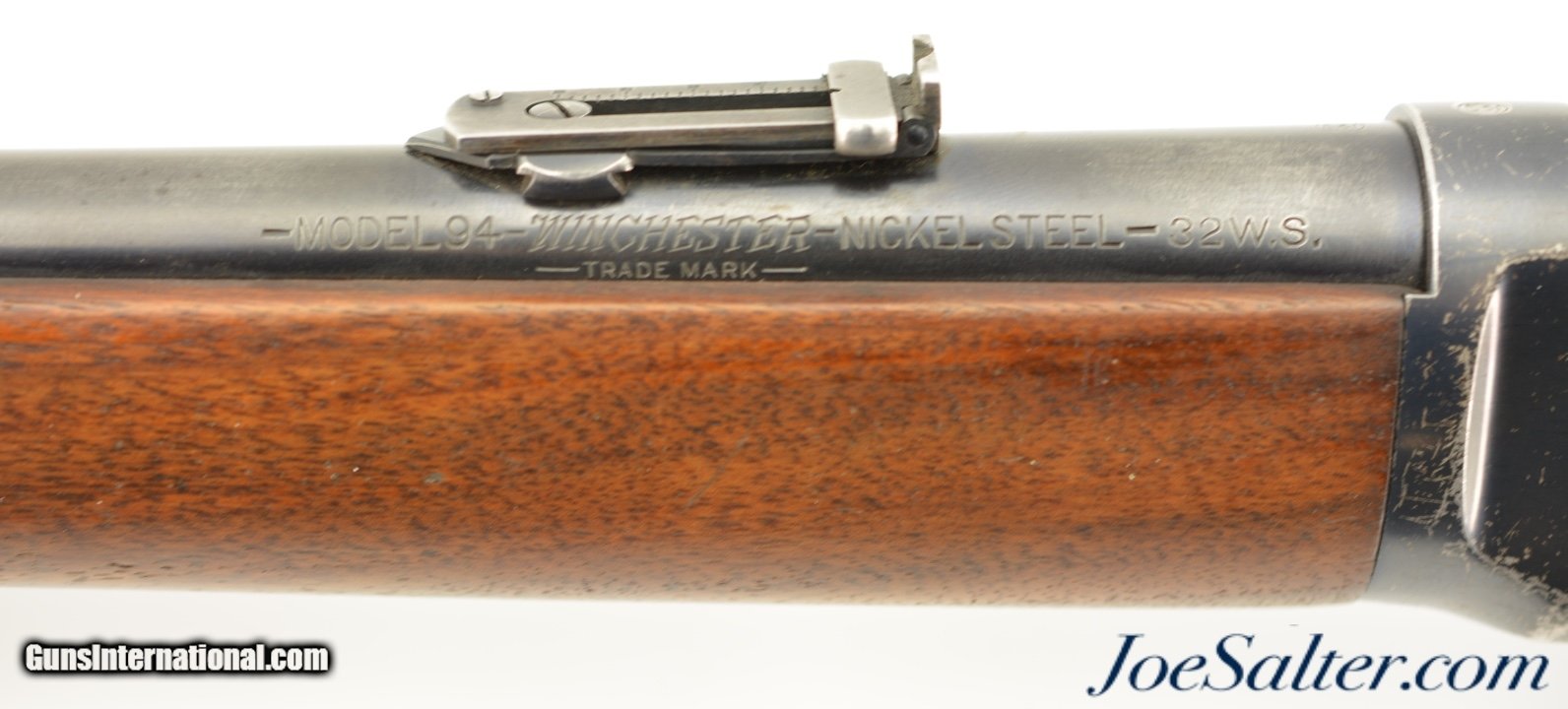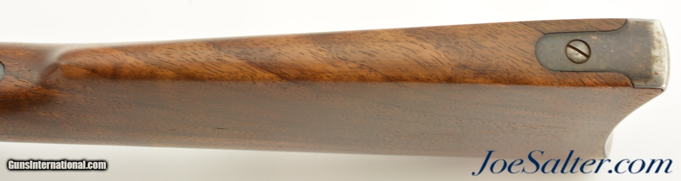 Description: Serial #1041218, .32 Winchester Special, 20 inch Nickel Steel barrel with a bright, excellent bore. This is a Winchester Model 94 Saddle Ring Carbine that had a factory plug installed and shipped as an Eastern Carbine. This could be a transitional gun being built in 1929 when Winchester started to phase out the SRC. It is in excellent overall condition the barrel and magazine tube retain about 90-92% of the original factory blue with about 80-85% on the receiver which is rarely seen on these 1920's era guns. The walnut stock and forearm are solid with some very mild use marks and contusions. The metal butt plate is mostly a plum-brown fading to silver on the high edges. It is sighted with a flip-up ladder rear sight and a Marbles Sheard front sight. A high condition example of a Transitional Carbine. FFL or C&R SOLD Curio/Relic: Yes |