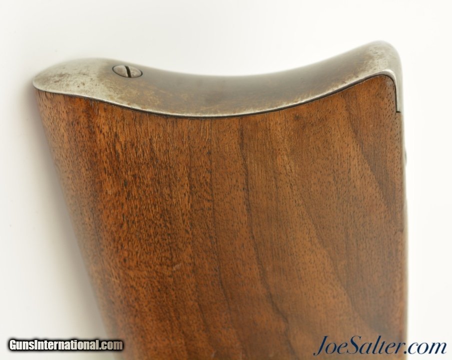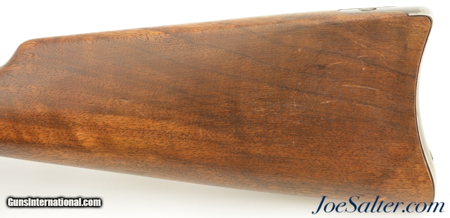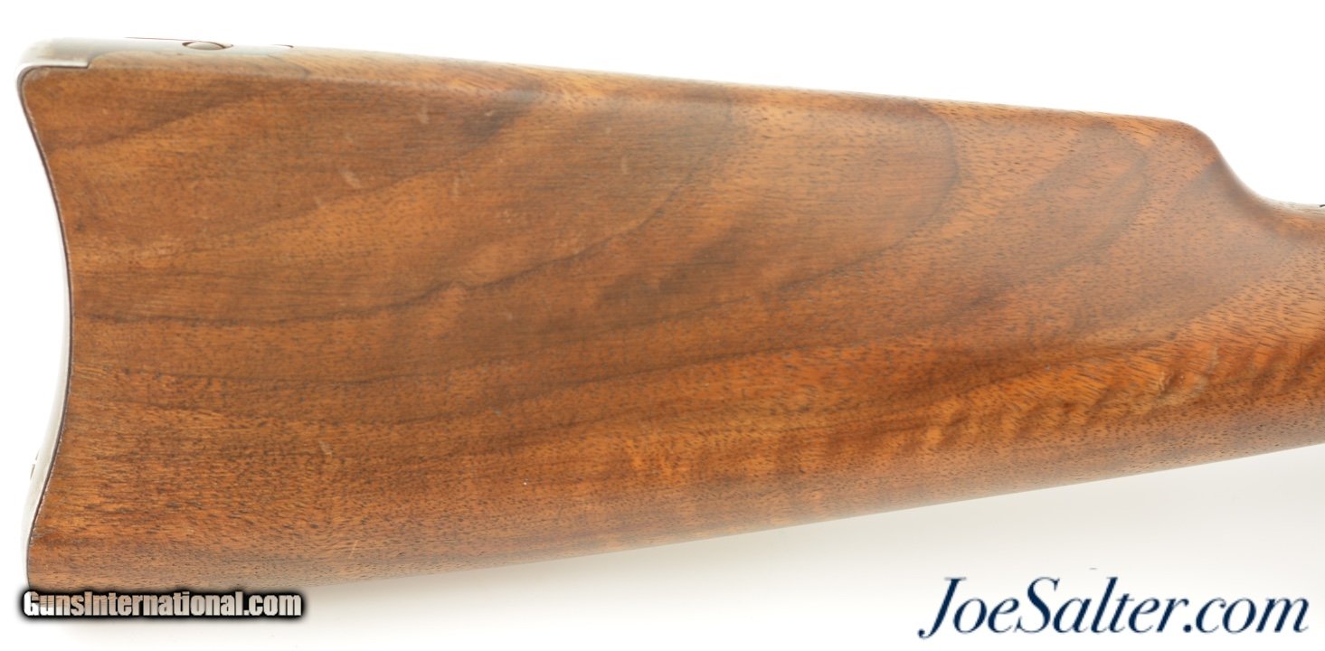 Description: Serial #1041218, .32 Winchester Special, 20 inch Nickel Steel barrel with a bright, excellent bore. This is a Winchester Model 94 Saddle Ring Carbine that had a factory plug installed and shipped as an Eastern Carbine. This could be a transitional gun being built in 1929 when Winchester started to phase out the SRC. It is in excellent overall condition the barrel and magazine tube retain about 90-92% of the original factory blue with about 80-85% on the receiver which is rarely seen on these 1920's era guns. The walnut stock and forearm are solid with some very mild use marks and contusions. The metal butt plate is mostly a plum-brown fading to silver on the high edges. It is sighted with a flip-up ladder rear sight and a Marbles Sheard front sight. A high condition example of a Transitional Carbine. FFL or C&R SOLD Curio/Relic: Yes |