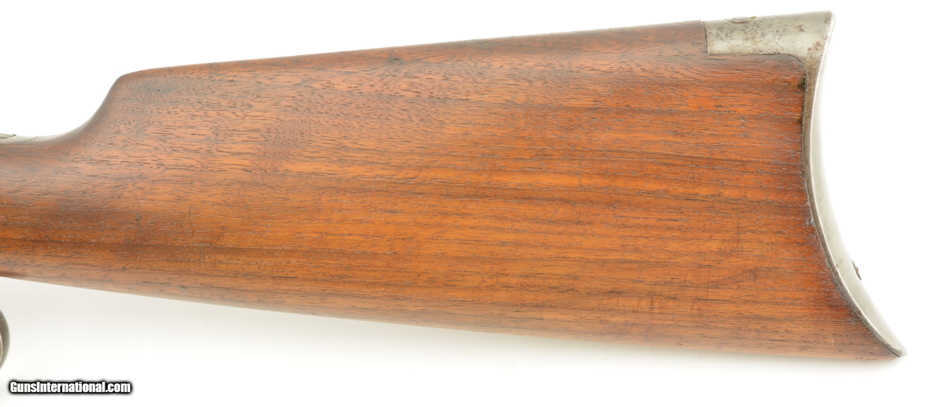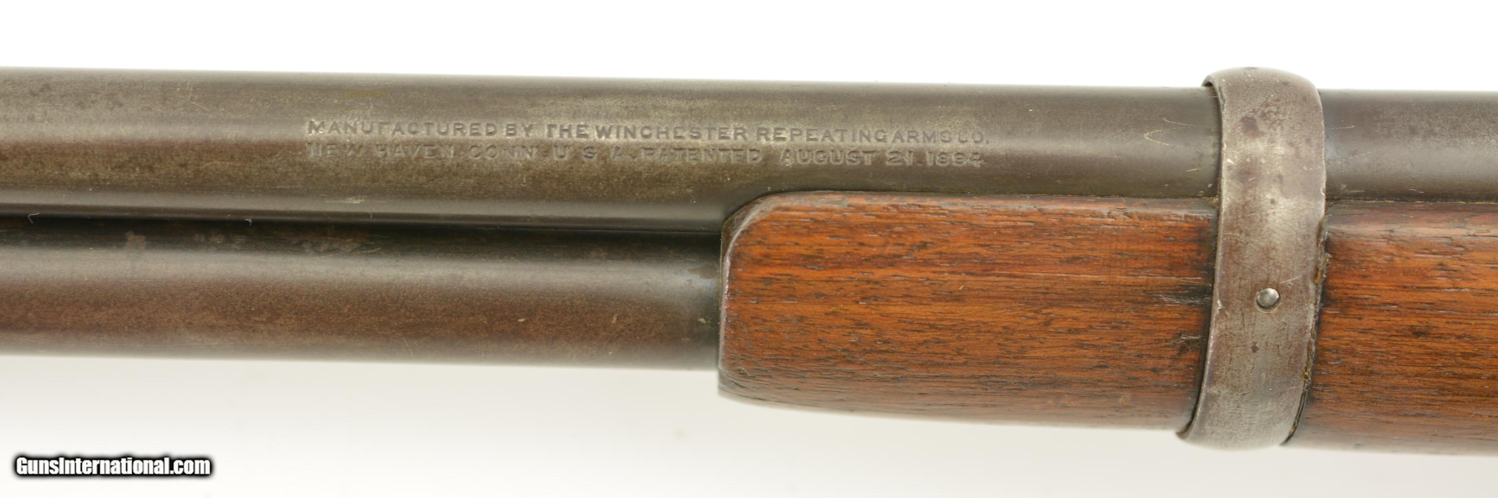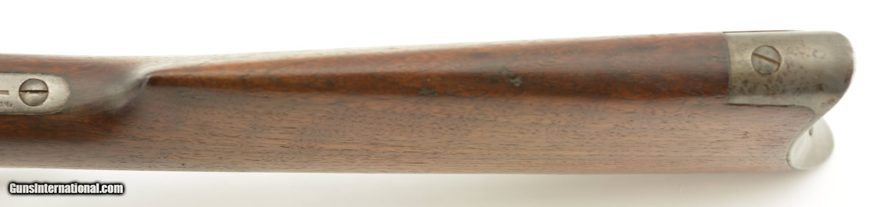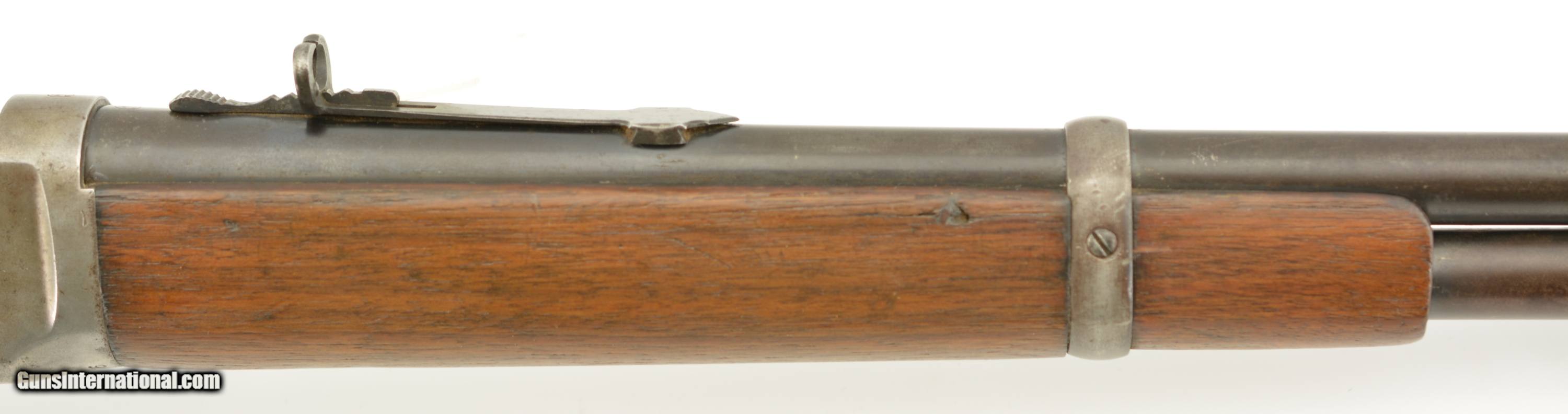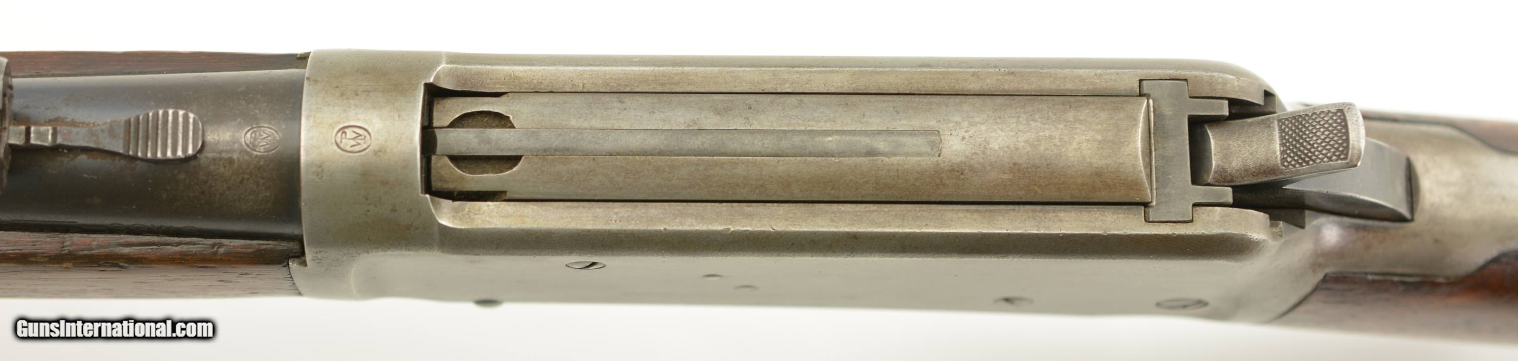 Description: Serial #920005, .32 Winchester Special, 20 inch round barrel with a bright, excellent bore. The is the model 94 Carbine manufactured by Winchester in 1923 without the saddle ring (a special order feature prior to 1928) and features a full buckhorn rear sight, nickel steel barrel and crescent metal butt plate. The barrel has mottled original blue finish fading to silver-gray and plum-brown on the magazine tube with scattered light freckling. The frame, lever, hammer and butt plate have all faded to silver-gray with scattered freckles and light use marks and scratches. The walnut stock is solid with some light use marks and scratches but remains in near excellent condition with the forearm showing two parallel cracks with the grain above the band that go all the way through and appear easily repairable. A nice, honest, old Winchester carbine in a more seldom-seen combination that has many years of service left. FFL or C&R SOLD Curio/Relic: Yes Manufacturer: Winchester Model: 94 Caliber Info: .32 WS Gauge Info: .32 WS |