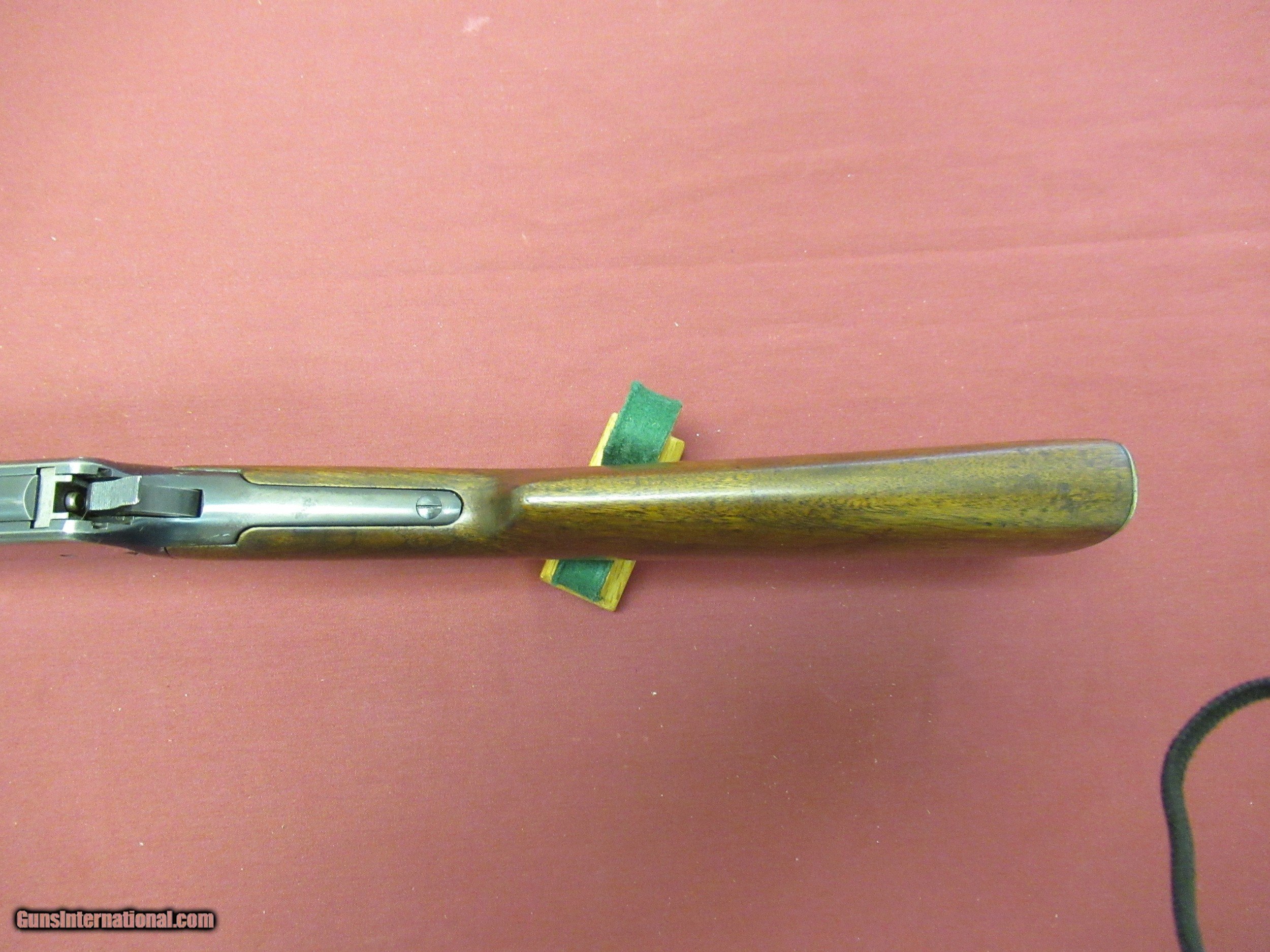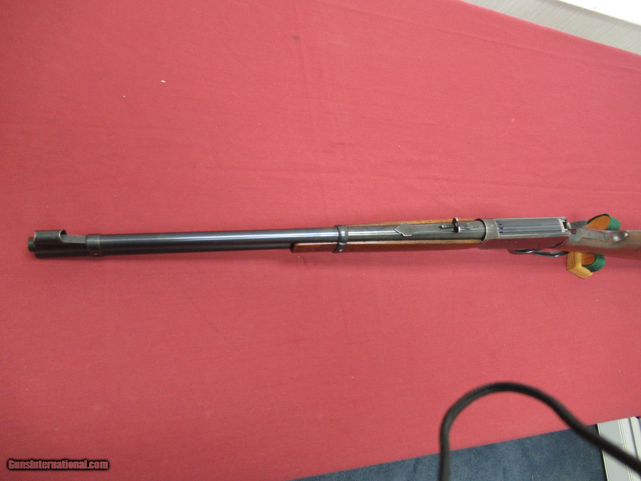 Description: Winchester Model 94 Standard Carbine in scarce 25/35 Carbine Caliber. Metal retains an honest 90% Original Finish with blue wear Pictured on bottom of receiver and in serial number area from being carried. Blue wear on Barrel and Lever is near 98-99% with a scratch pictured on the magazine tube. Wood retains 95+ Original Finish with several handling marks pictured and a small hairline on left side of the long wood. Flat Bands are quite collectible and fairly scarce. Excellent Bore. Gun has just been hunted. Still a fairly scarce carbine in a Very Rare Caliber, especially for this vintage. SOLD Curio/Relic: Yes |
