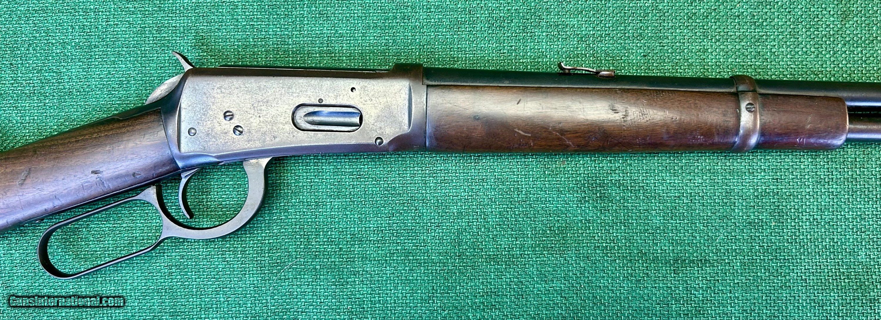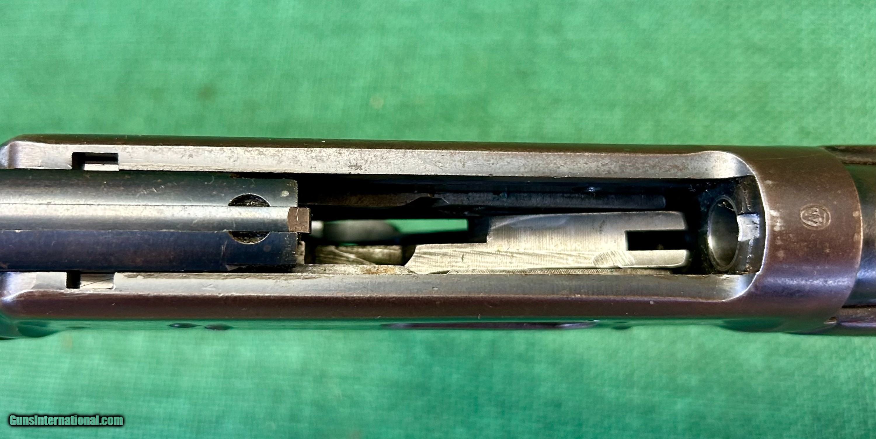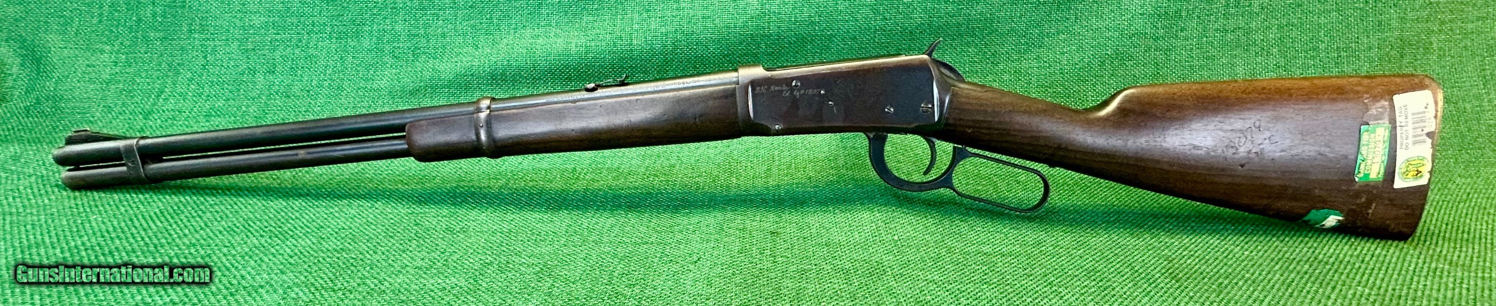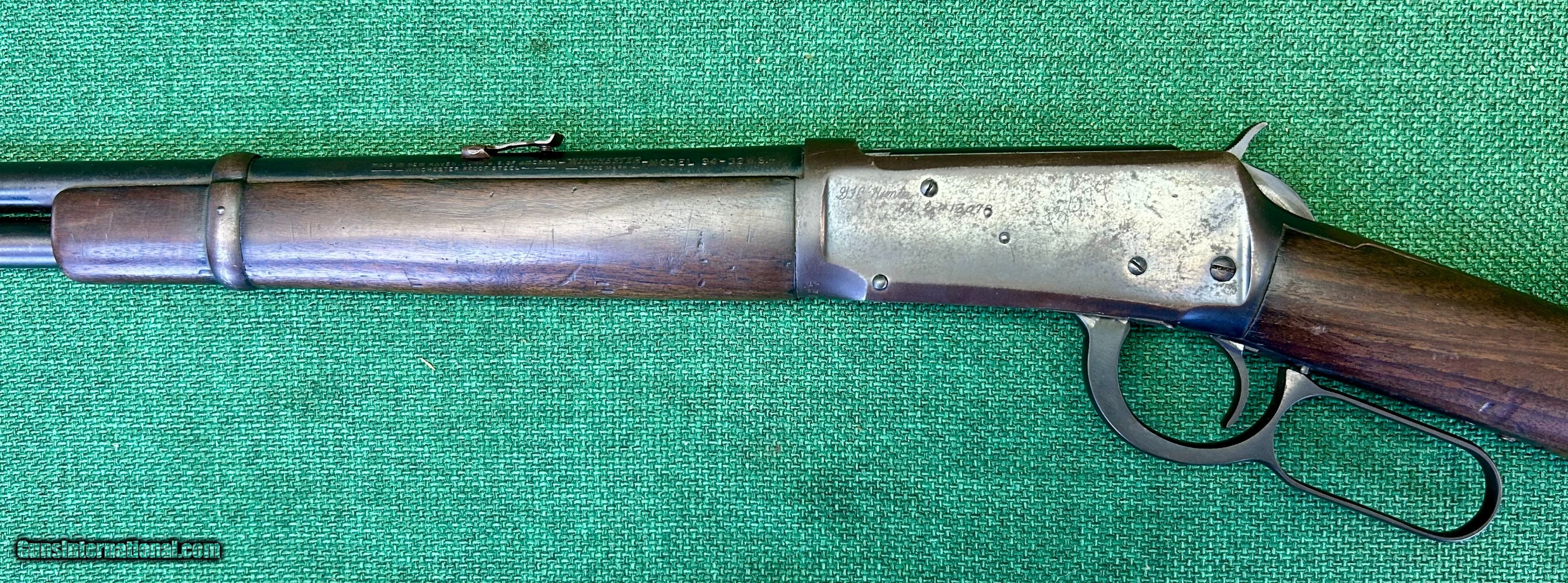 Description: This Winchester 94 with Flat Band is chambered in .32 WS. With a serial number of 145XXXX, our research indicates the date of maufacture to be between 1946 to 1948. The labels, engravings, and cartouches indicate that this was a service rifle for the Florida Game and Fish Commission. We have chosen to leave these items on the rifle as it gives to its history. The next owner of the rifle may do as they wish. Let me see this place Bore is nice. Signs of use on the bluing and furniture are indicative to its years of service. A light brown patina is present on the bluing, along with rack wear on tube. Stock has minor signs of use. Outside of the labels department stamps as seen in the pictures, the wood is in solid shape, carrying some nicks that very well may steam out. Please see pictures for details. We accept USPS Money Order, cashier’s check, or credit card for immediate shipping. Please note credit card sales are subject to an additional 3% fee. US shipping only. Shipping costs are actual postage, with adult signature required, to your FFL 01 or 03. We will pay the insurance for the amount sold. All items are for sale locally, so make contact as soon as you make your decision. Inquiries will be handled in chronological order. All postings will remain active until funds are received. We appreciate funds to arrive within 10 days of verbal agreement. After such time we will entertain other inquiries in the order they were received. SOLD Curio/Relic: Yes Rifle Caliber: .32 Winchester Special Manufacturer: Winchester Model: 94 |