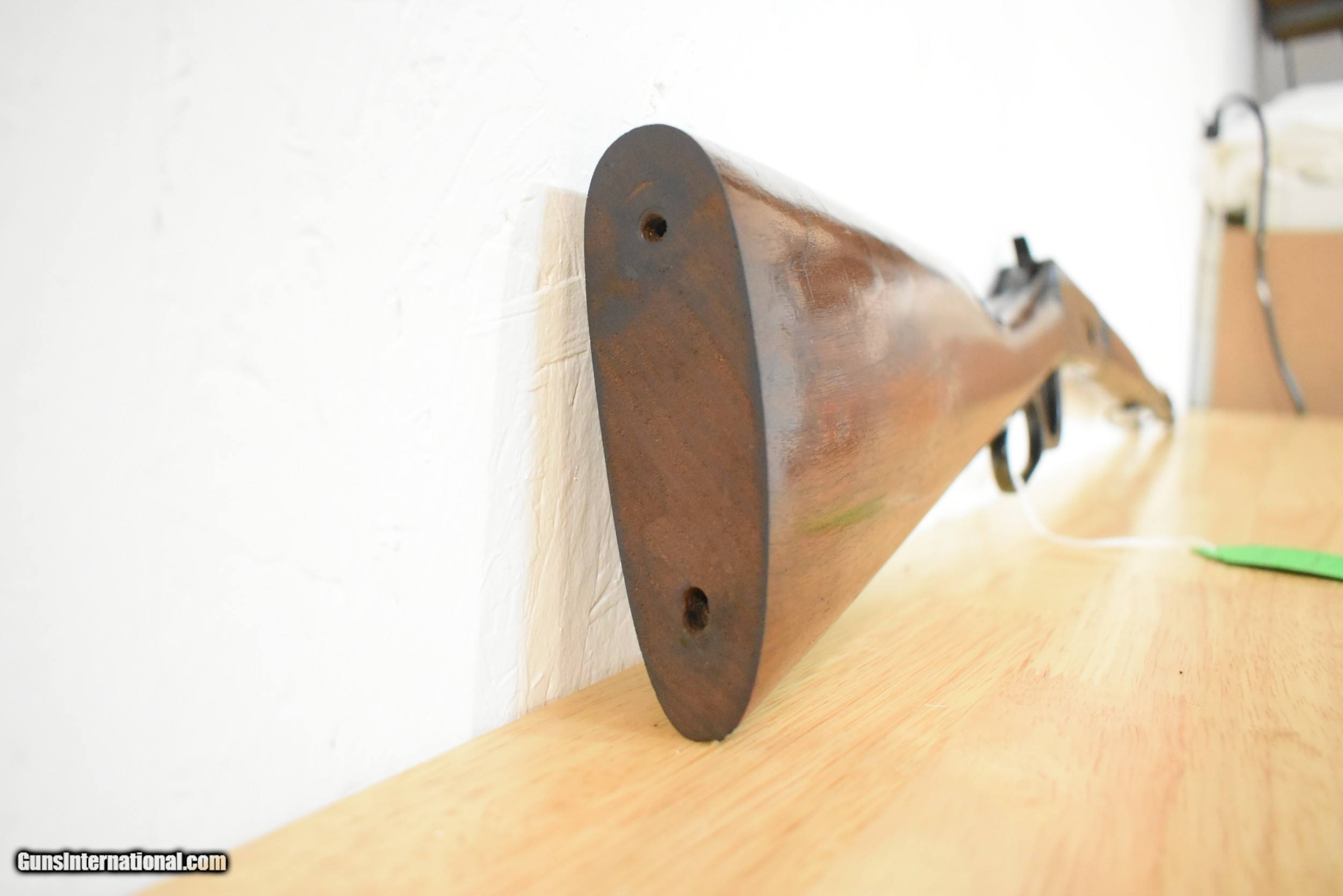 Description: This is a solid model 94 winchester it was manufactured in 1951. the butt plate is missing and the rear sight has been removed and a blank installed in the dovetail. it looks like it had a peep installed that has also been removed. all that being said. it has a excellent mirror bore with sharp rifling and a smooth action. It shows honest wear from usage over the years. THe stock is solid with no cracking, the stock finish shows no signs of flaking. With a little bit of TLC this can make a good representation of a pre 64 model 30-30 at a reasonable price. Try ro find a functional pre 64 for under 600.00 now a days with shipping included. When purchasing please use the "Buy Now" button option in this add to reserve the firearm for you. Maine residents add 5.5% Sales Tax Free Shipping no CC Fees SOLD Curio/Relic: Yes Manufacturer: Winchester Model: 94 Pre 64 Serial Number: 1757259 Barrel Length: 20 Condition: Good Metal Condition: Good Wood Condition: Good Bore Condition: Excellent Action: Lever Manufacture Date: 1951 Item Location: Buxton Maine |