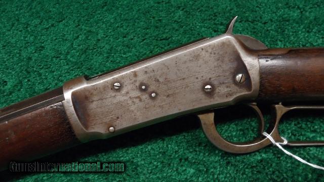 Cal 30-30. Full oct bbl and full length mag tube. VG shootable bore. This gun features a Marbles #5 front sight and a platinum lined 3-leaf express rear sight. Orig wood has some minor hunting marks but is generally in VG cond with a rifle style butt plate. Overall metal is VG with 40% bbl and mag blue. Receiver retains about 10% orig blue in protected areas. Nice clean orig gun with desirable early antique serial number.