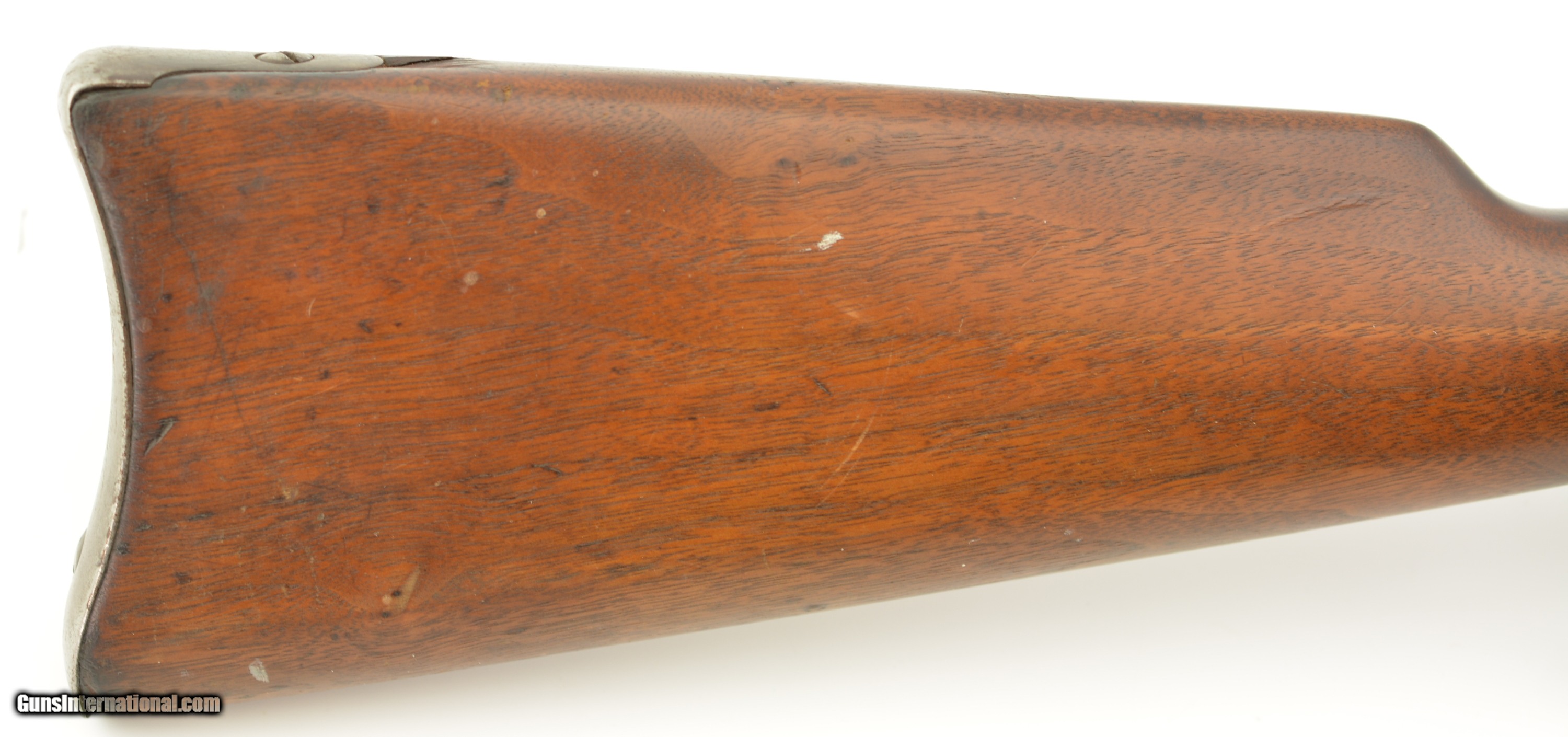 Description: Serial #957949, .32 Win. Spl., 20" barrel with a bright very good bore with very minor erosion througout. This is a 1925-made carbine that has traces of original blue remaining on protected areas, and the balance having turned to a mottled gray and plum-brown patina on the balance. The saddle ring is no longer present, and a non-original filler screw is present on the top tang. The walnut stock and forend are in very good shape, with small handling marks and minor surface blemishes scattered about the reapplied oil finish. A chip at the buttplate tang was sanded and smoothed before the refinish. The carbine has a sporting bead front sight, and carbine rear that is missing the long range slide. This is a great looking SRC, and is in good-very good condition overall. FFL or C&R SOLD Curio/Relic: Yes Manufacturer: Winchester Model: 94 Serial Number: 957949 Caliber Info: .32 Gauge Info: .32 |