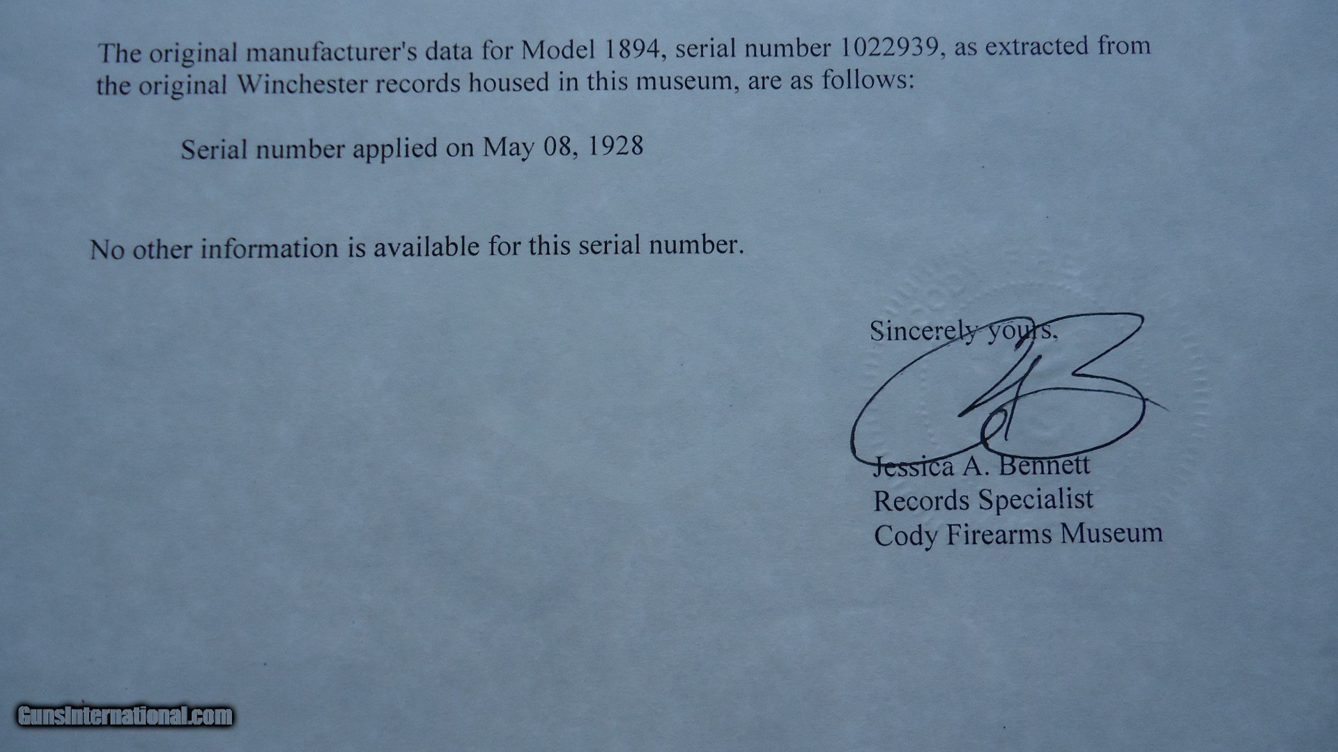 Description: 20 inch barrel and full length magazine show about 95% finish with only light wear and handling marks. Bore is excellent, bright and shiny with strong rifling. Upgraded Mables 94C Ivory bead front sight and a Sporting Leaf folding rear. Receiver shows about 90% finish with some scattered light freckles. Walnut stocks are clean and solid with only light wear and handling marks. Over 96 years old…. this original high condition 94 SRC rates about 90% overall and comes with Factory Letter showing it was made in 1928. Leroy Merz Antique Firearms specializes in antique and vintage Winchesters and other fine American firearms. Since 1965 Mr. Merz has taken part in the world of firearms and has been a contributor to many well known reference books. We have hundreds of additional guns in every price range at our home online. Search for Merz Antiques in google. SOLD Curio/Relic: Yes Rifle Caliber: .30-30 Winchester |
