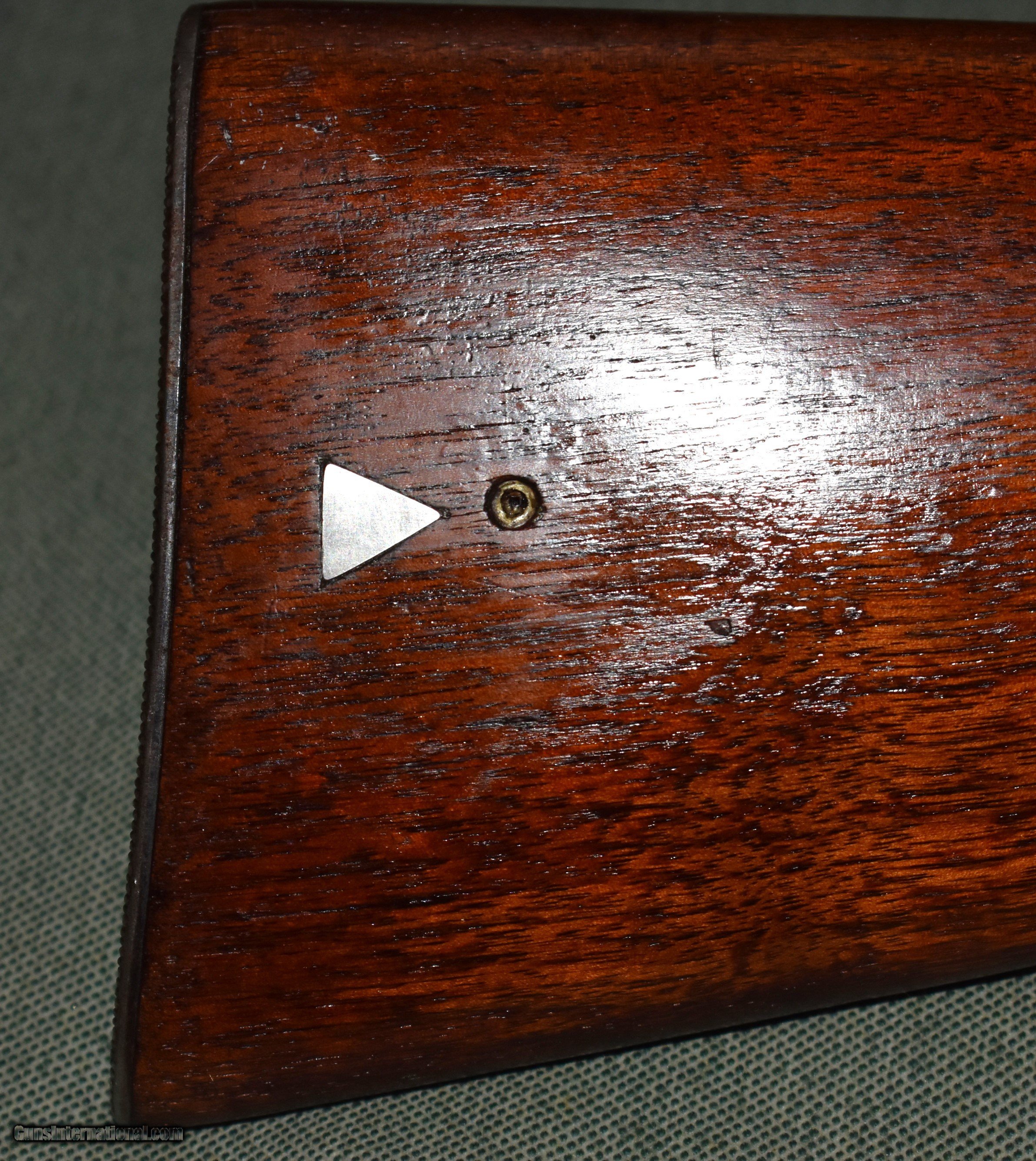 Description: Winchester model 94 carbine in 32 Win Special. Built in 1949, this rifle has the flat muzzle band that Winchester used in the late 1940s. The rifle is in excellent condition retaining 95% of the original blue and wood finish. The bore is mint with crisp sharp rifling. The stock is sound with no cracks or damage. There is a small trianguler inlay on the right side of the stock ( see photo). Not sure what it is for but it is properly inletted. The rifle retains the original steel buttplate.This would make a great classic deer rifle. C&R eligible. Price includes shipping to your ffl. SOLD Rifle Caliber: .32 Winchester Special Manufacturer: Winchester Model: Pre 64 model 94 Serial Number: 1511176 Barrel Length: 20 Condition: excellent Metal Condition: excellent Wood Condition: Very Good Bore Condition: mint Barrel Type: Winchester Proof Steel Action: Lever Butt Pad: factory steel butt Manufacture Date: 1949 |