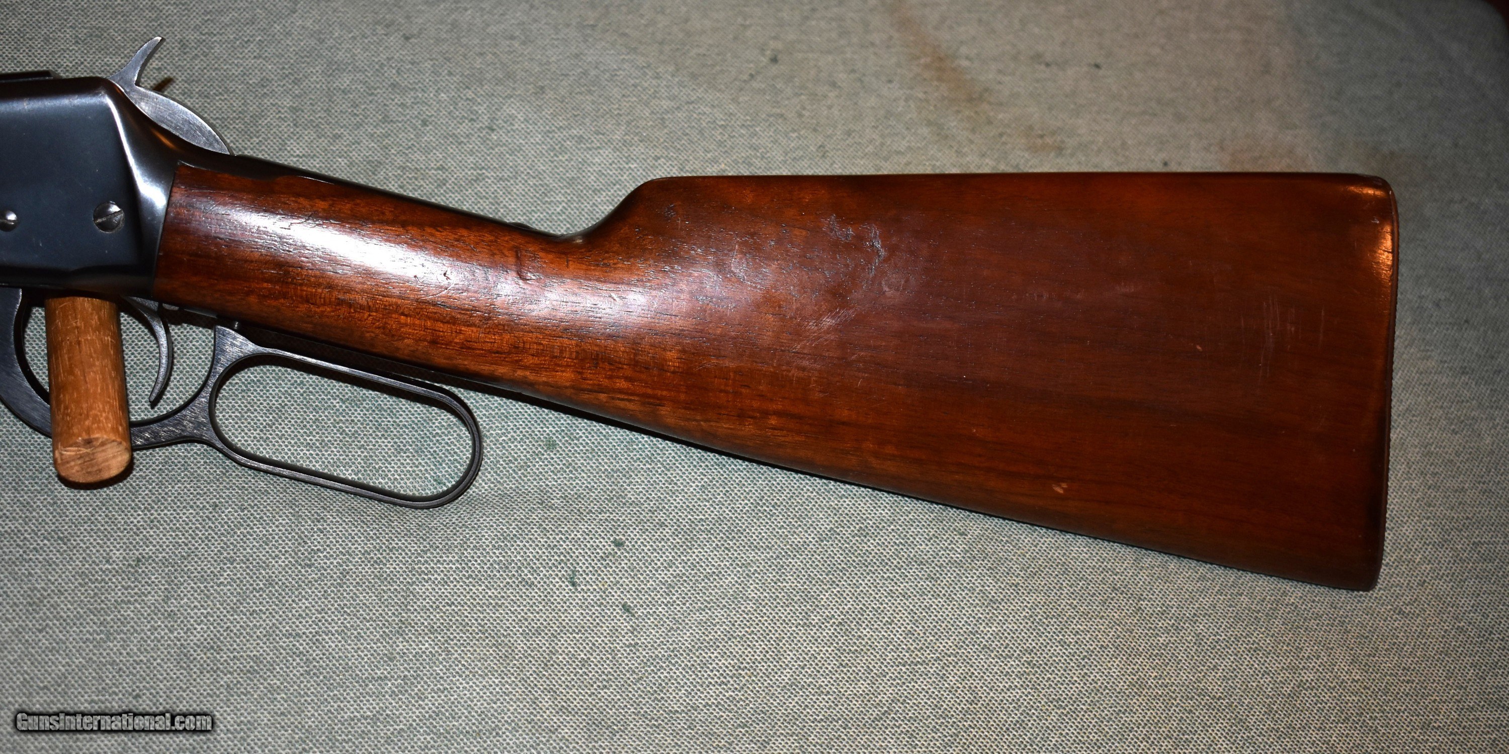 Description: Winchester pre 64 model 94 carbine in 30 WCF (30-30). Built in 1948,this rifle has the flat front magazine band. The rifle is in excellent all original condition.It retains 98% of the original blue and wood finish. The bore is mint with sharp rifling. The stock and forend are sound with no cracks or damage. The stock retains the original steel buttplate. This is an excellent example of the 94 carbine. They are getting hard to find in this condition. Price includes shipping to your FFL. C&R eligible. SOLD Curio/Relic: Yes Rifle Caliber: .30-30 Winchester Manufacturer: Winchester Model: 94 Carbine Serial Number: 1435901 Barrel Length: 20 Condition: excellent Metal Condition: excellent Wood Condition: excellent Bore Condition: mint Barrel Type: Winchester Proof Steel Action: Lever Butt Pad: factory steel butt Manufacture Date: 1948 |