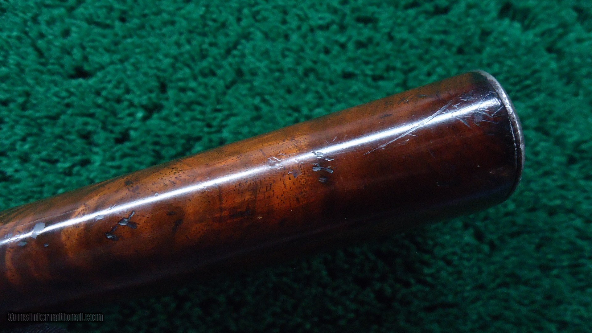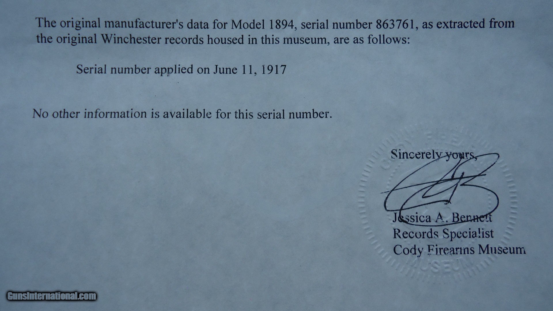 Description: 22 inch extra rapid taper round barrel. Half length mag tube. Pistol grip wood is in fine condition with shotgun style buttplate. Most original varnish and nice checkering. Barrel retains a good amount of blue with slight toning to it. The receiver could be refinished and if it is it was a very fine job. Looks good. Comes with a Factory Letter of Authenticity. Simply lists date of serial number application. This 94 would make a great shooter. Fairly priced Deluxe. Leroy Merz Antique Firearms specializes in antique and vintage Winchesters and other fine American firearms. Since 1965 Mr. Merz has taken part in the world of firearms and has been a contributor to many well known reference books. We have hundreds of additional guns in every price range at our home online. Search for Merz Antiques in google. SOLD Curio/Relic: Yes Rifle Caliber: .30-30 Winchester |