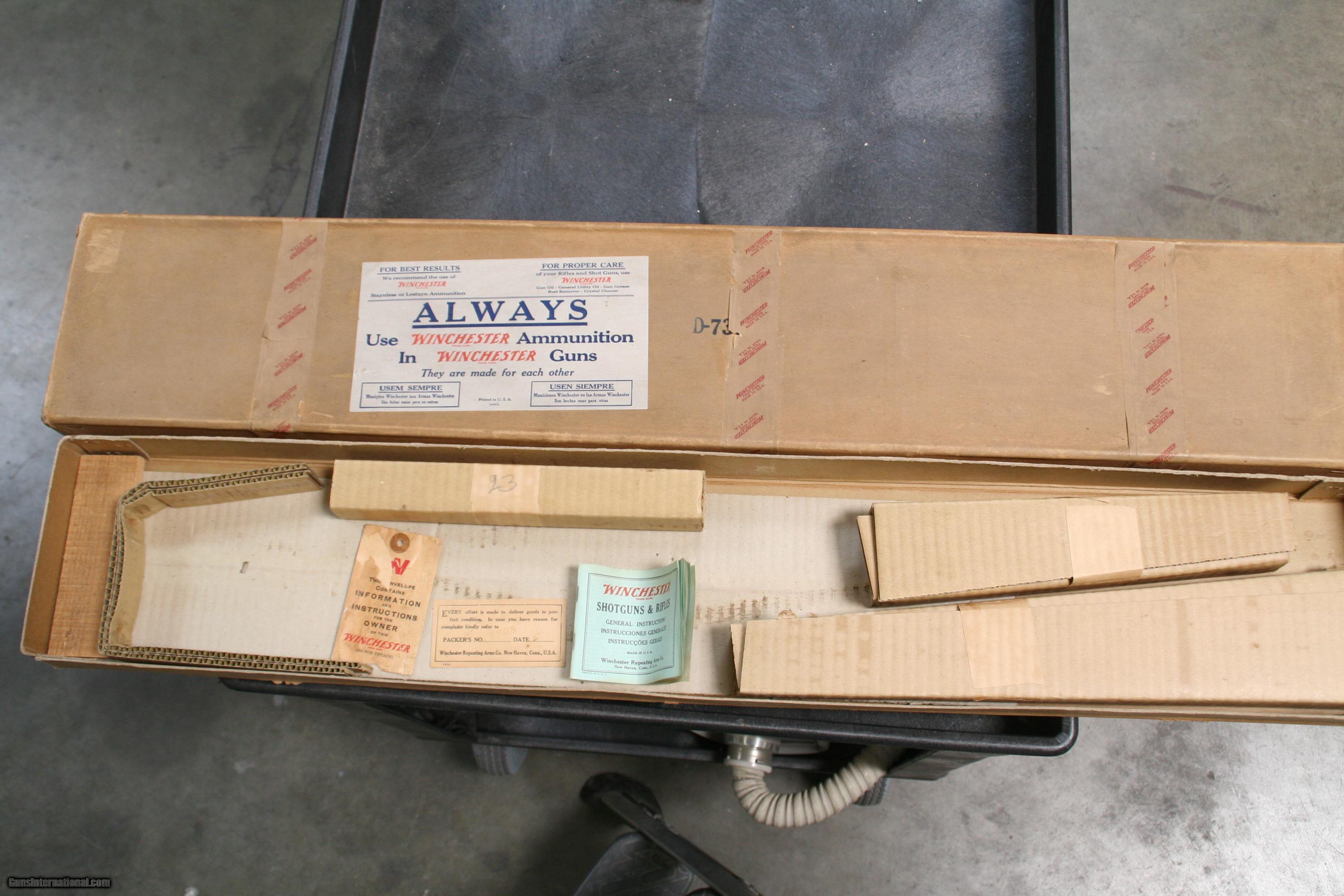 Description: A Winchester Model 94 Cal. 30 W.C.F. (1929) as new in the box as they come. This rifle shows no handling marks or scratches. The box includes the paperwork shipped with the rifle. SOLD Curio/Relic: Yes Manufacturer: Winchester Model: 94 Serial Number: 1079516 Caliber Info: .30 W.C.F. Condition: Excellent Barrels: 20 |