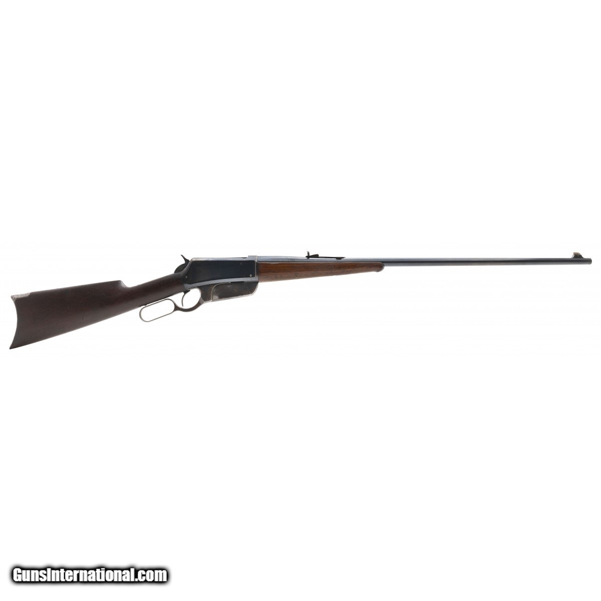 Description: " Serial No. 3757 .30 U.S. manufactured in 1897 with a 28"" round barrel Winchester Model 1895 Flat side rifle. Retains approx. 85% original bluing, wood is good with some dings, scratches and mars noted. Bore is good with strong rifling visible, action functions correctly. Nice early flatsideĀ SOLD Antique: Yes |