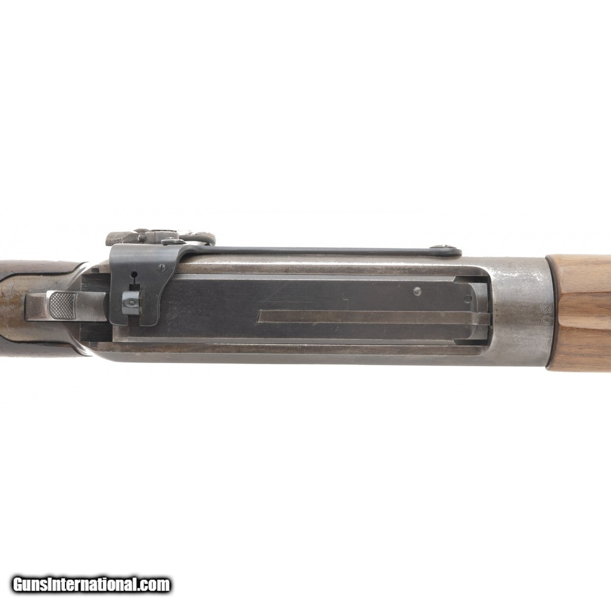 Description: " This 30 Government (30-40) Winchester Model 1895 saddle ring carbine is circa 1902. The approx. 22"" round barrel has a good bore with strong rifling and frosting in the grooves. The overall gun has approx. 65% blue with the remainder turning brown. The top of the receiver is marked 30 (for the caliber) and the tang has the standard Winchester markings. This saddle ring carbine is equipped with a Lyman receiver sight. The stocks are very good with no cracks or chips and handling wear including a couple of dents on the right buttstock. The saddle ring is present. The action functions correctly. This nice looking Winchester Model 1895 saddle ring carbine would fit your collection. AUSTIN LOCATION SOLD Curio/Relic: Yes |