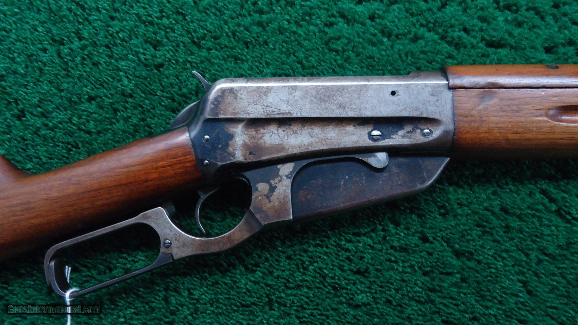 Description: 22 inch round barrel with pinned blade front sight and elevator rear sight. Barrel retains most original thinning blue. Receiver retains about 35% original bright blue with the balance having flaked turning a gray-brown patina. Decent bore that would benefit from a good cleaning. Very nice wood overall. Belly of butt stock has a neatly-done plug insert covering a sling mount. Pull through cleaning kit in the butt. Leather wrapped saddle ring completes this pleasing carbine. Very nice gun made in the early 1920's. Leroy Merz Antique Firearms specializes in antique and vintage Winchesters and other fine American firearms. Since 1965 Mr. Merz has taken part in the world of firearms and has been a contributor to many well known reference books. We have hundreds of additional guns in every price range at our home online. Search for Merz Antiques in google. SOLD Curio/Relic: Yes Rifle Caliber: .30-40 Krag |