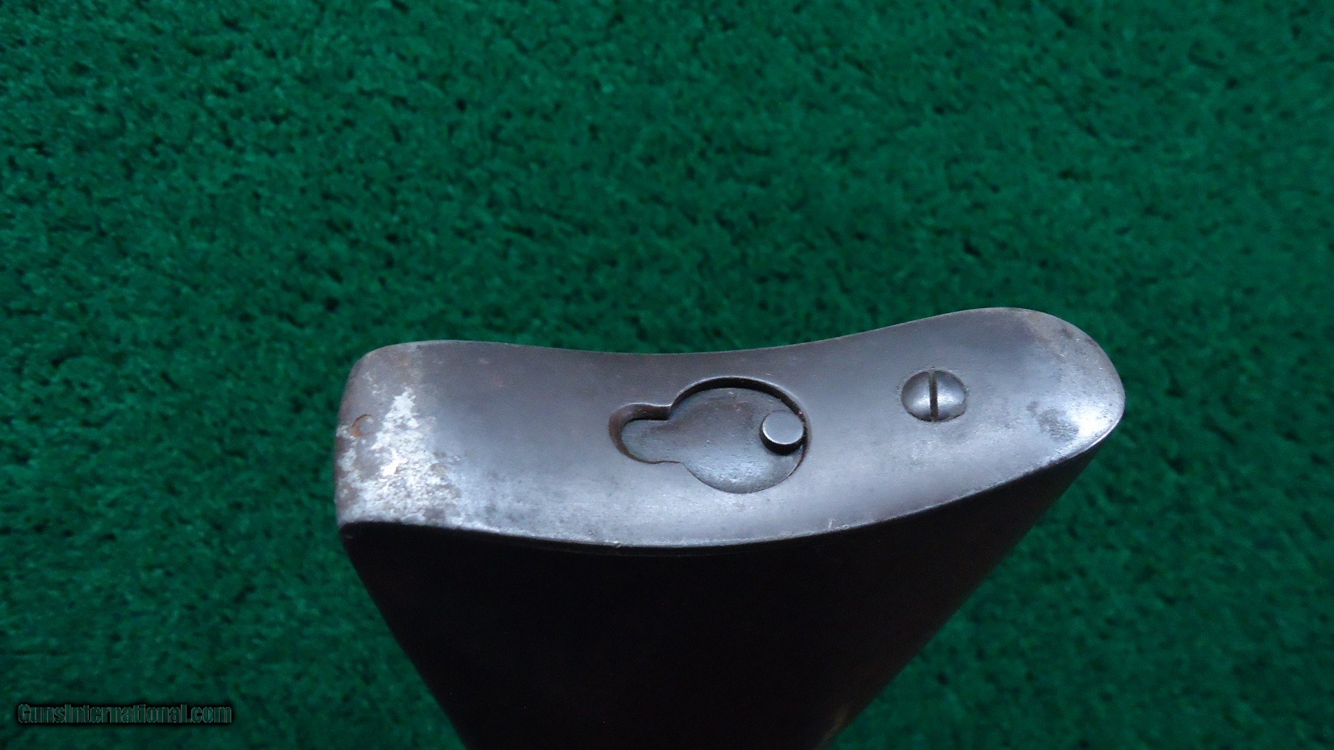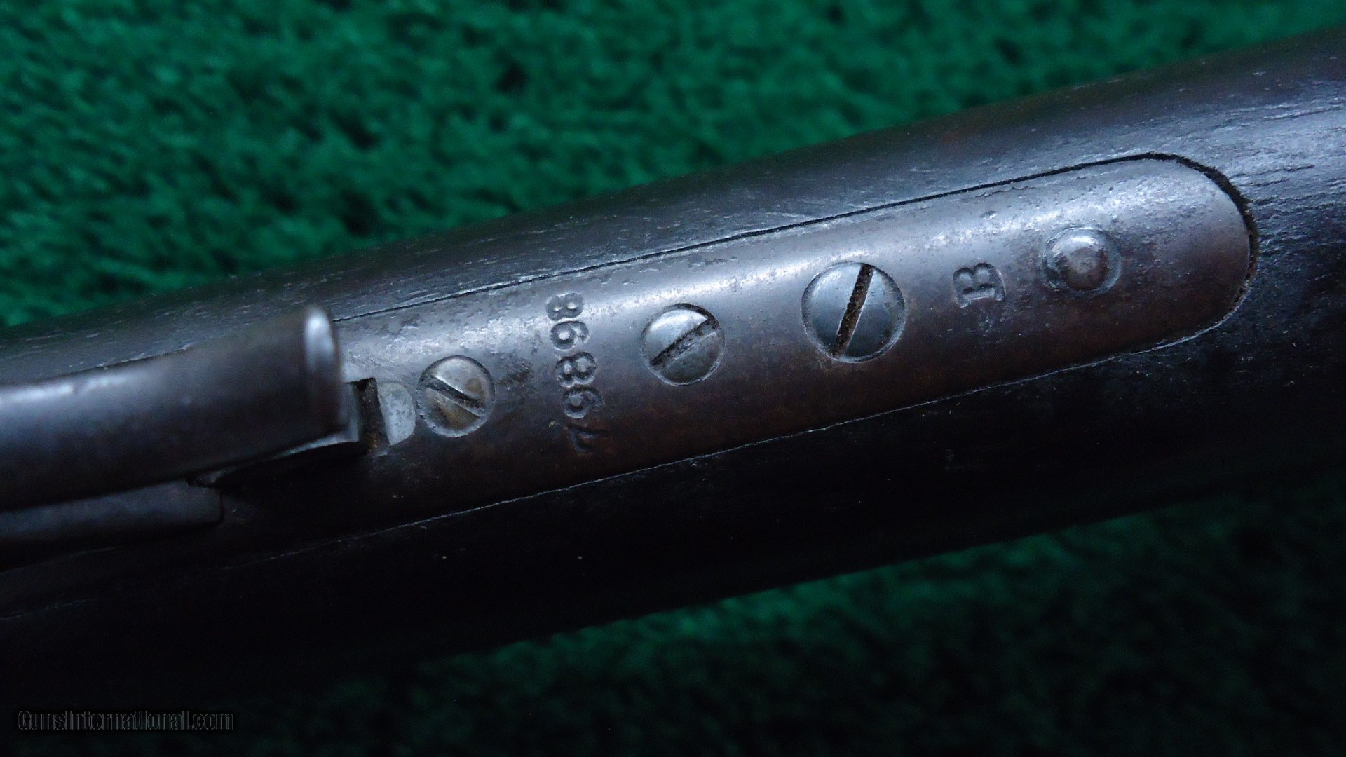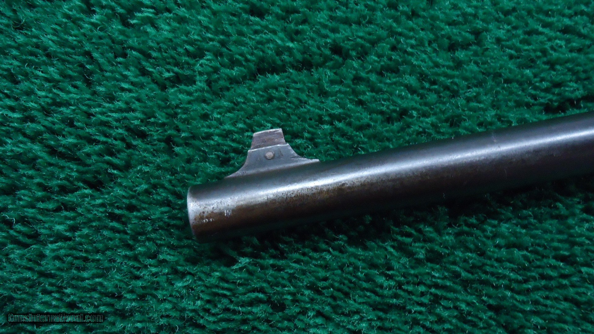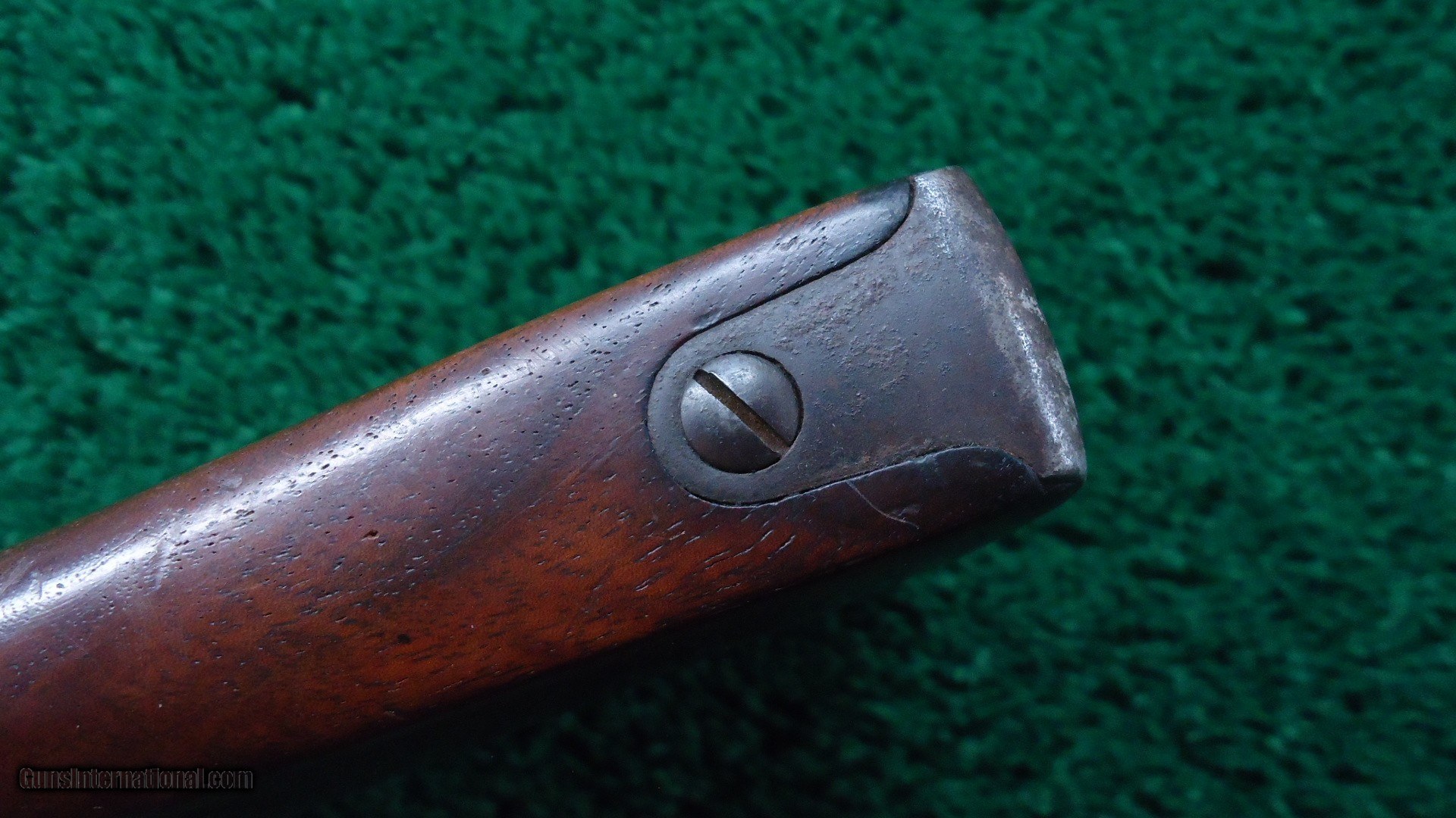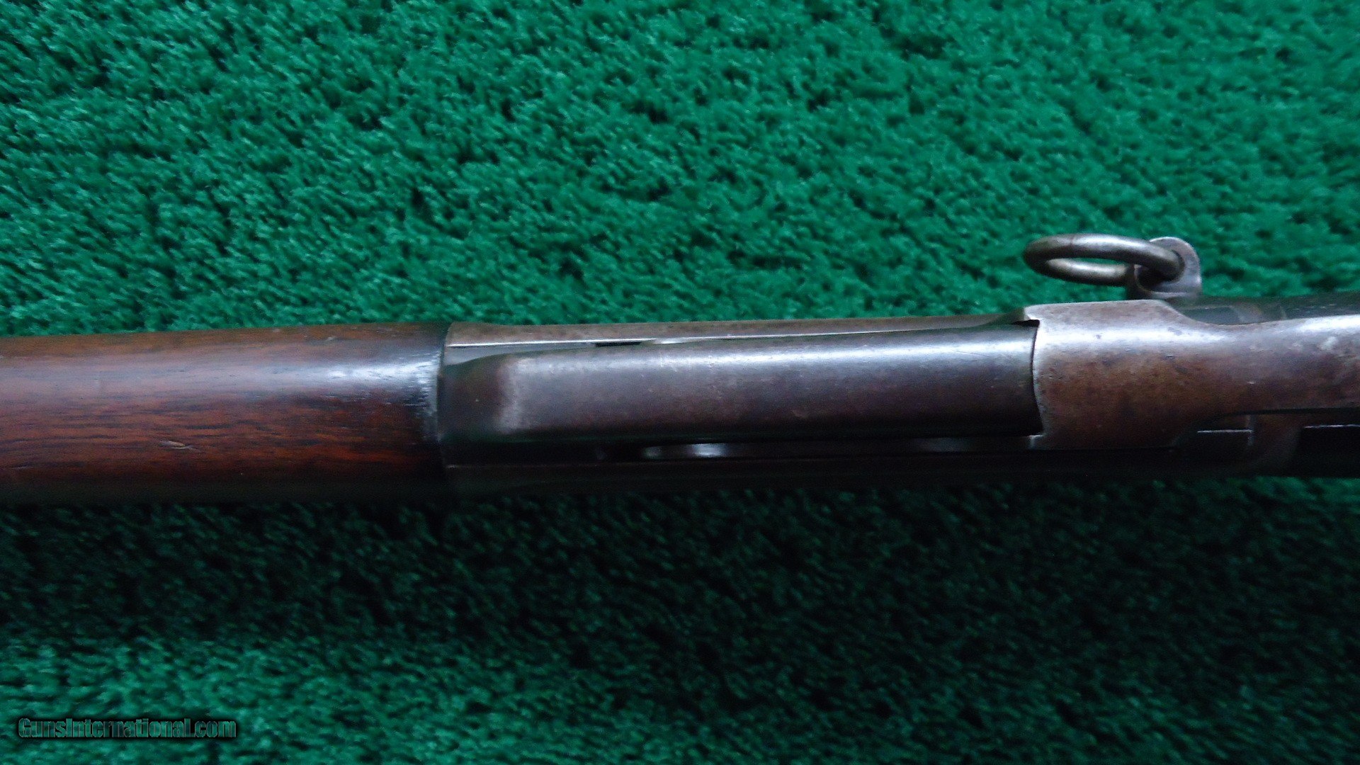 Description: 22 inch round barrel chambered in 30-03 caliber with a dark bore that has visible rifling but needs a thorough cleaning. Sights include a pinned blade front that has a replaced blade and a folding ladder carbine rear. Barrel retains about 70% dull fading blue showing thinning spots and muzzle wear. Receiver is a dull plum/ brown with a little more blue on the magazine. Saddle ring on the left side. Band fastened finger groove walnut forearm and hand guard. Straight grip walnut stock is in very good condition with a steel trapdoor carbine buttplate. Nice functioning action. Manufactured in 1912 and hard to find in this scarce caliber. Leroy Merz Antique Firearms specializes in antique and vintage Winchesters and other fine American firearms. Since 1965 Mr. Merz has taken part in the world of firearms and has been a contributor to many well known reference books. We have hundreds of additional guns in every price range at our home online. Search for Merz Antiques in google. SOLD Curio/Relic: Yes Rifle Caliber: .30-03 |