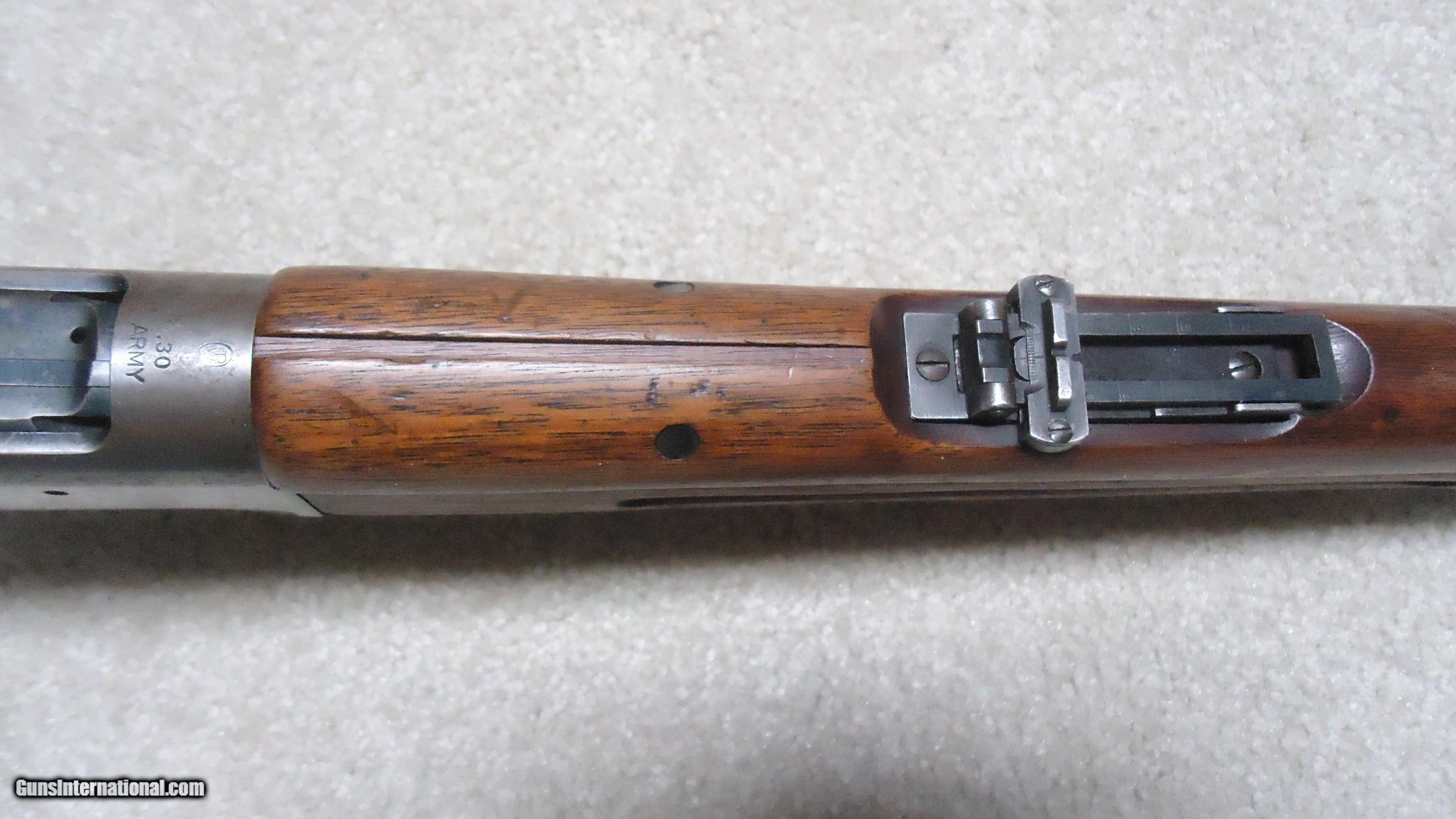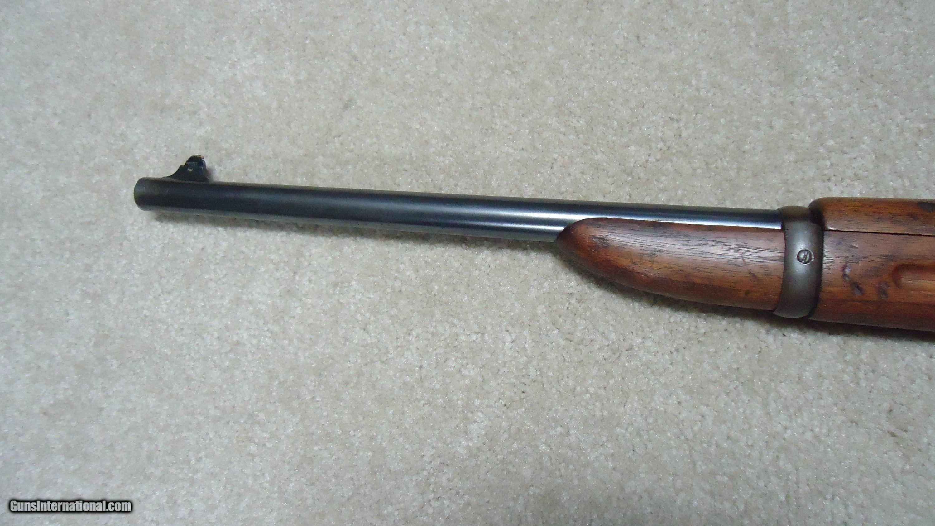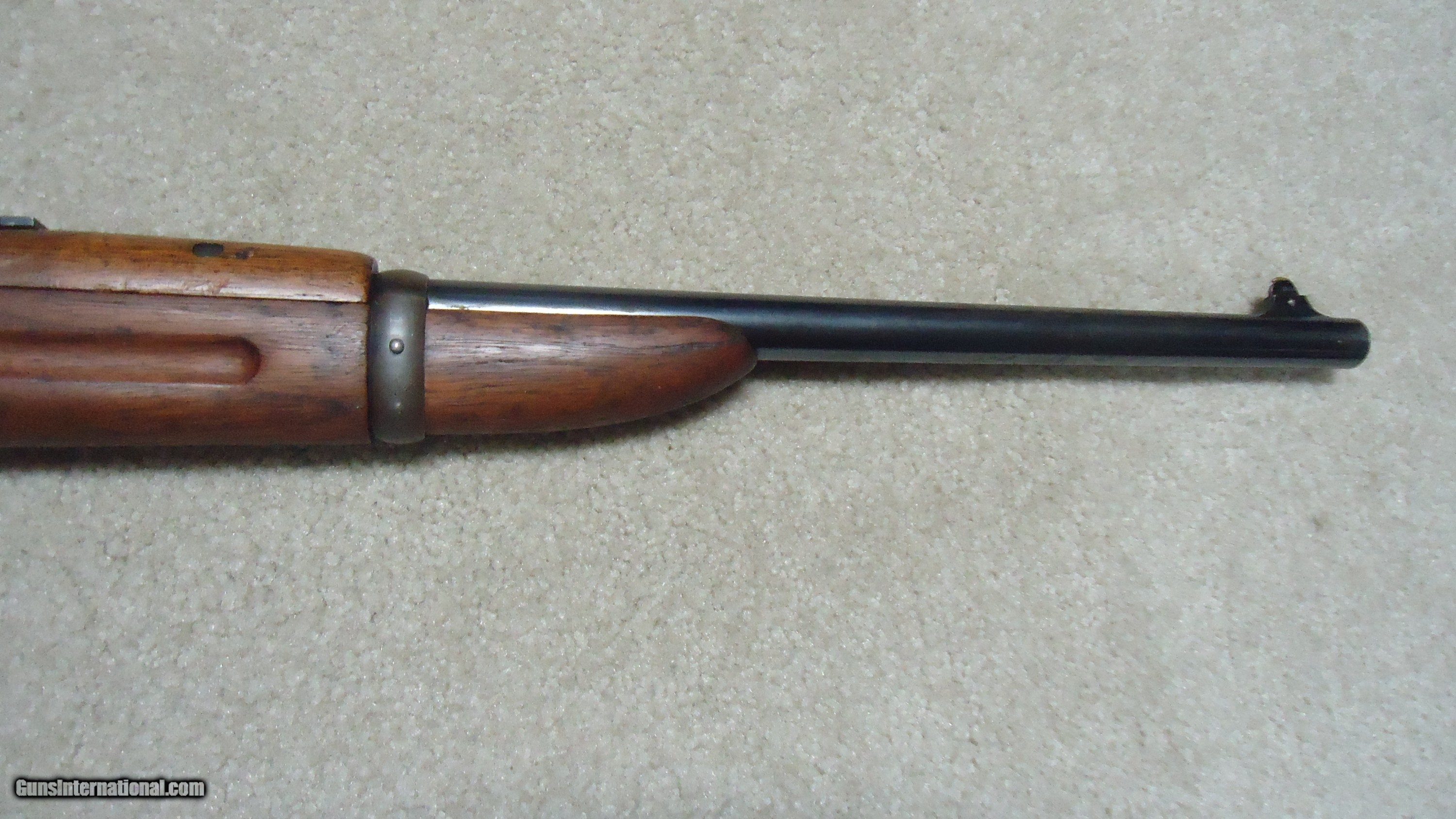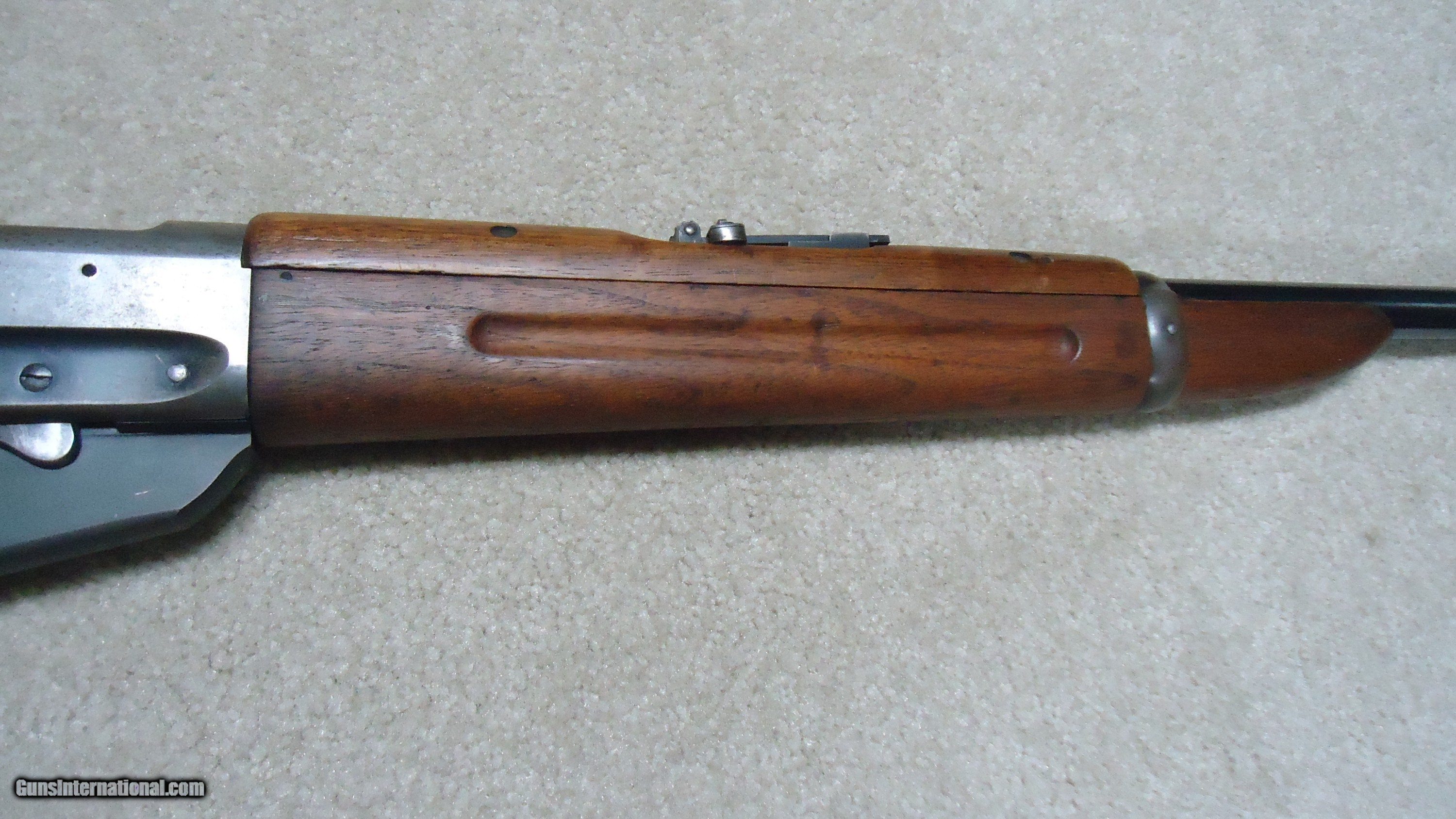 Description: 1895 SADDLE RING CARBINE, .30 ARMY (.30-40 KRAG) CALIBER, #95XXX, MADE 1914. An attractive example with fancier than standard walnut in the butt stock showing some nice fiddle back grain (possibly chosen by a Winchester employee for himself or a friend). The receiver shows good aged blue on the lower portion of the right side and around the saddle ring, as well as dull blue on the magazine. Fine deep blue on most of the bolt, excellent markings on the receiver side and upper tang with no extra holes. The barrel retains most of the orginal deep blue and is fitted with the correct ladder rear sight with small Marble 14 Sheard marked carbine blade front sight. Generally excellent wood with tight wood to metal fit shows light handling only. Correct butt plate with sliding trap door for cleaning rods. Matching handguard has a narrow, well executed, sharp sided square groove behind the rear sight to make sighting easier. So well executed it might be factory done, but no way to tell. Tight action with solid safety half-cock on the hammer. Bore is a little dark with strong rifling all the way through and any corrosion exctremely light and surface. An attractive '95 carbine with unusual wood. These are getting hard to find especially with handguards intact. SOLD Rifle Caliber: .30-40 Krag Manufacturer: WINCHESTER Model: 1895 SADDLE RING CARB. Barrel Length: 22 Condition: FINE Bore Condition: FINE+ |