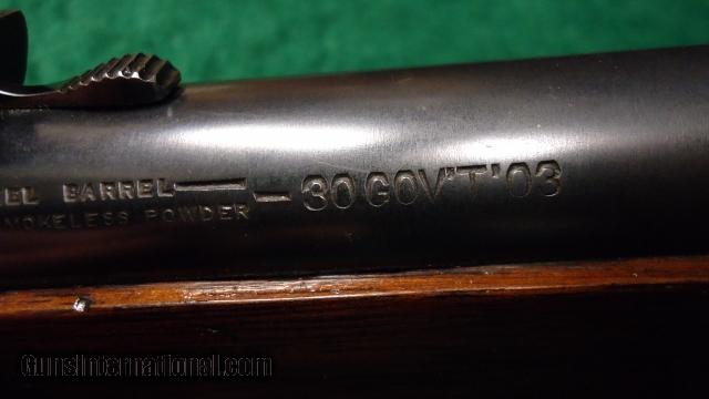 Description: 24" bbl. In the very scarce 30 Gov't 03. Nice high condition gun with nearly all bbl blue remaining. Receiver also has ample blue with wear to the high points. Wood is nice fitting and VG condition. Crescent buttplate. Beautiful shiny bore in excellent condition! The 30-03 was not in use very long and this gun has not been used very much. Nice rifle! Leroy Merz Antique Firearms specializes in antique and vintage Winchesters and other fine American firearms. Since 1965 Mr. Merz has taken part in the world of firearms and has been a contributor to many well known reference books. Just recently we mailed the 123rd edition of our privately-published catalog. We have hundreds of additional guns in every price range at our home online. Search for Merz Antiques in google. SOLD Antique: Yes |